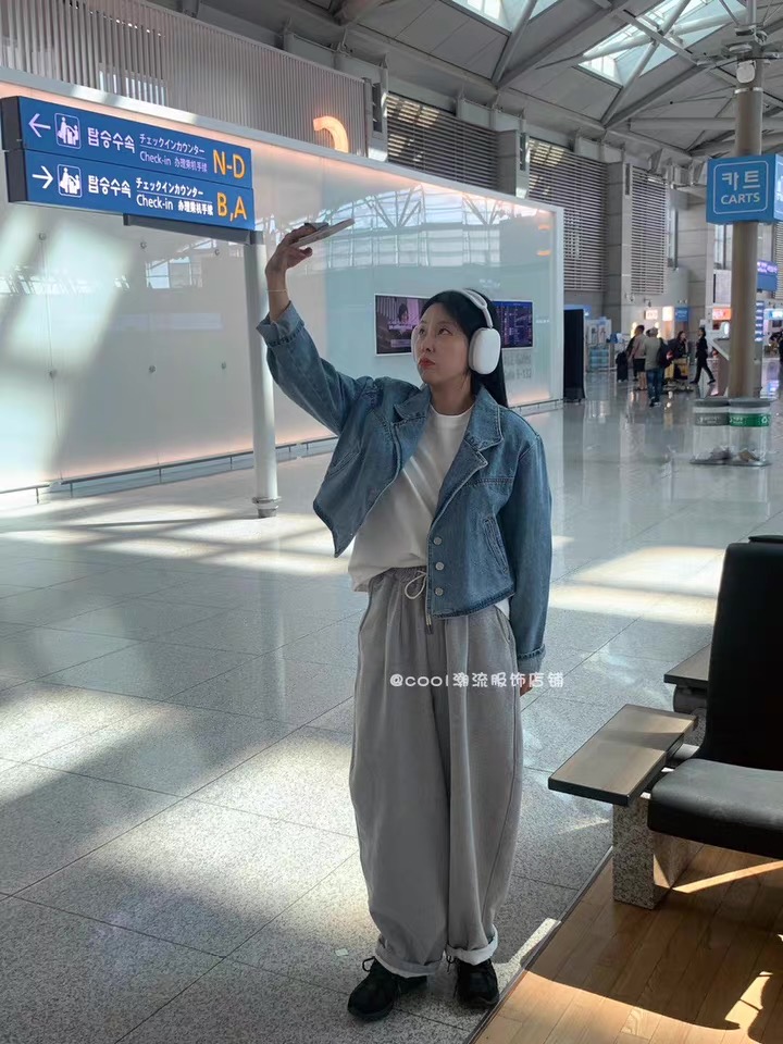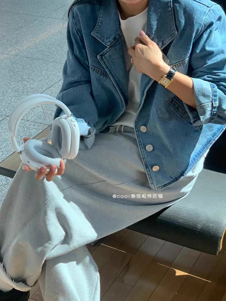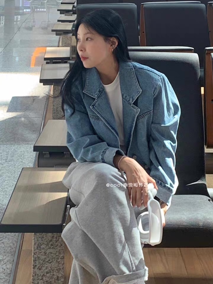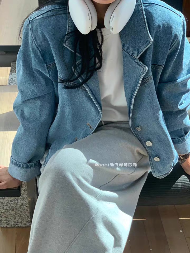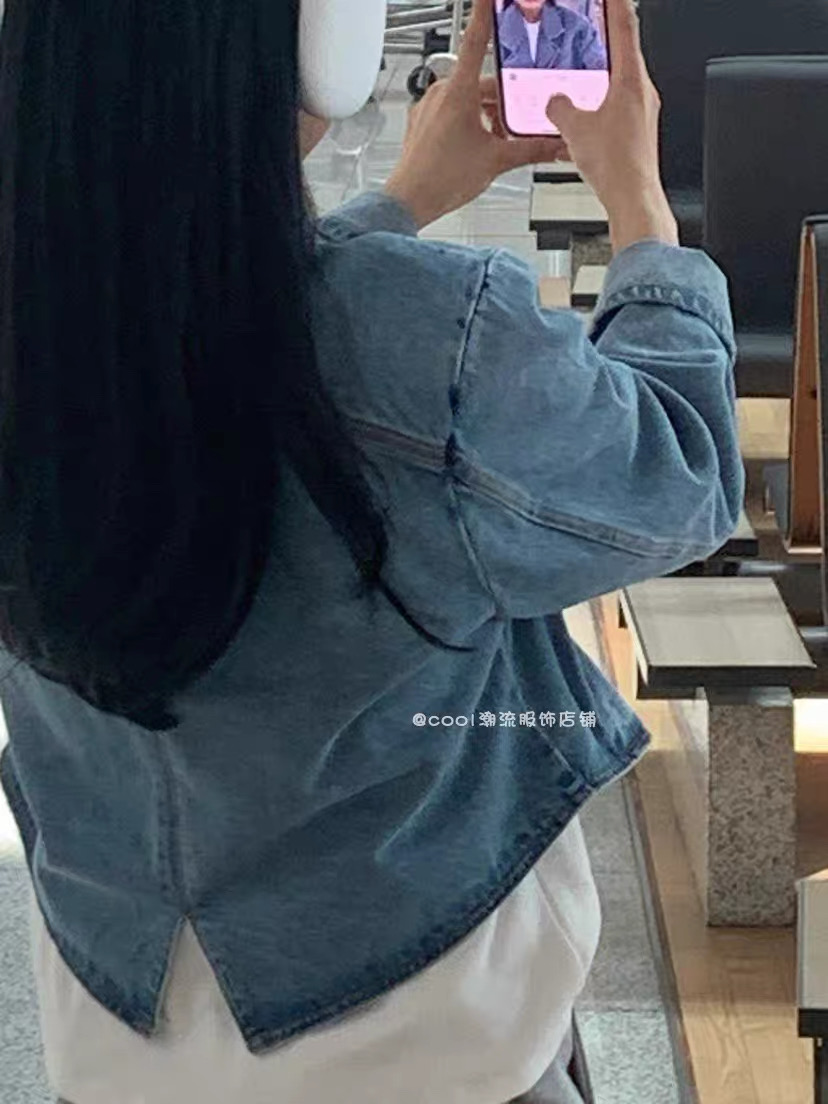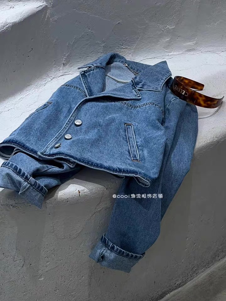 韩国东大门2025秋款 MILUI 翻领系扣短款长袖牛仔外套女