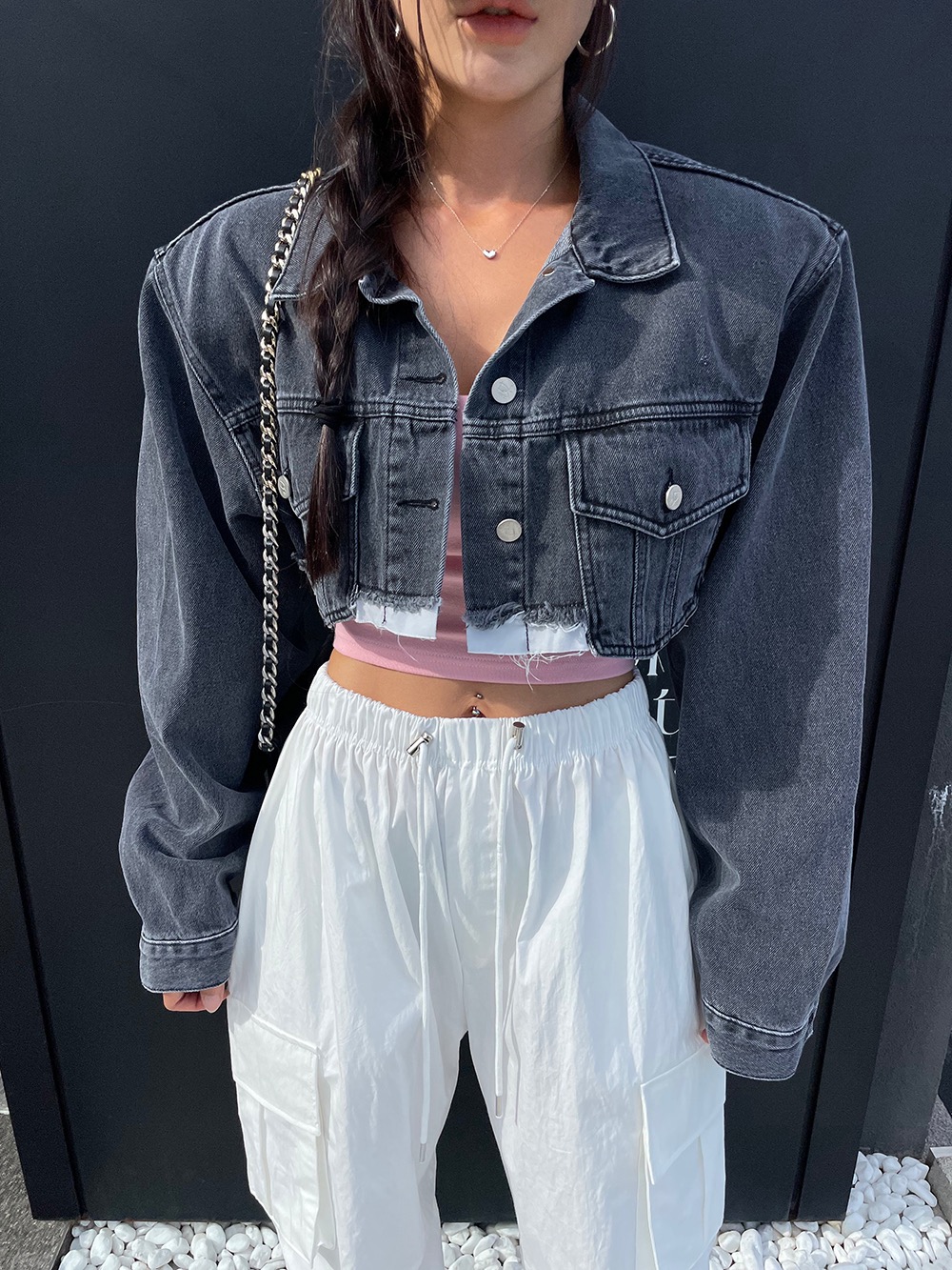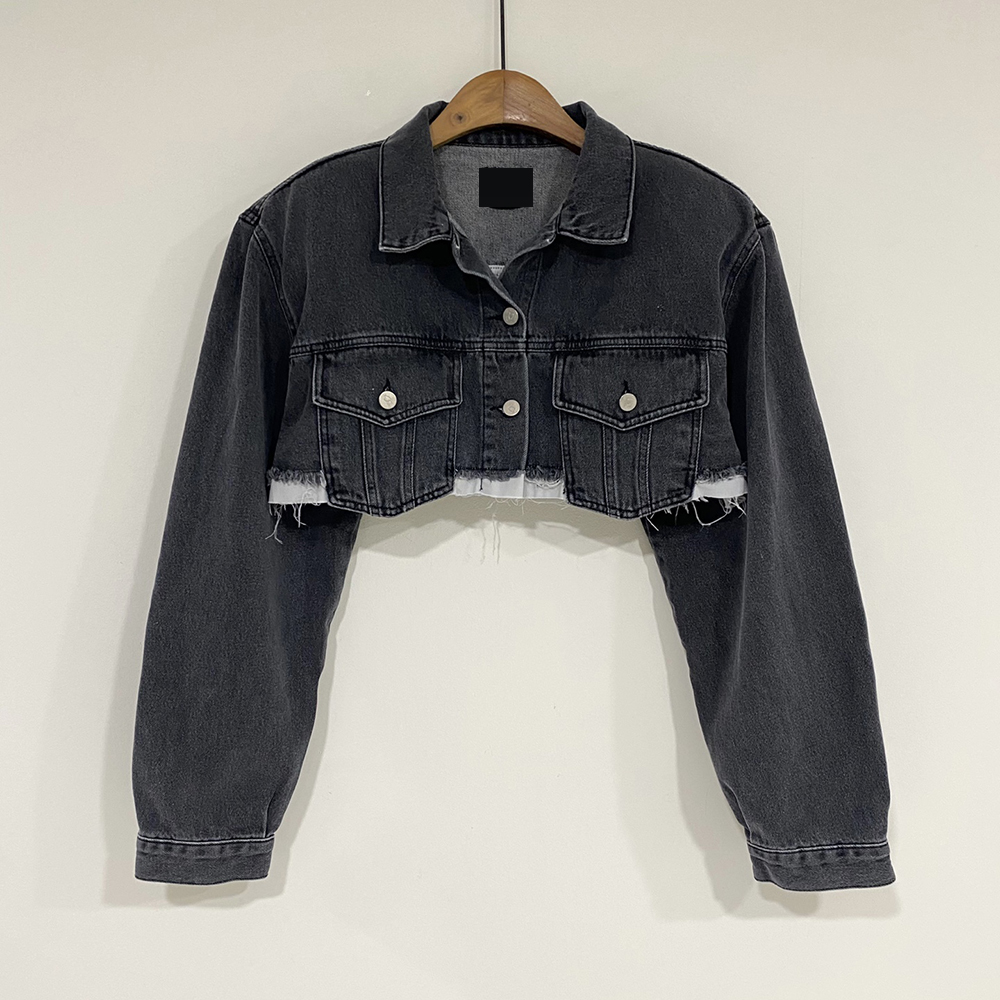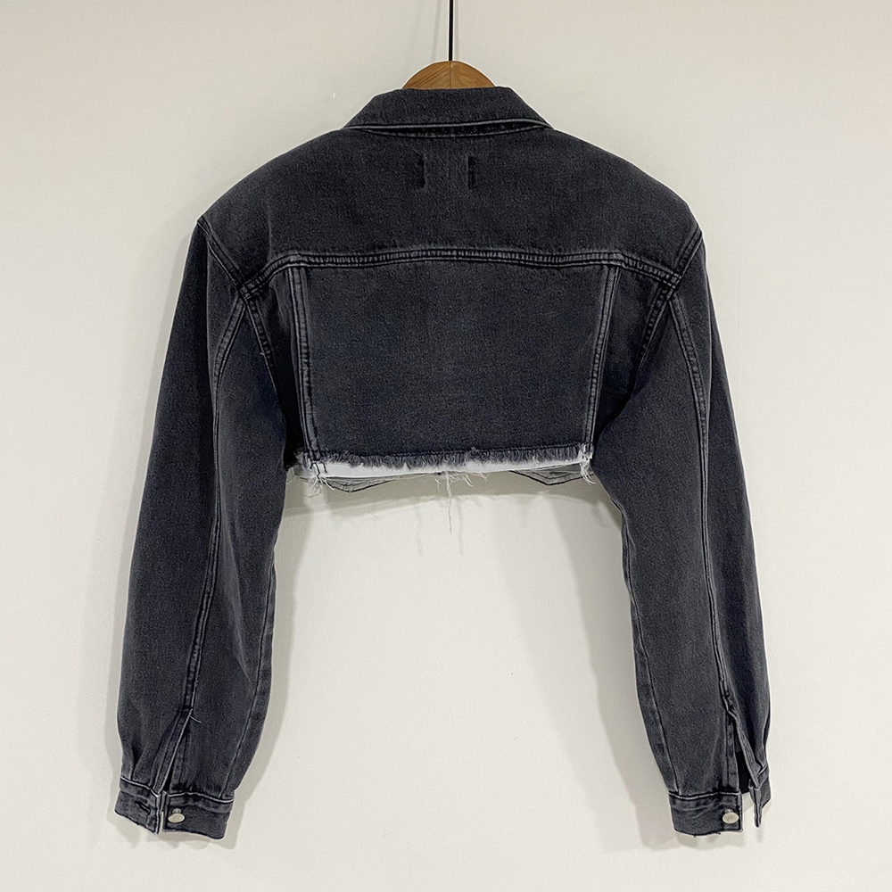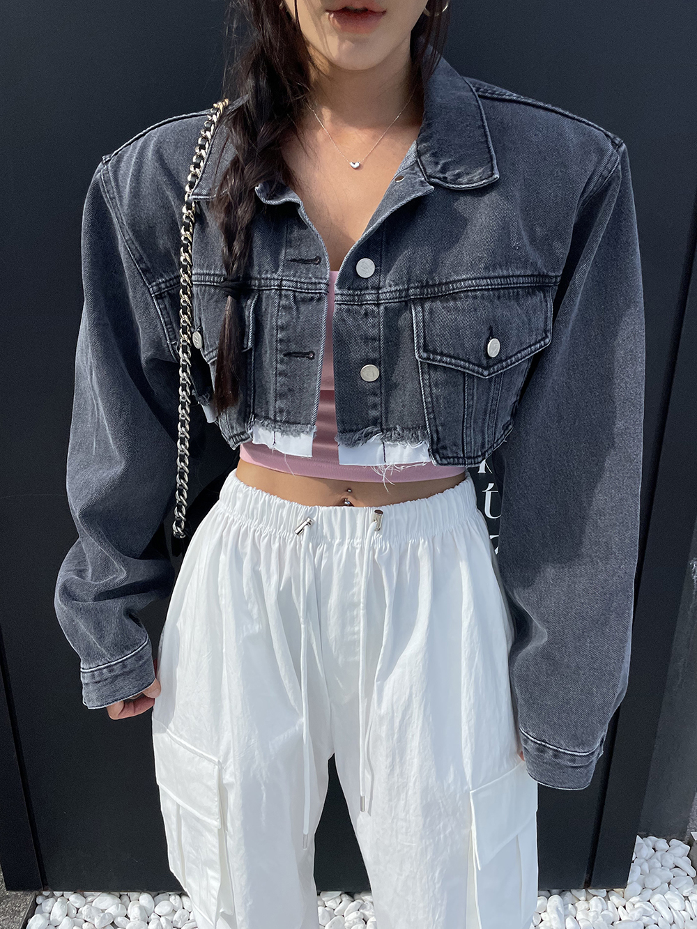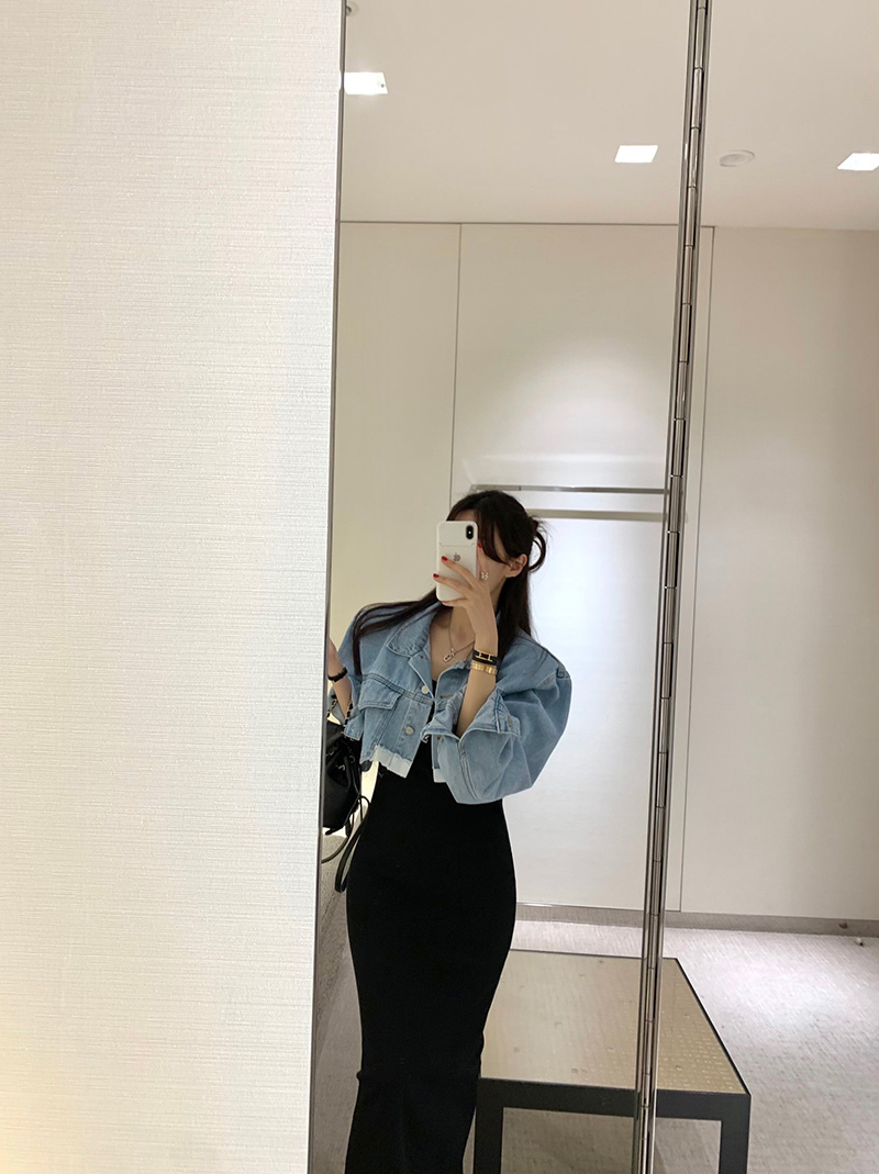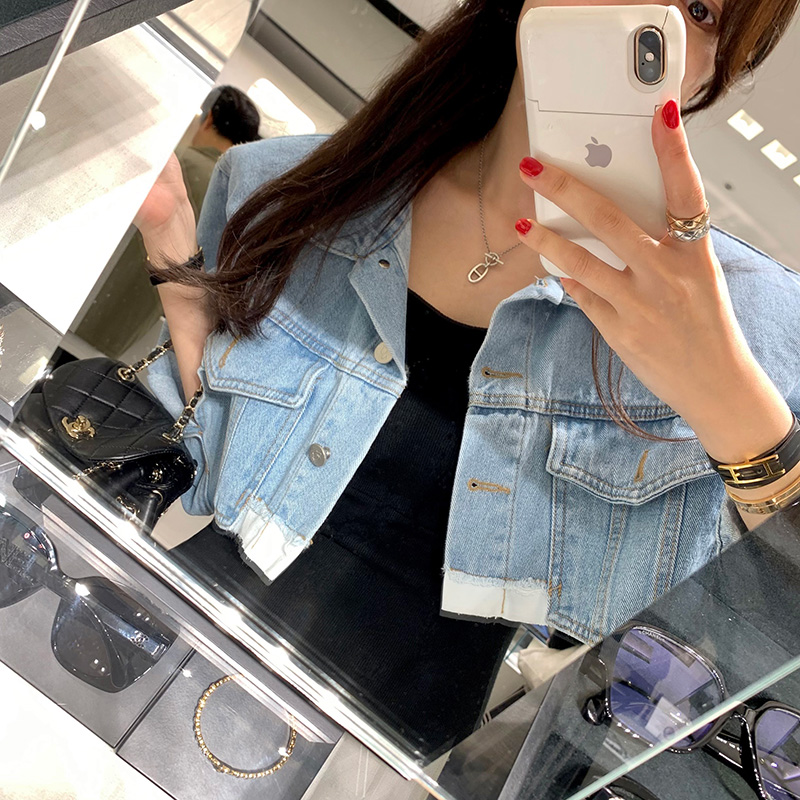 韩国 chic 复古做旧超短款夹克牛仔外套
