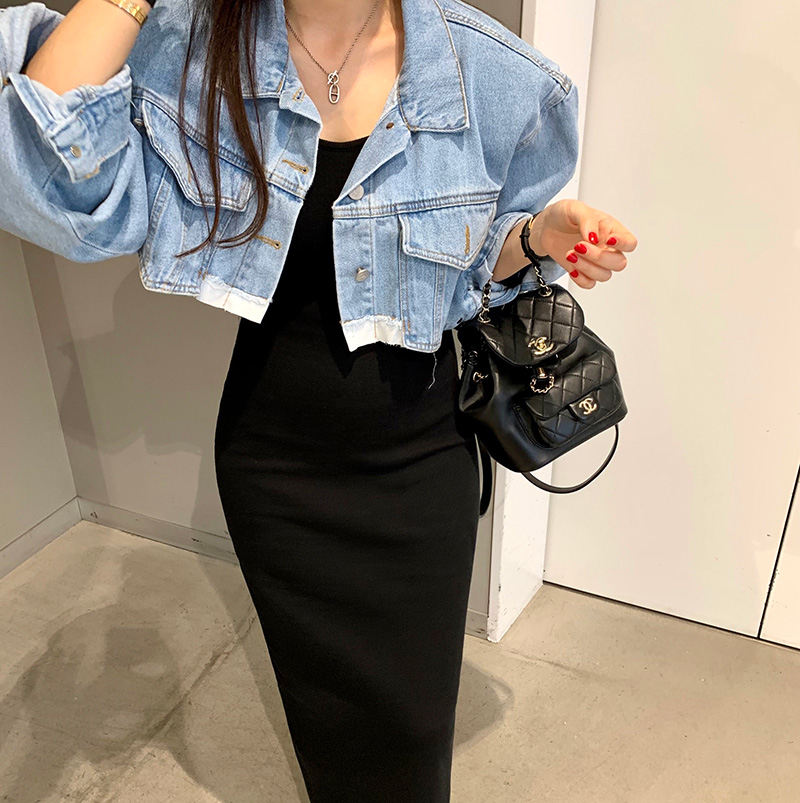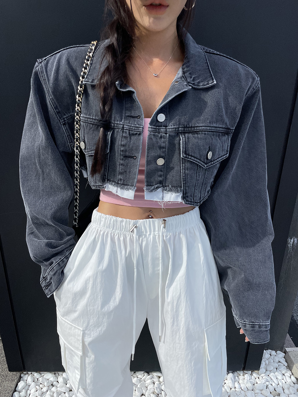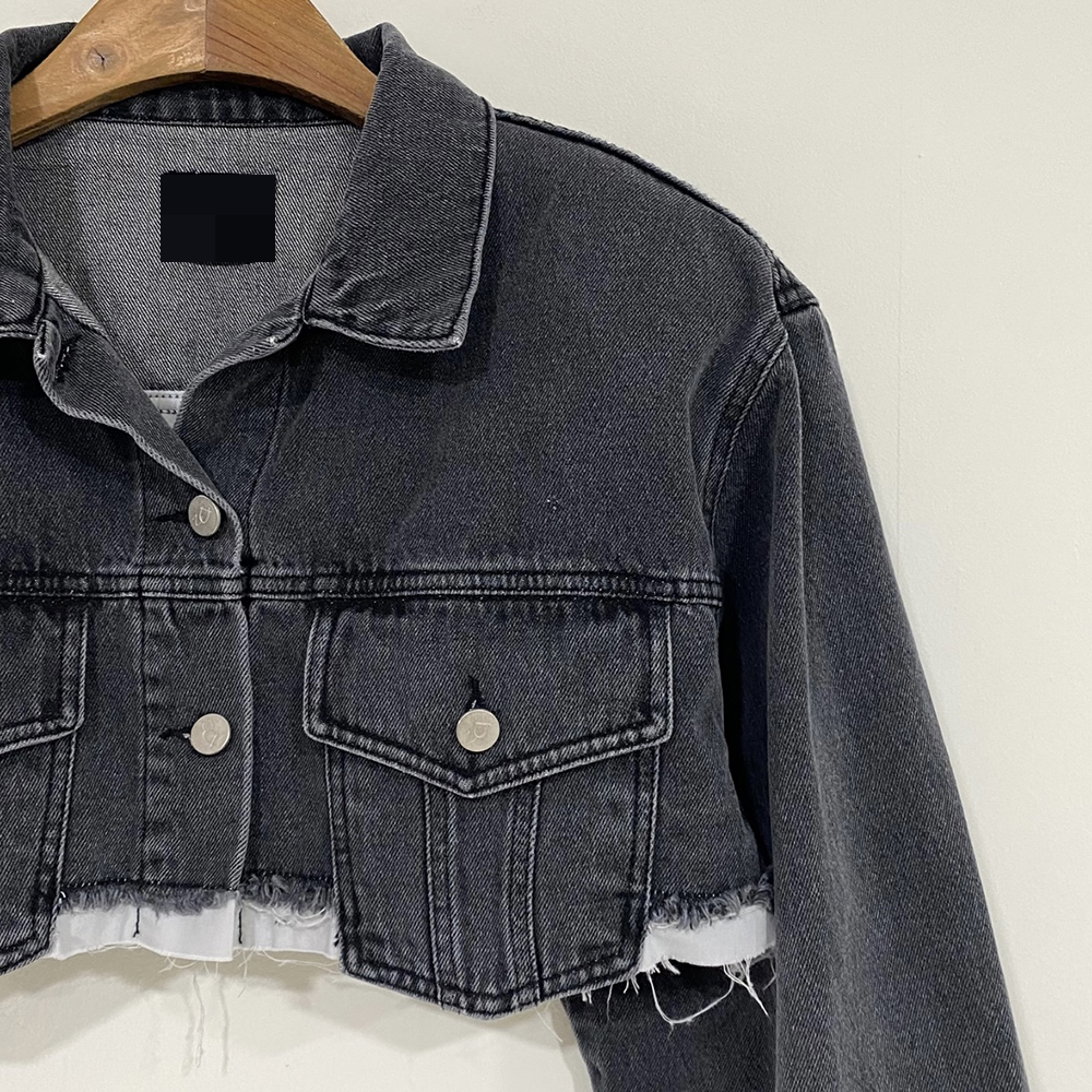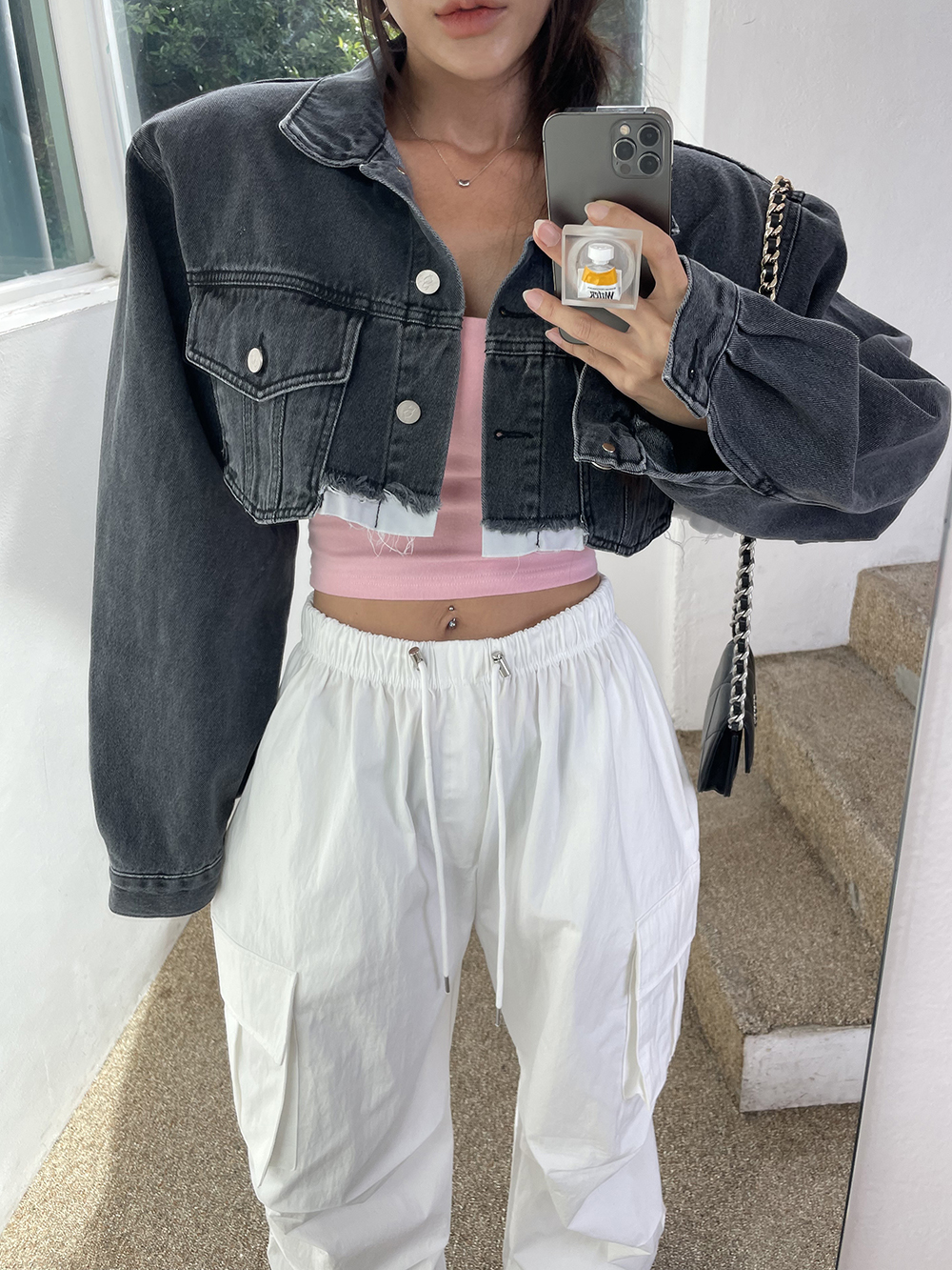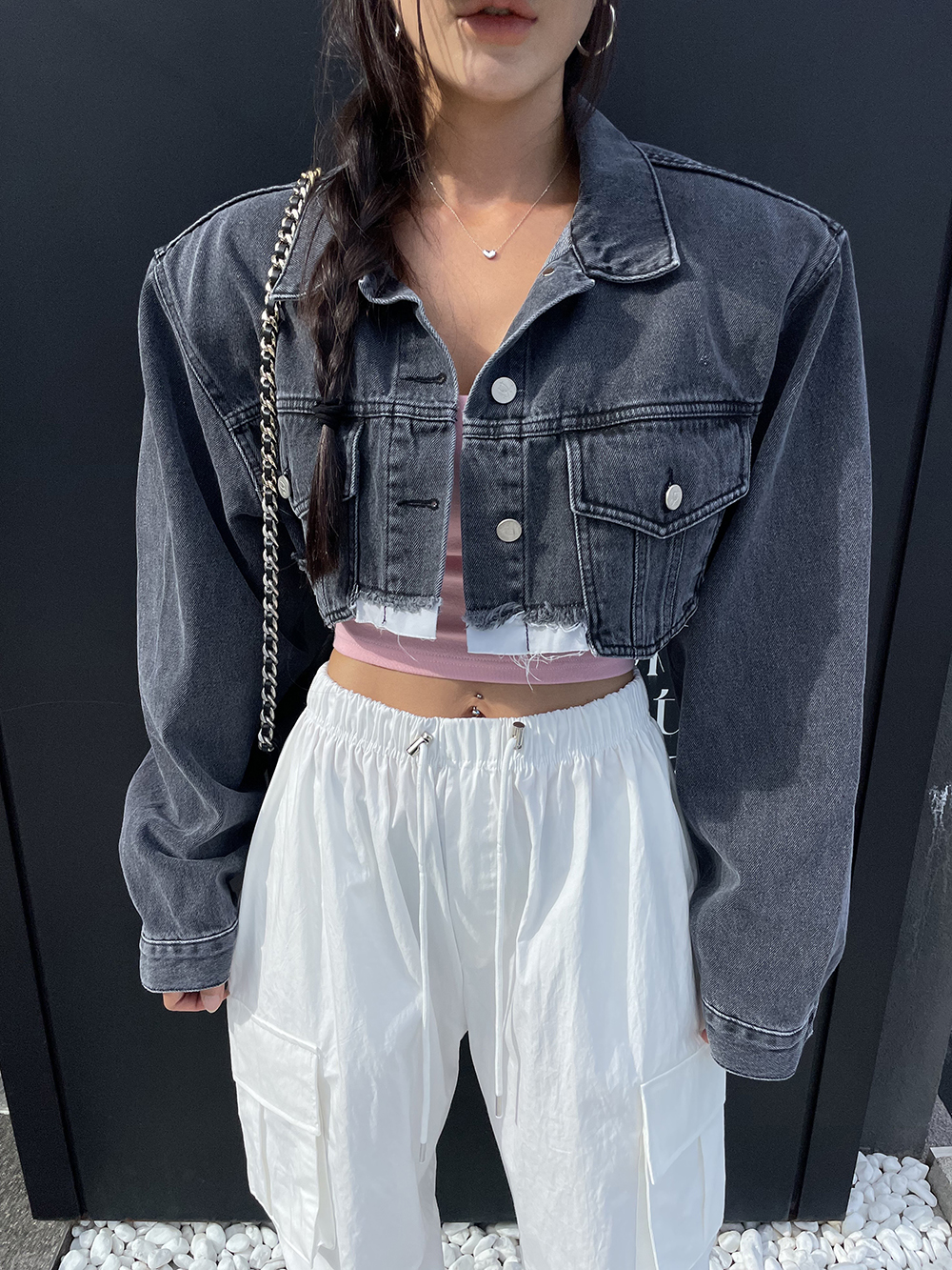 韩国 chic 复古做旧超短款夹克牛仔外套