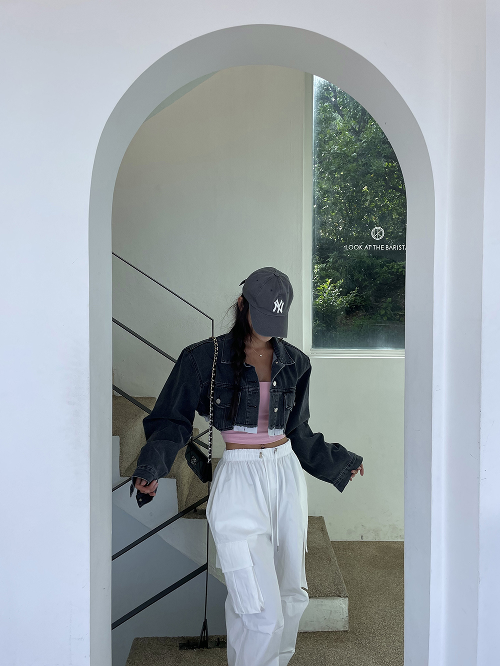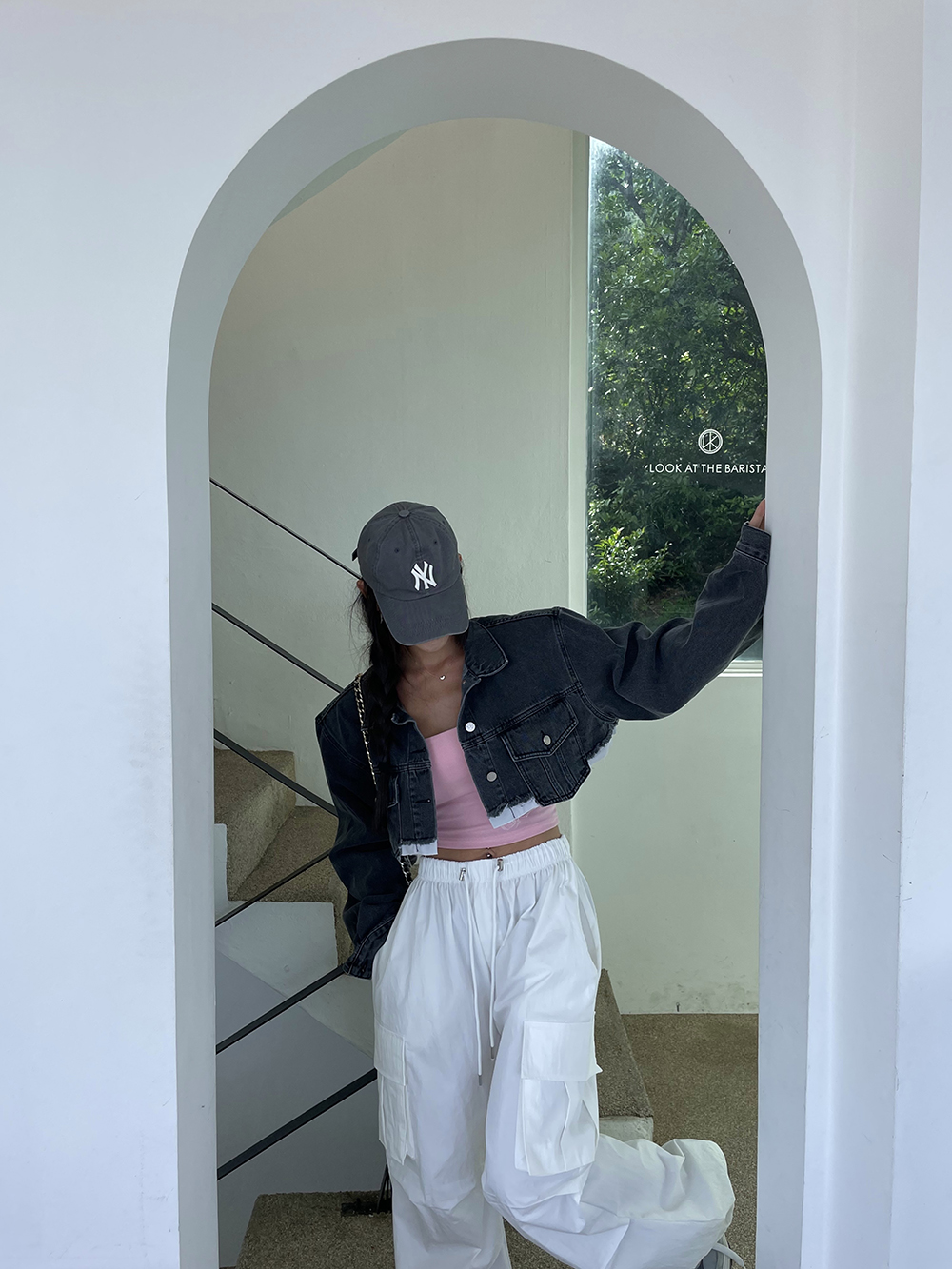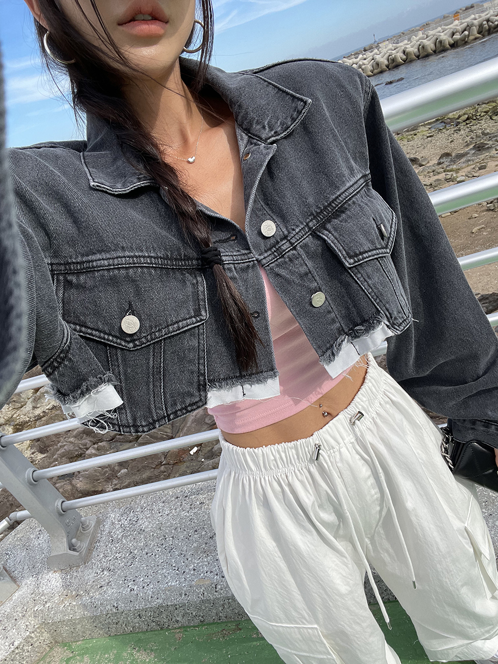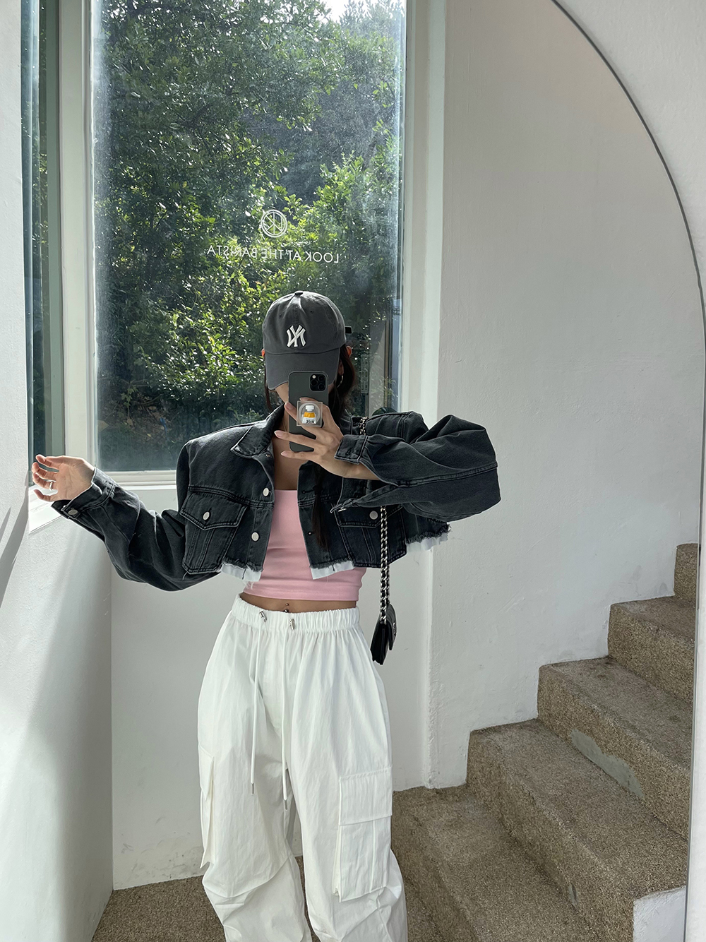 韩国 chic 复古做旧超短款夹克牛仔外套