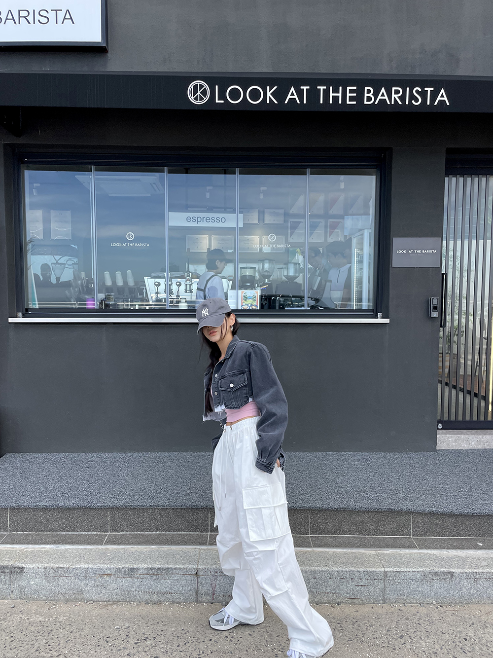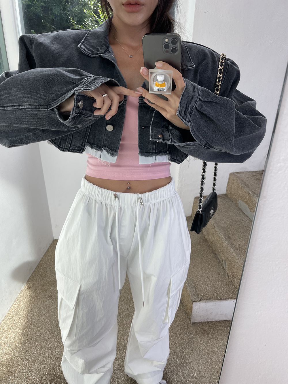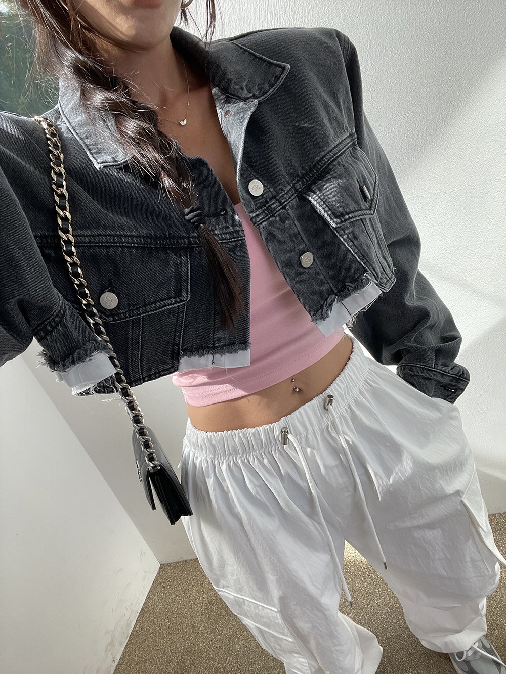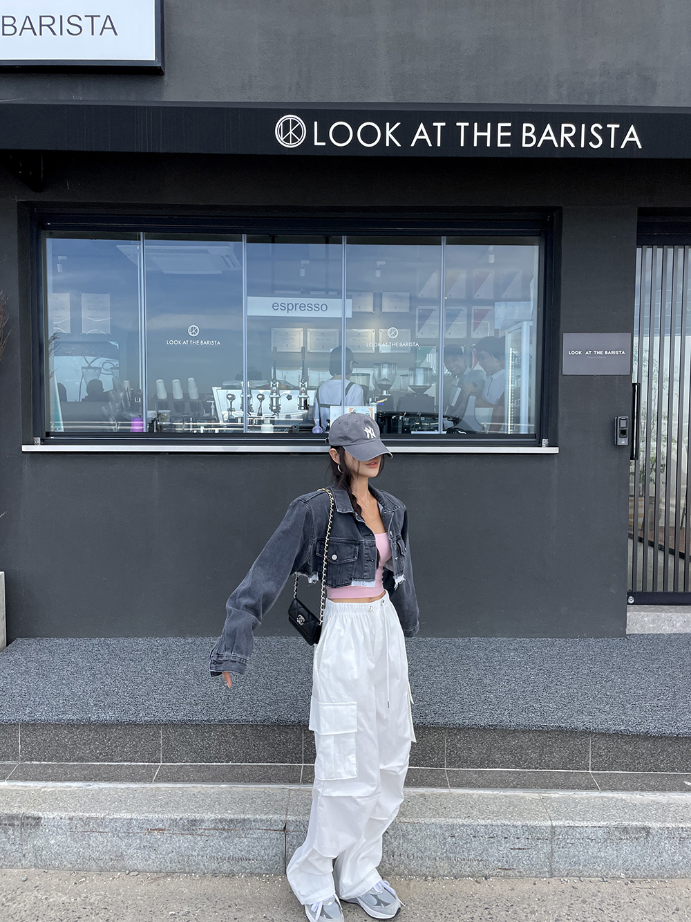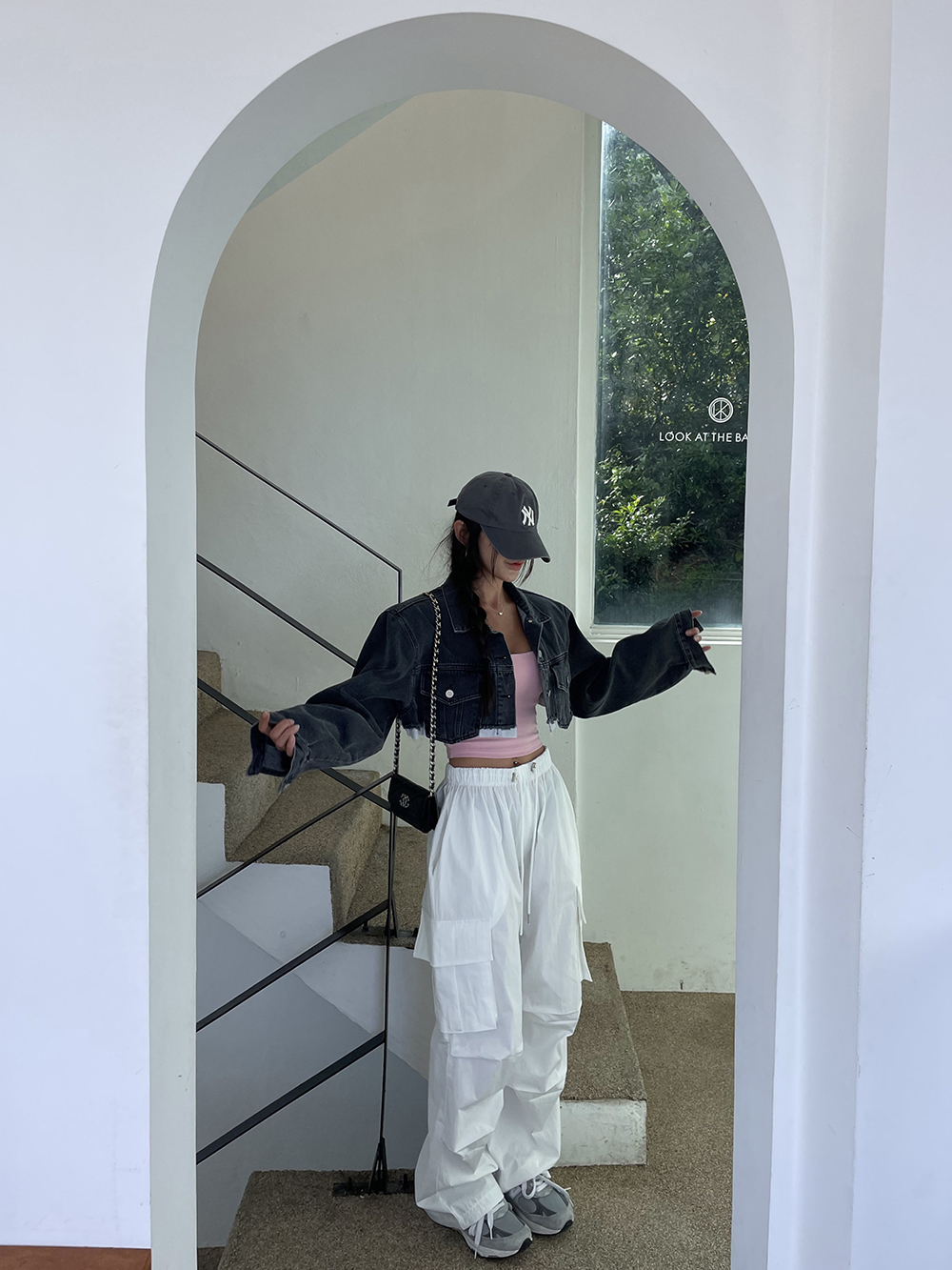 韩国 chic 复古做旧超短款夹克牛仔外套