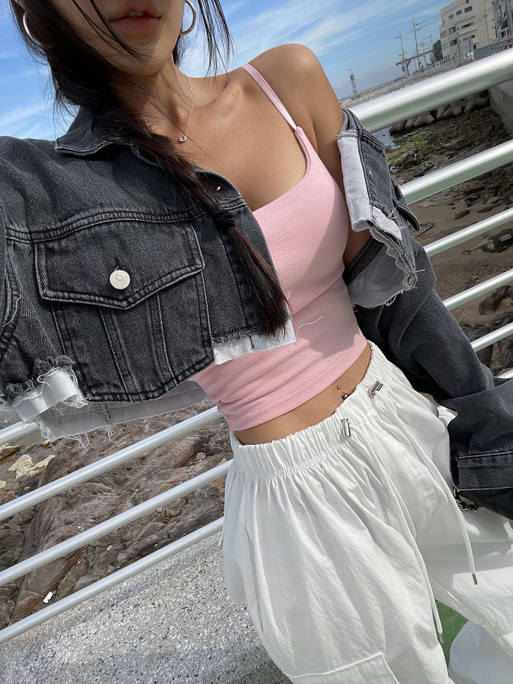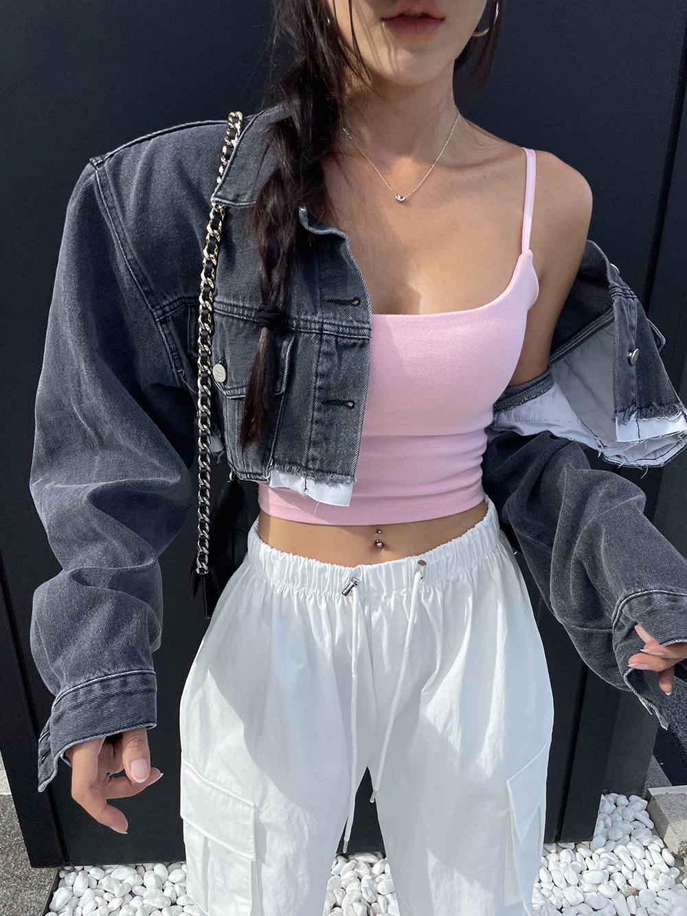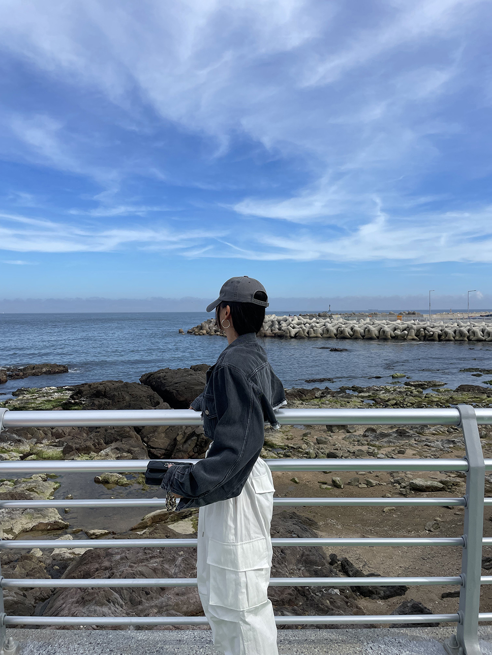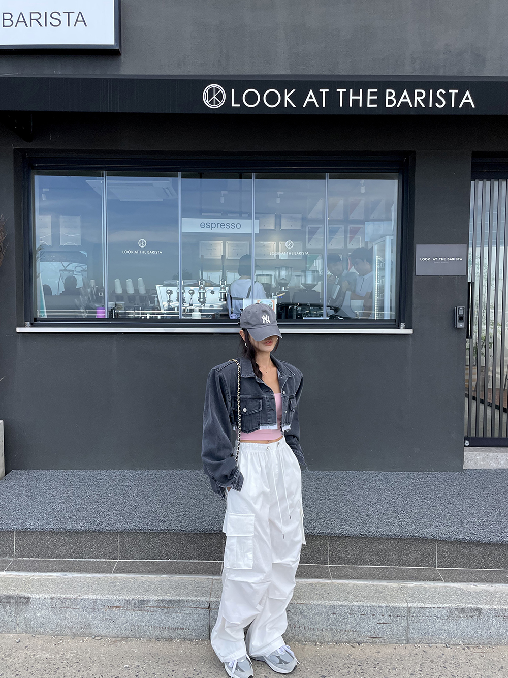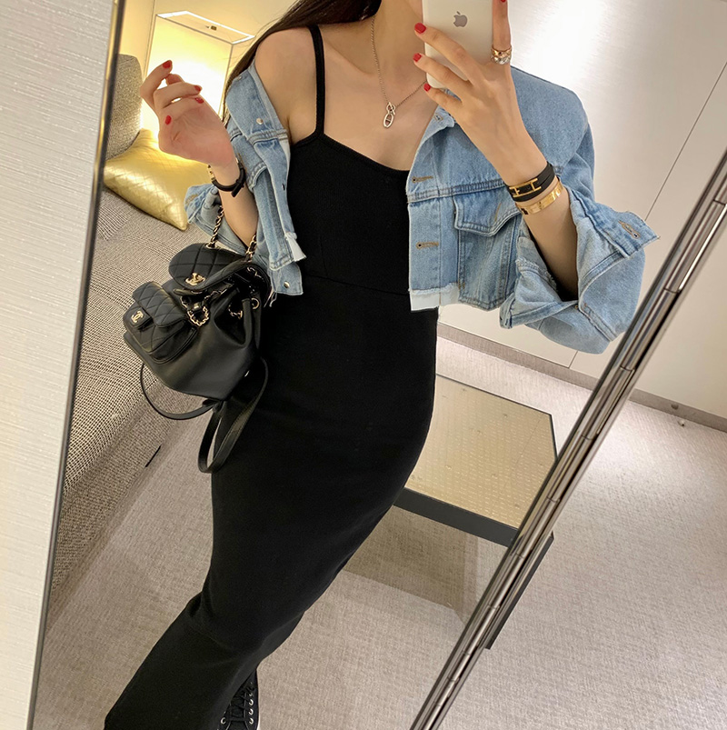 韩国 chic 复古做旧超短款夹克牛仔外套