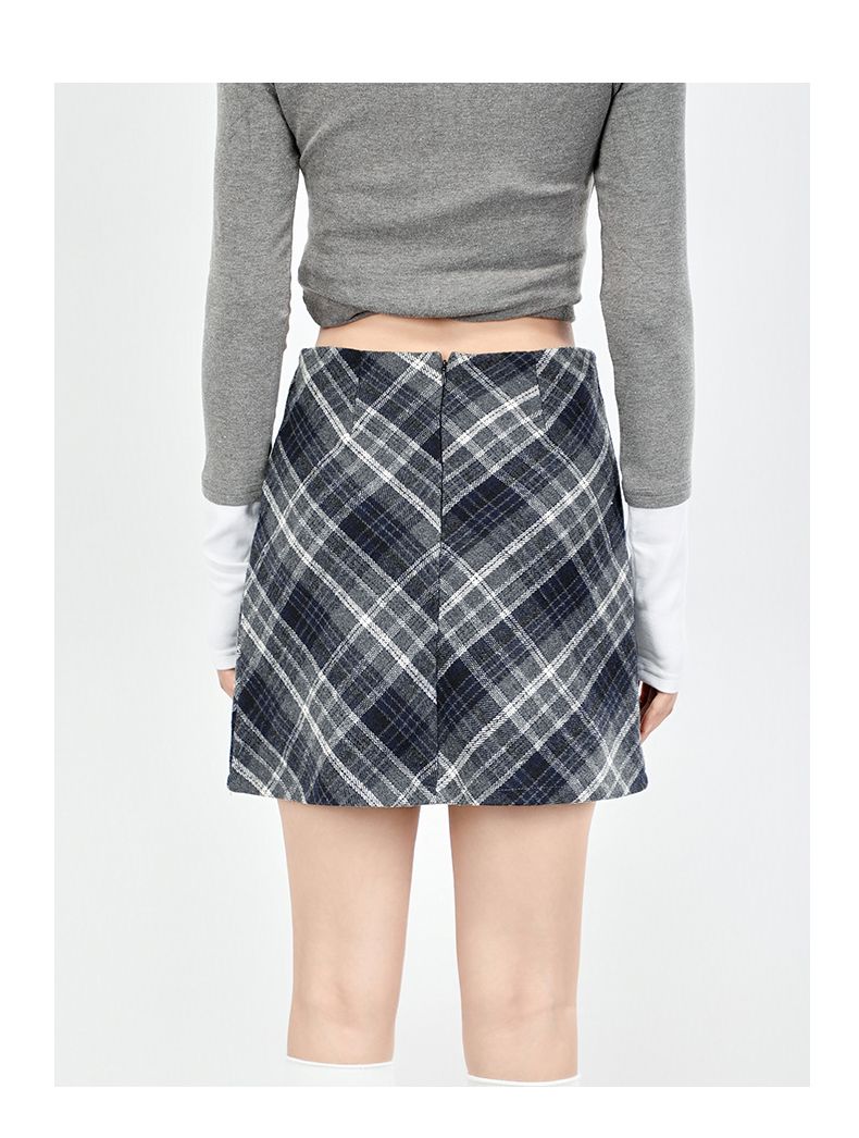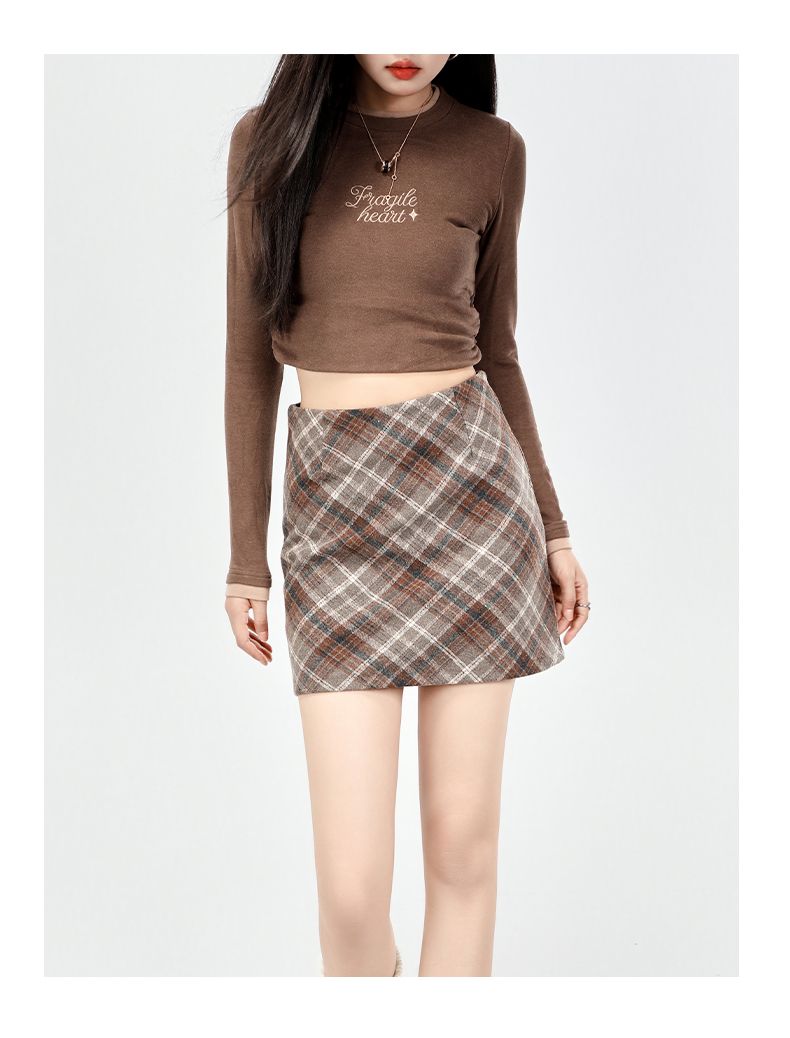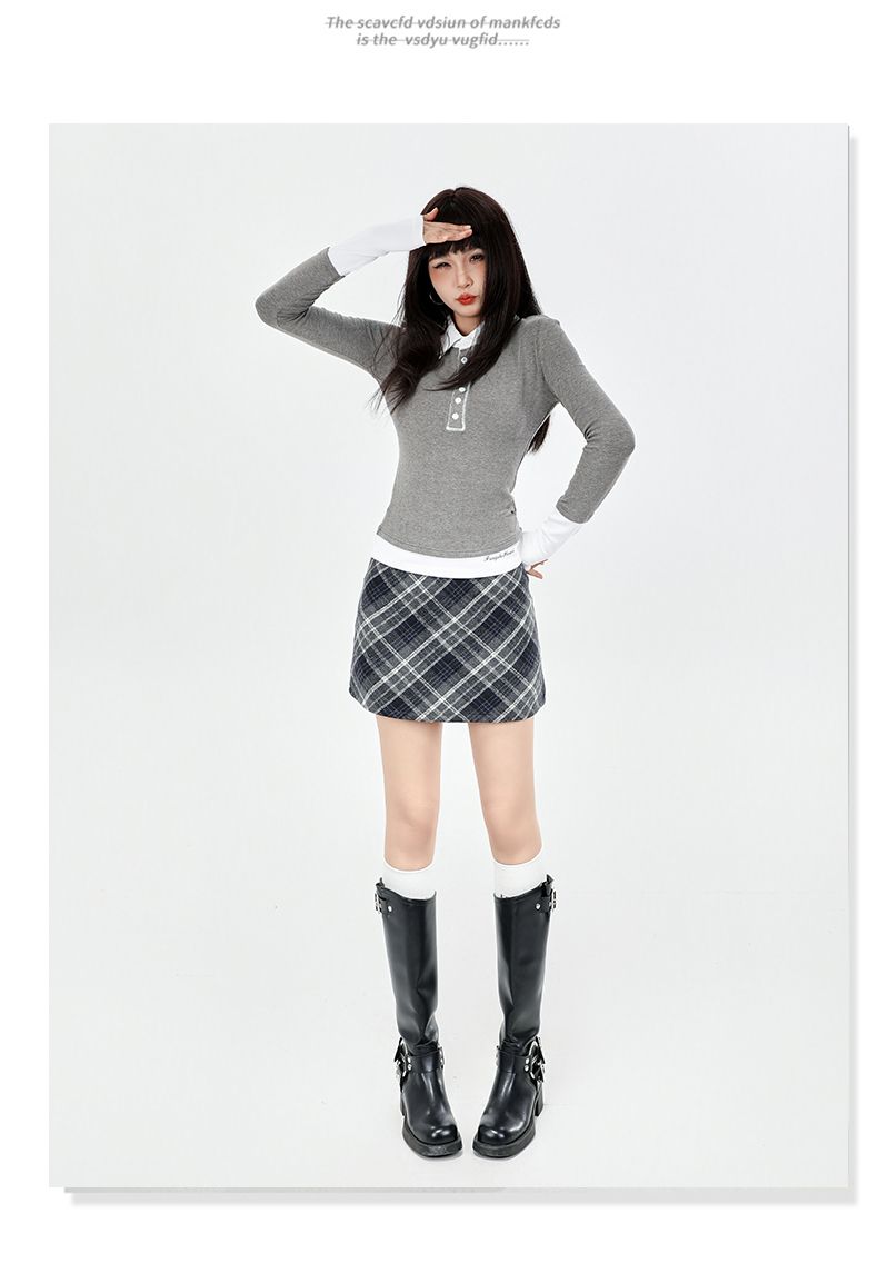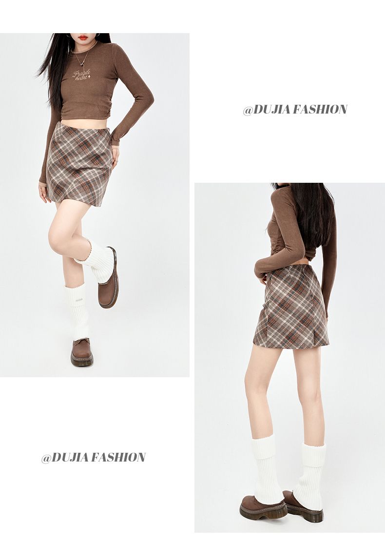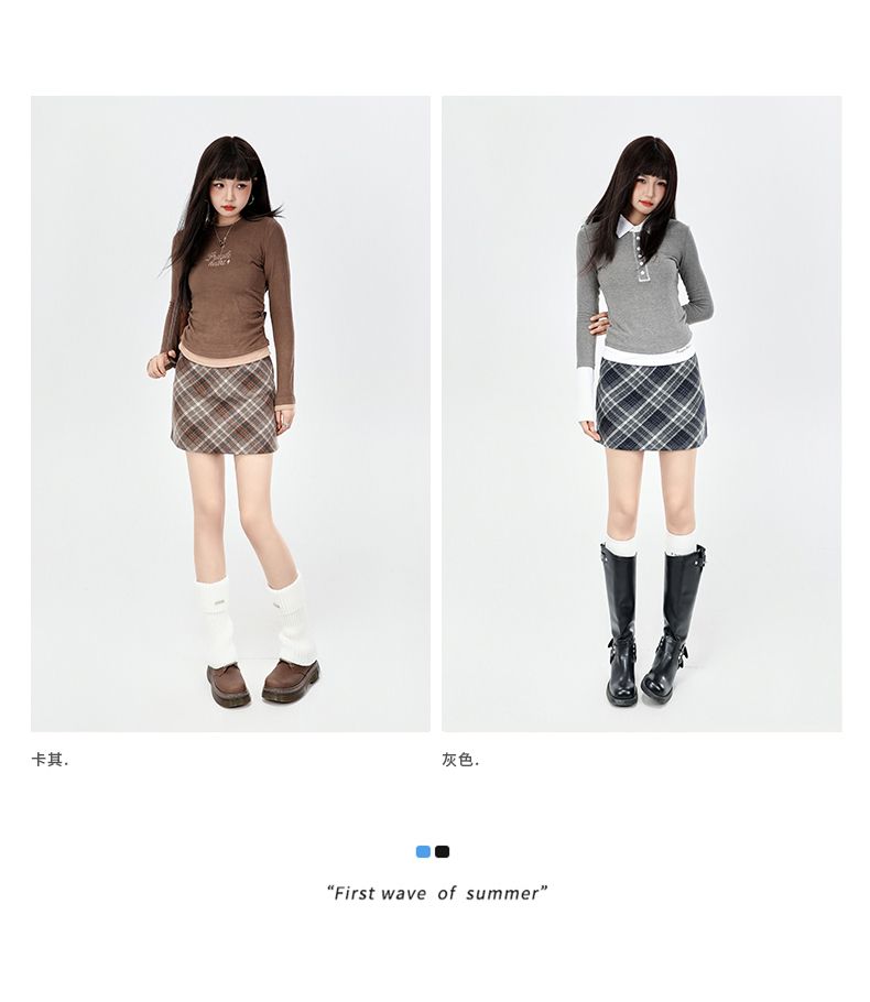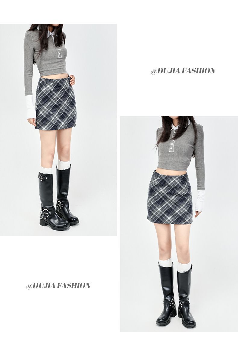 实拍美式灰色格纹半身裙2025秋新款女学院风高腰撞色A字包臀短裙