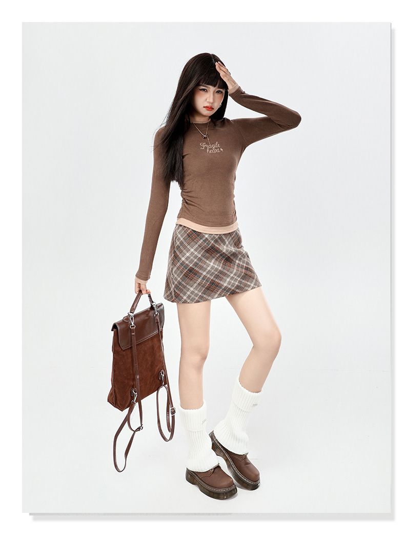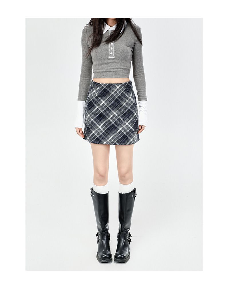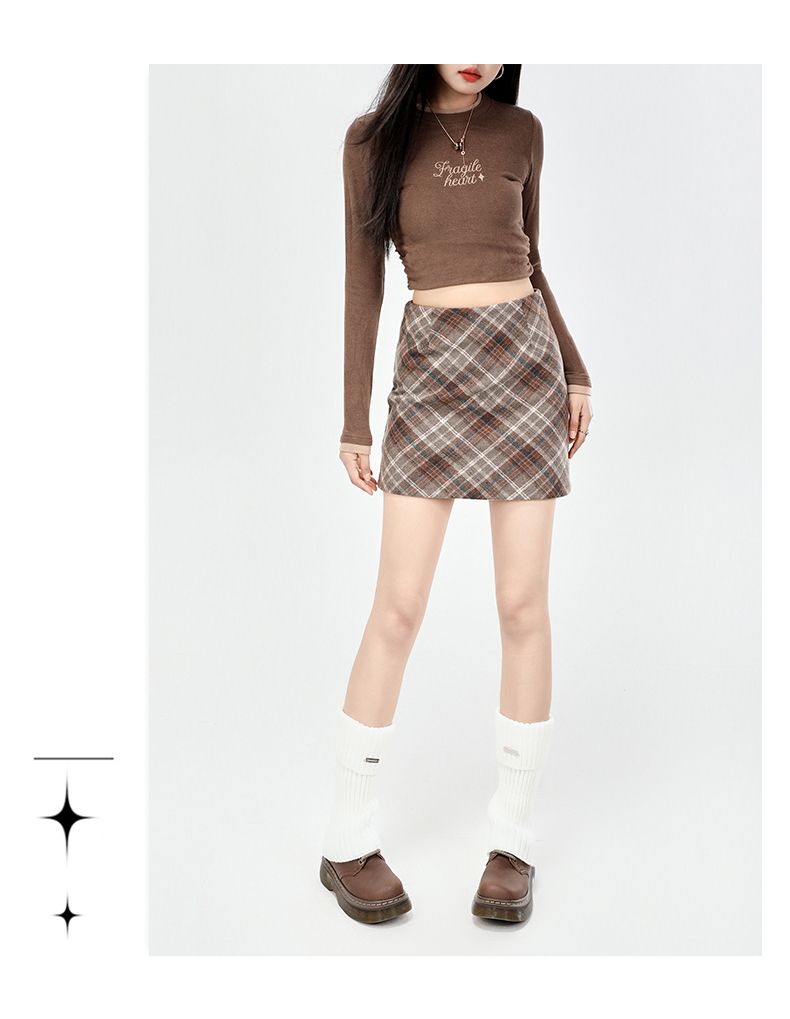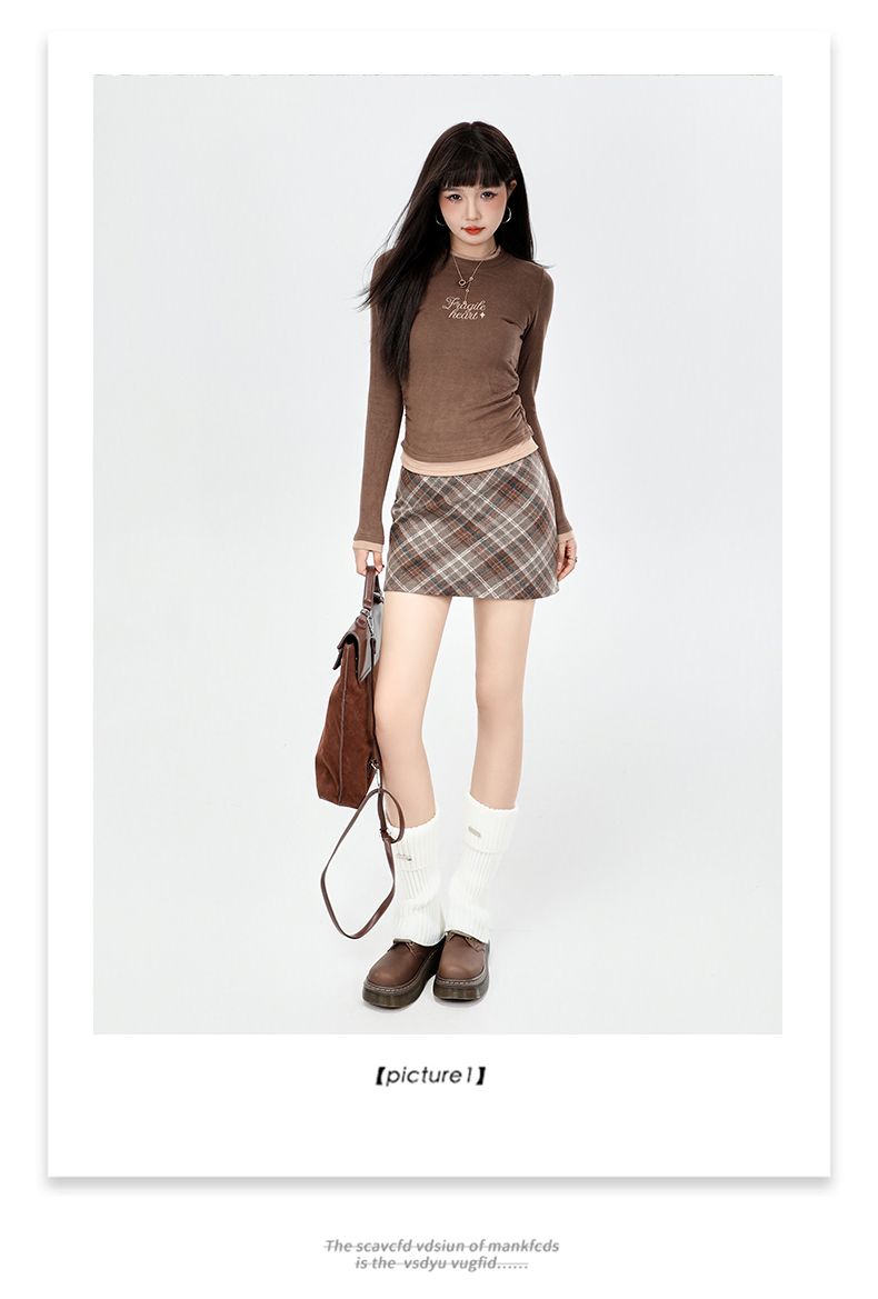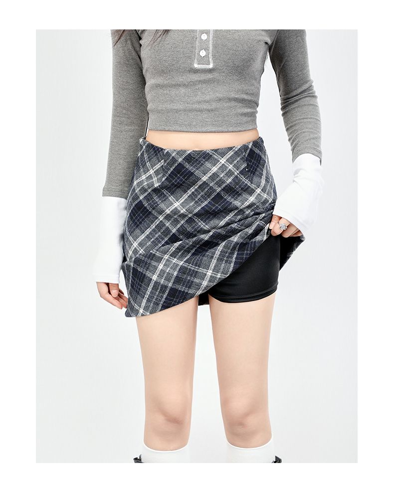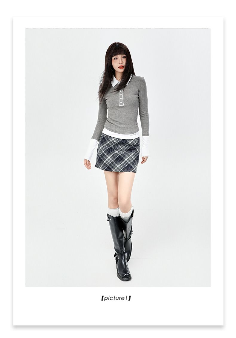 实拍美式灰色格纹半身裙2025秋新款女学院风高腰撞色A字包臀短裙
