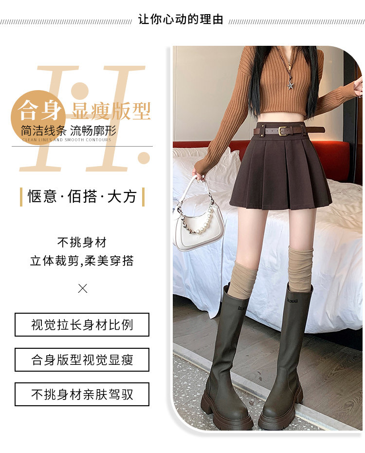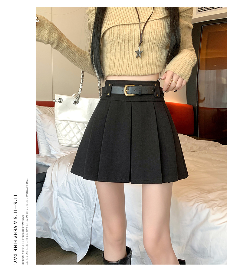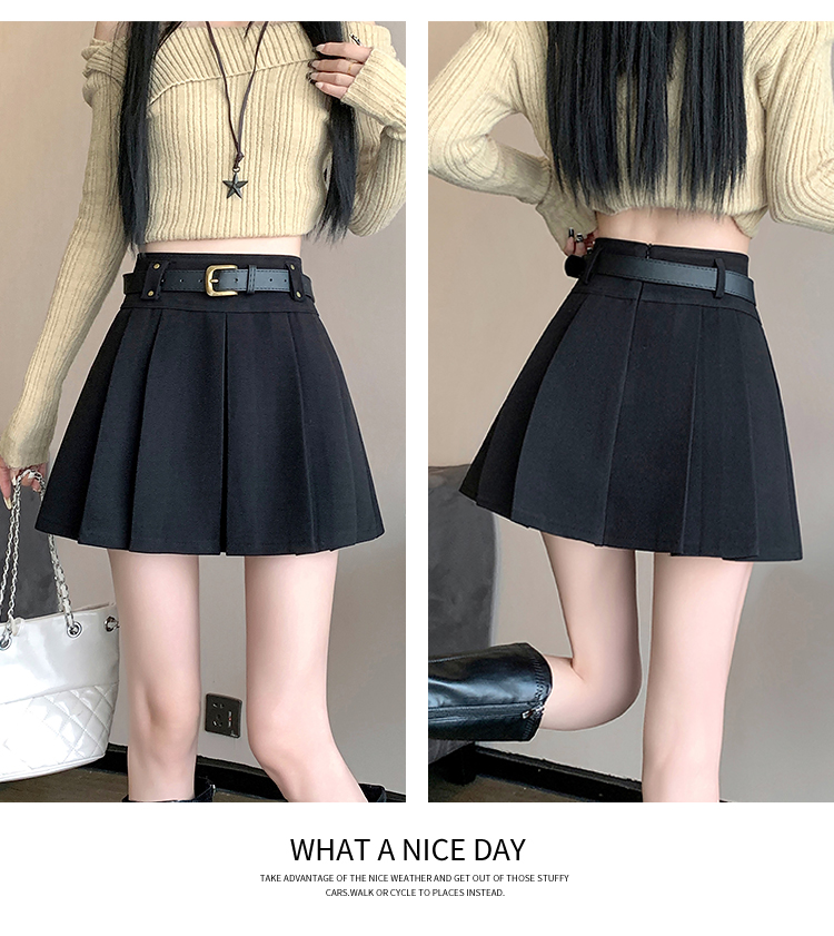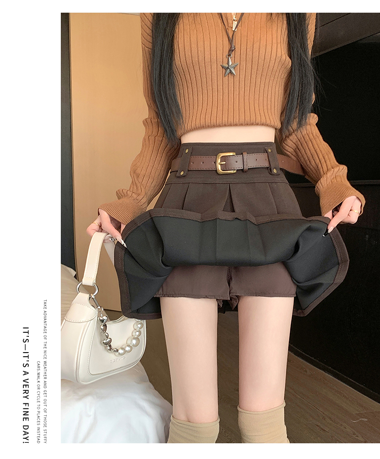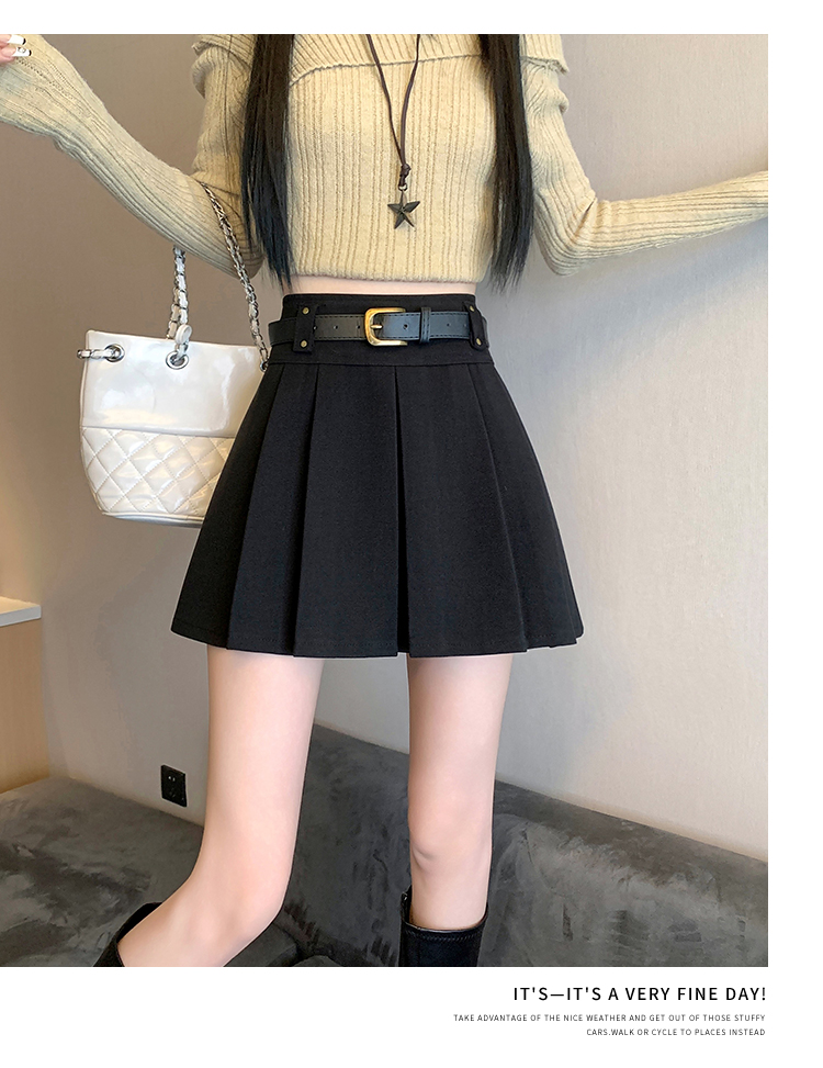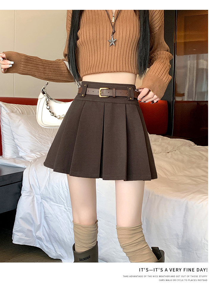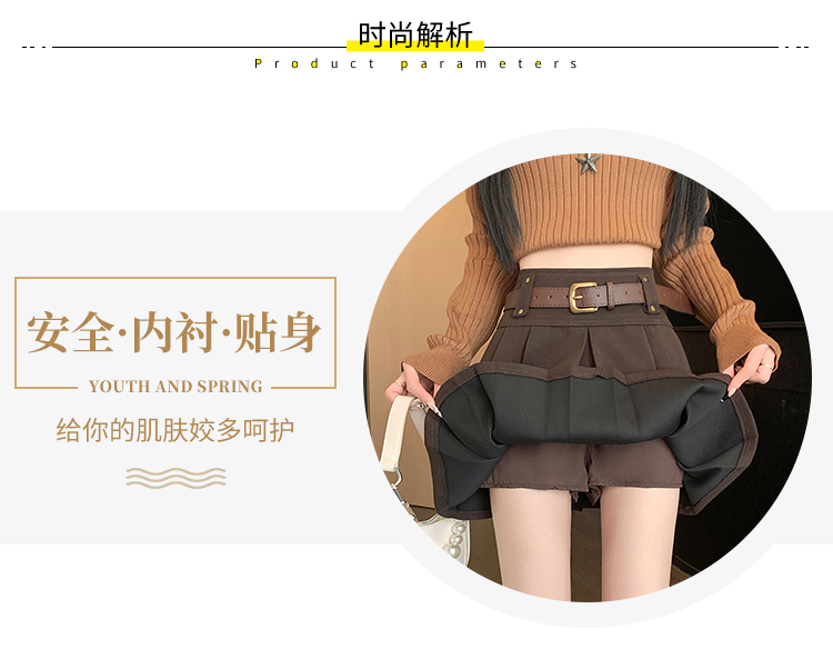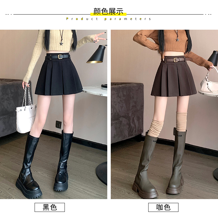 毛呢短裙女2025冬装新款呢子a字裙高腰防走光短裤百褶半裙女