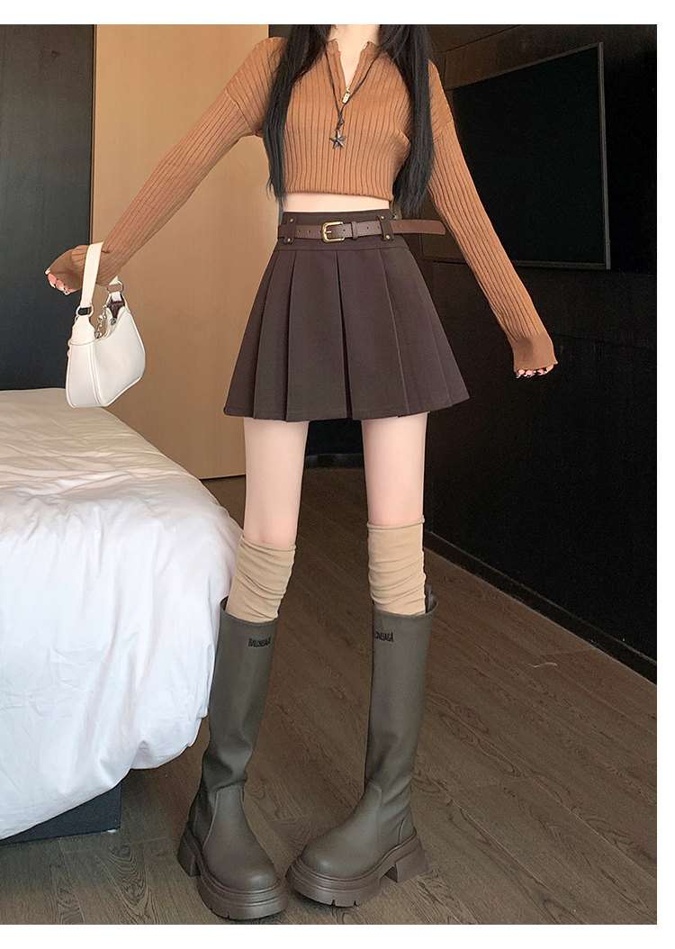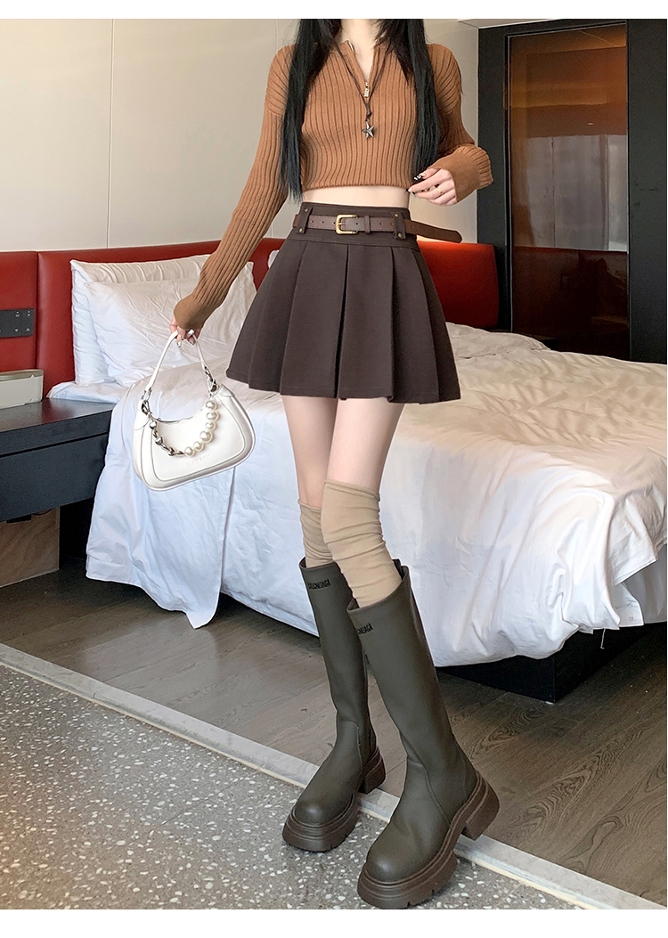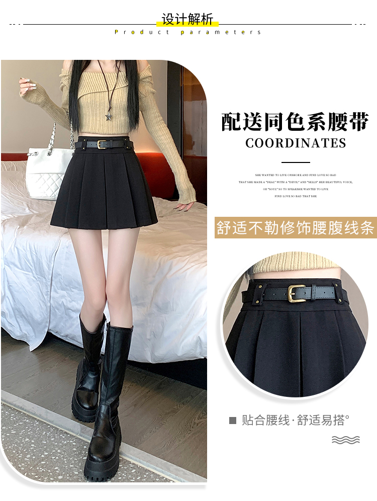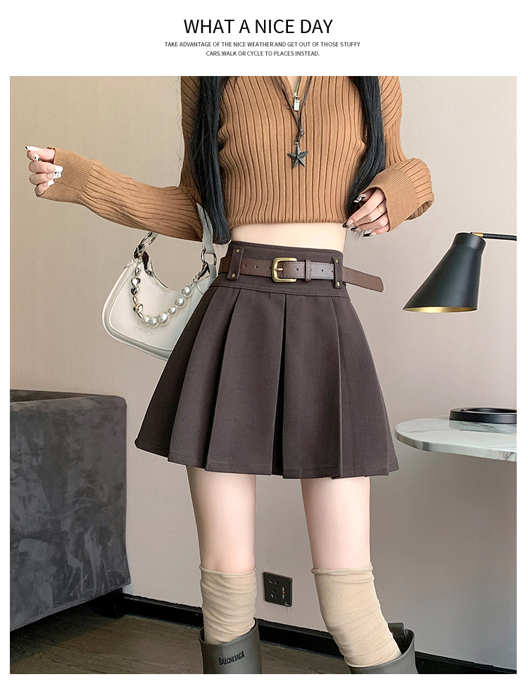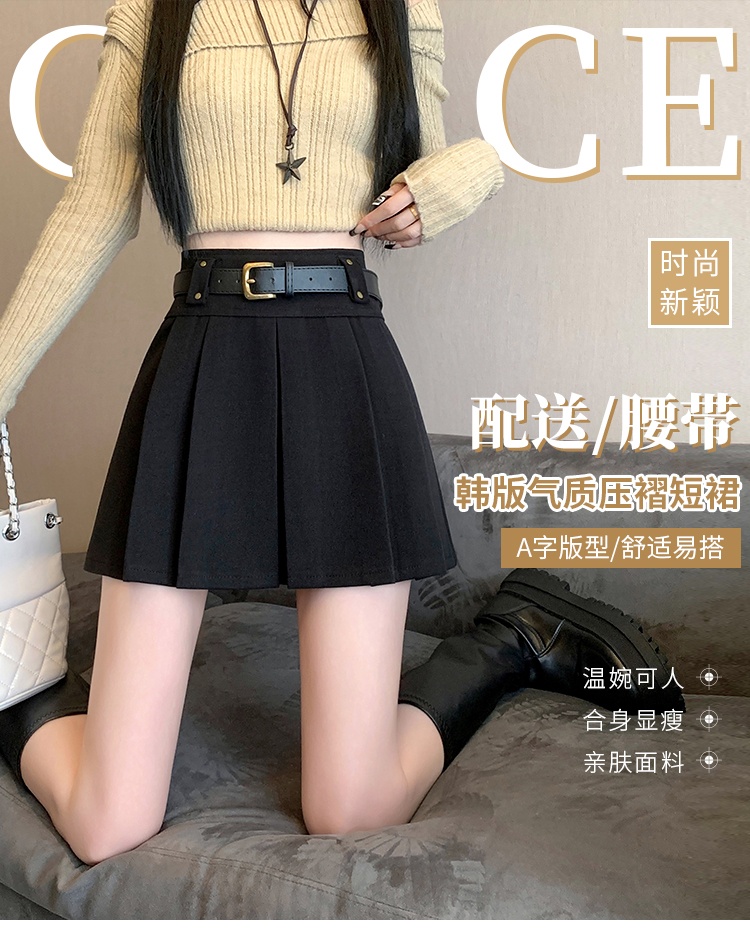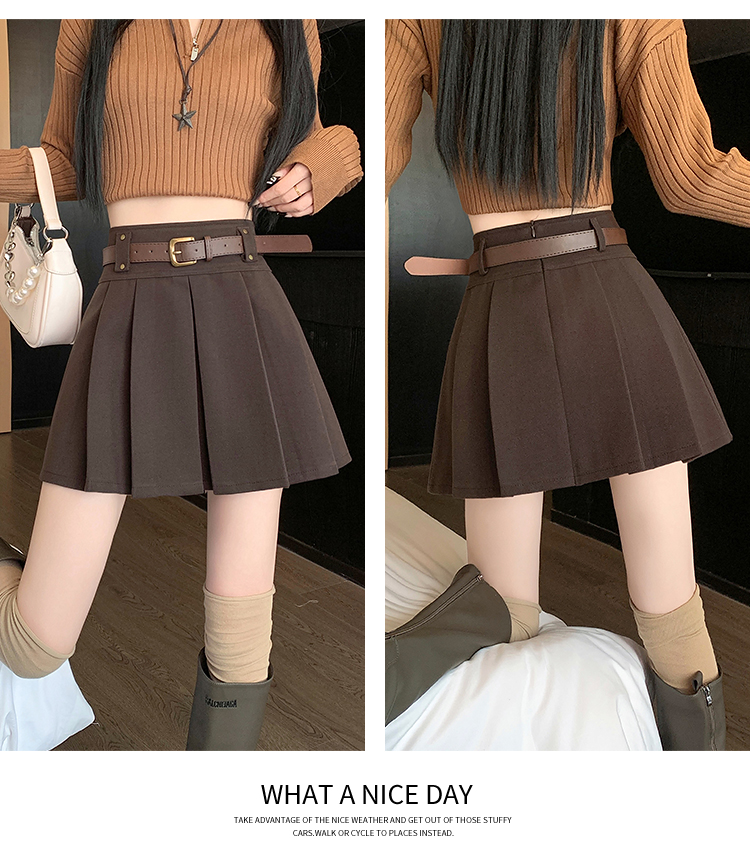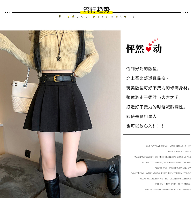 毛呢短裙女2025冬装新款呢子a字裙高腰防走光短裤百褶半裙女