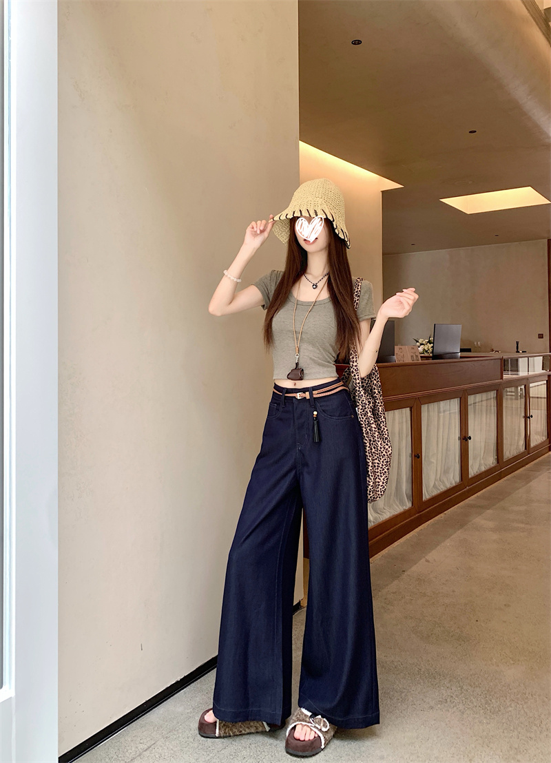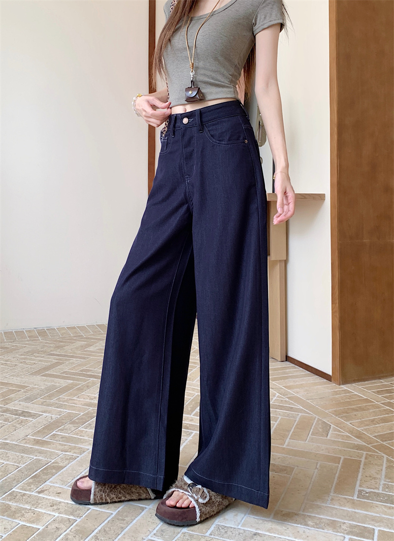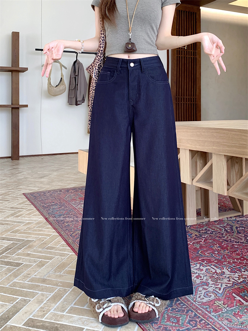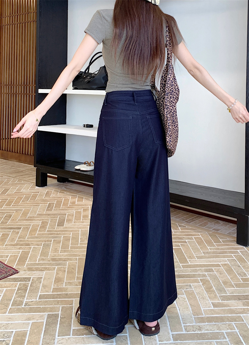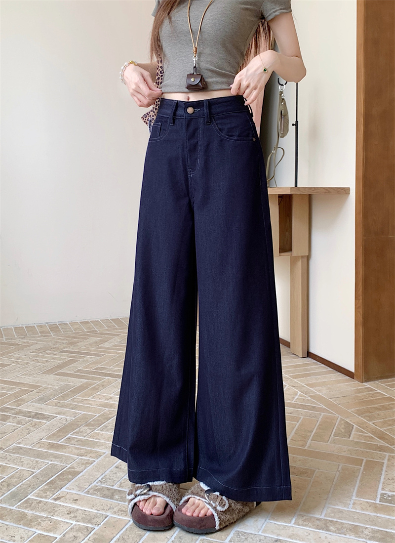 实拍实价~新款丹宁蓝直筒高腰宽松显瘦垂感牛仔十分阔腿裤