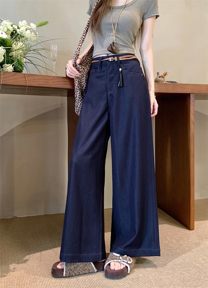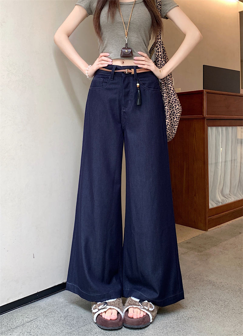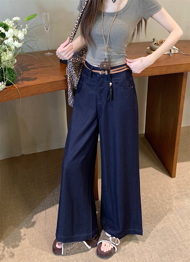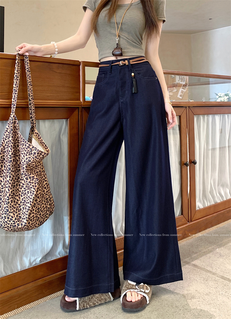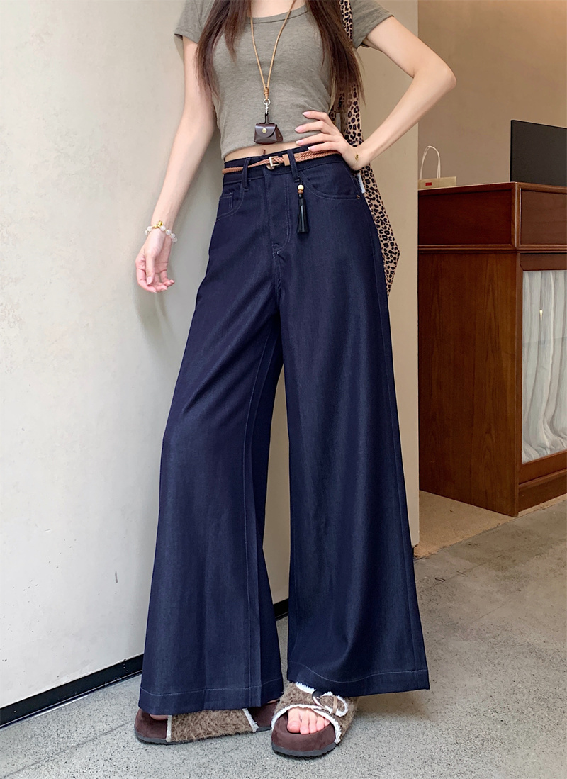实拍实价~新款丹宁蓝直筒高腰宽松显瘦垂感牛仔十分阔腿裤