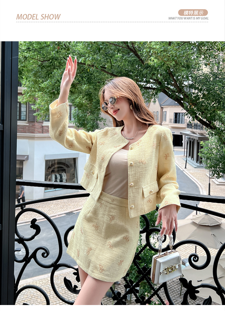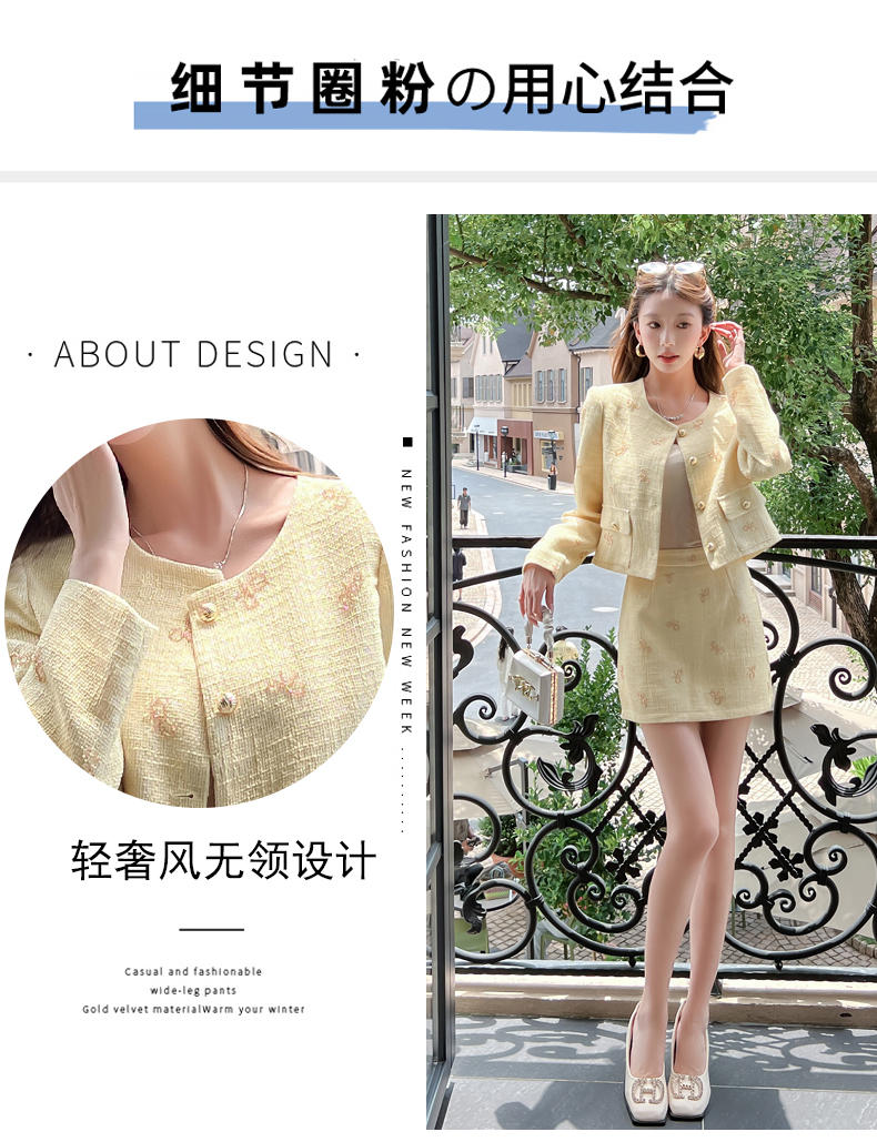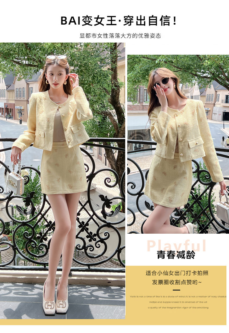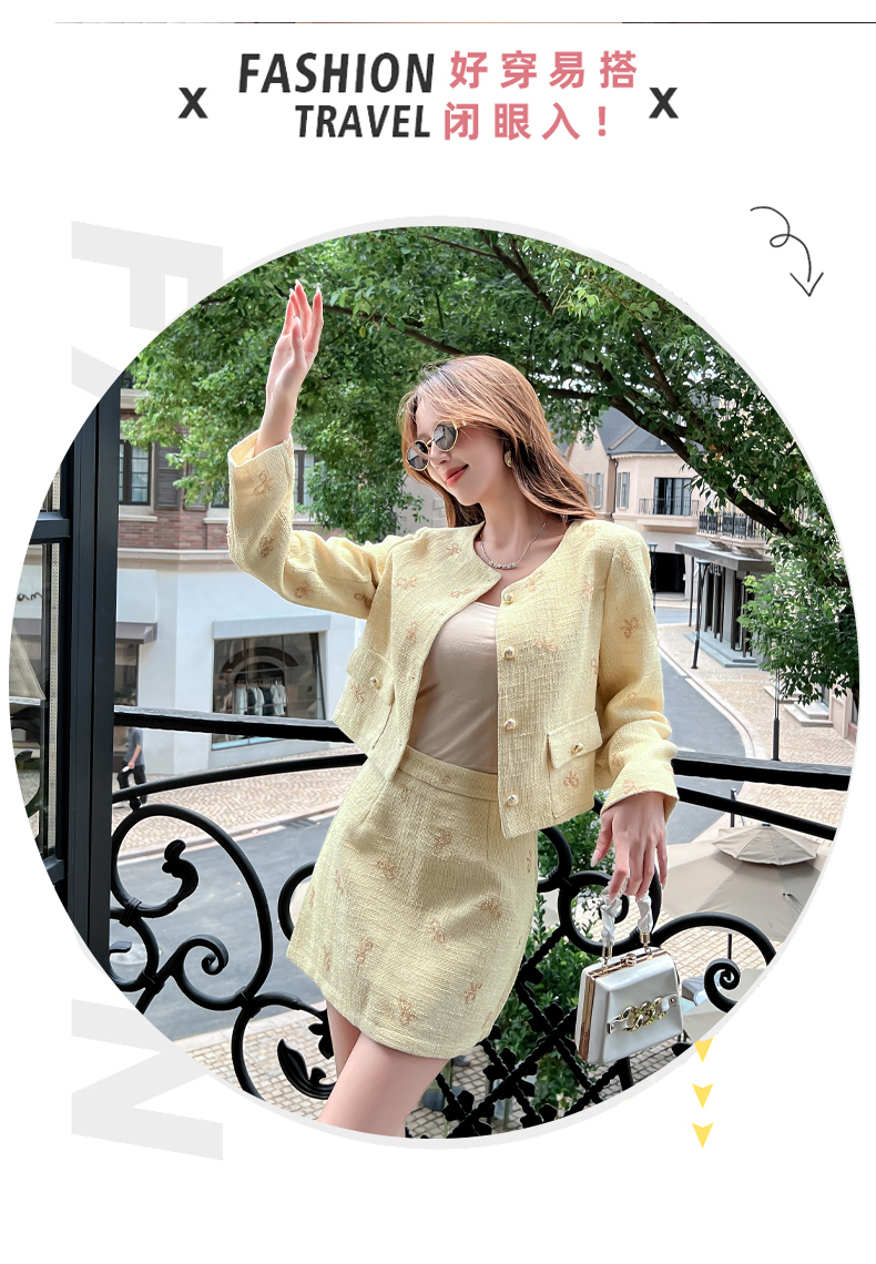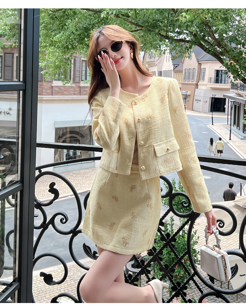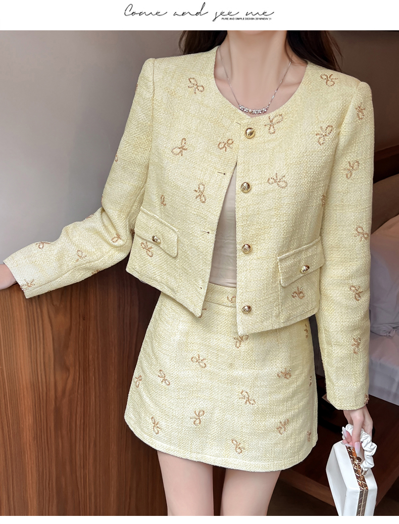 实拍2025早秋法式气质名媛蝴蝶结串珠小香风外套+A字半身裙套装