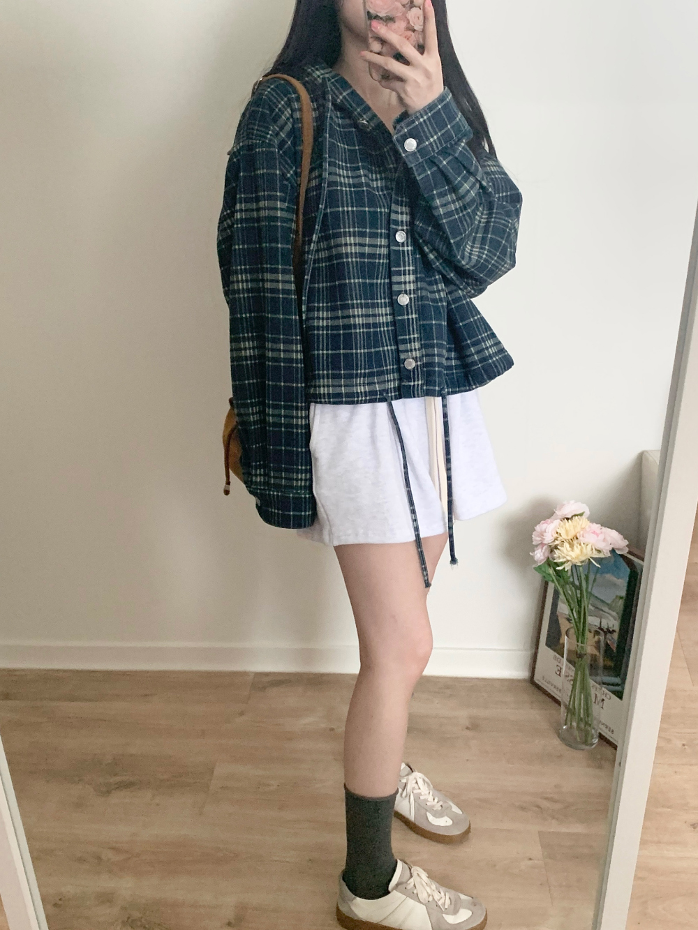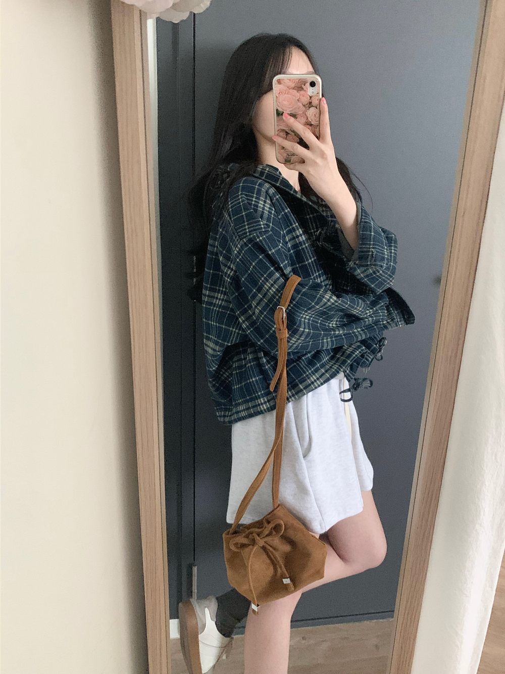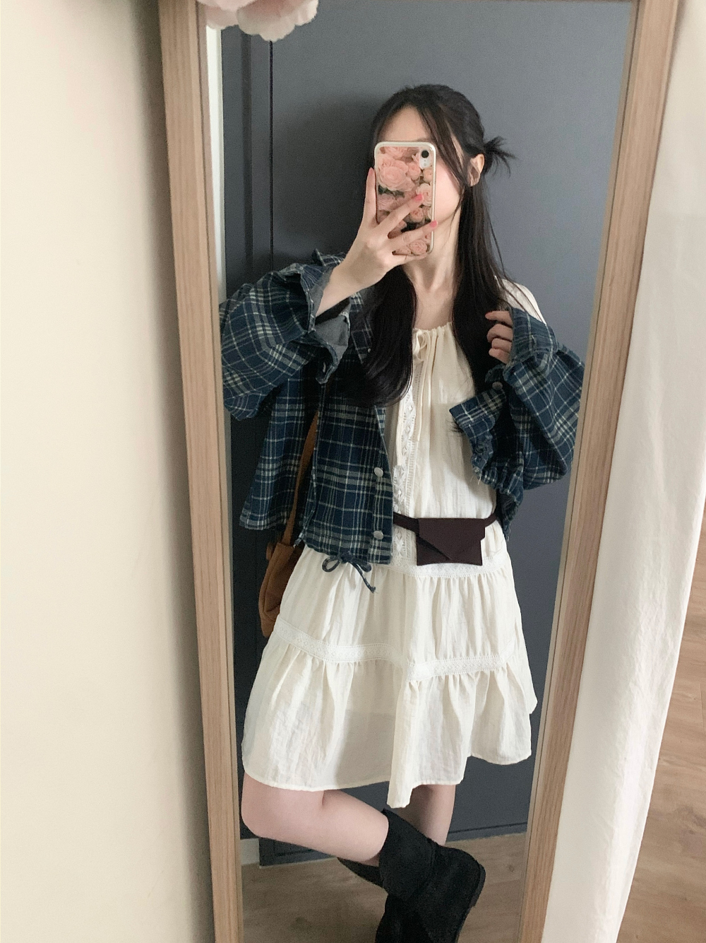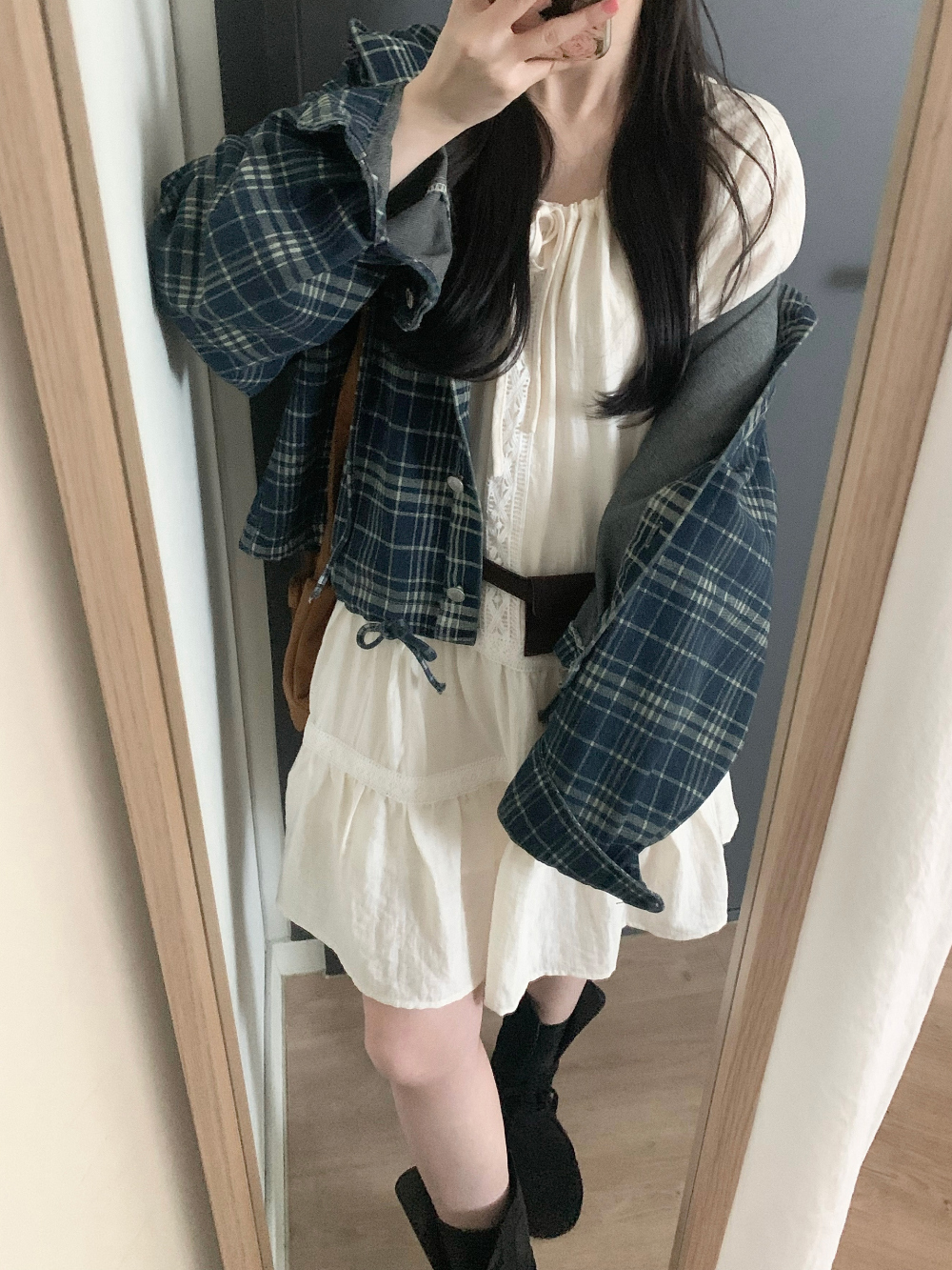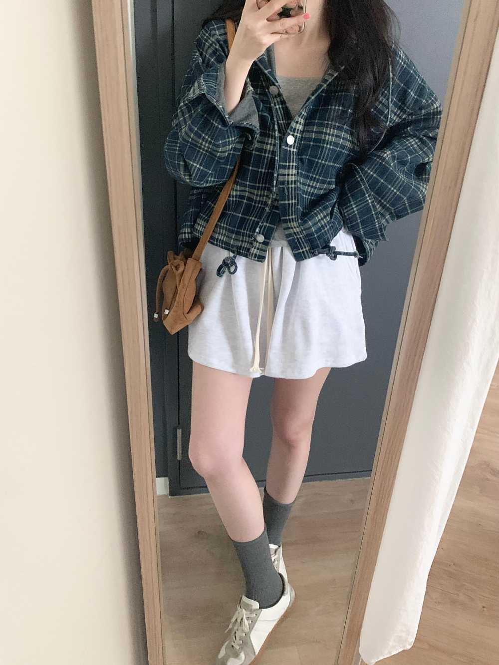韩版复古苏格兰格纹连帽牛仔外套女秋季新款抽绳短款上衣
