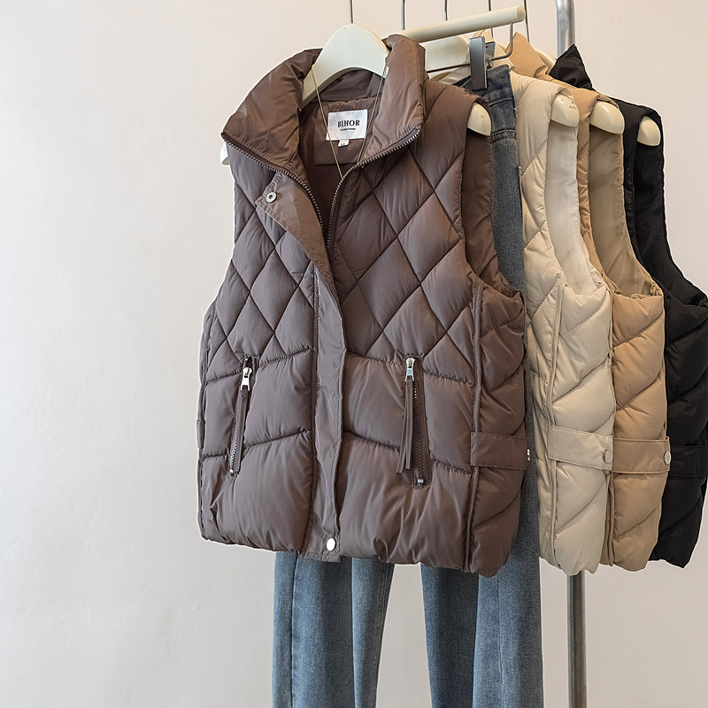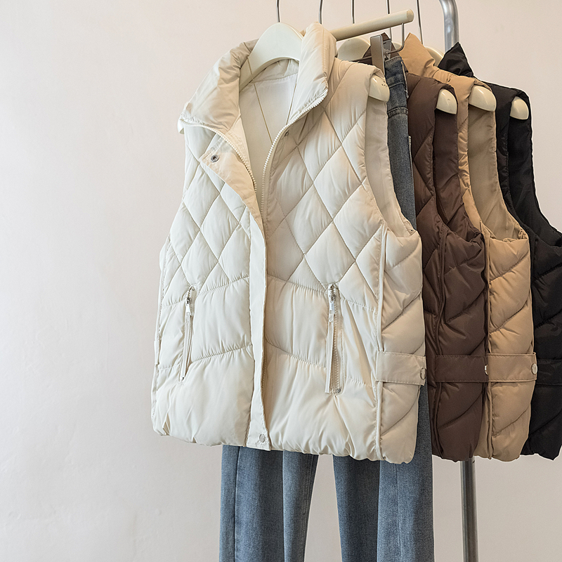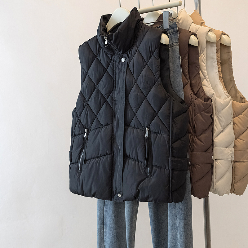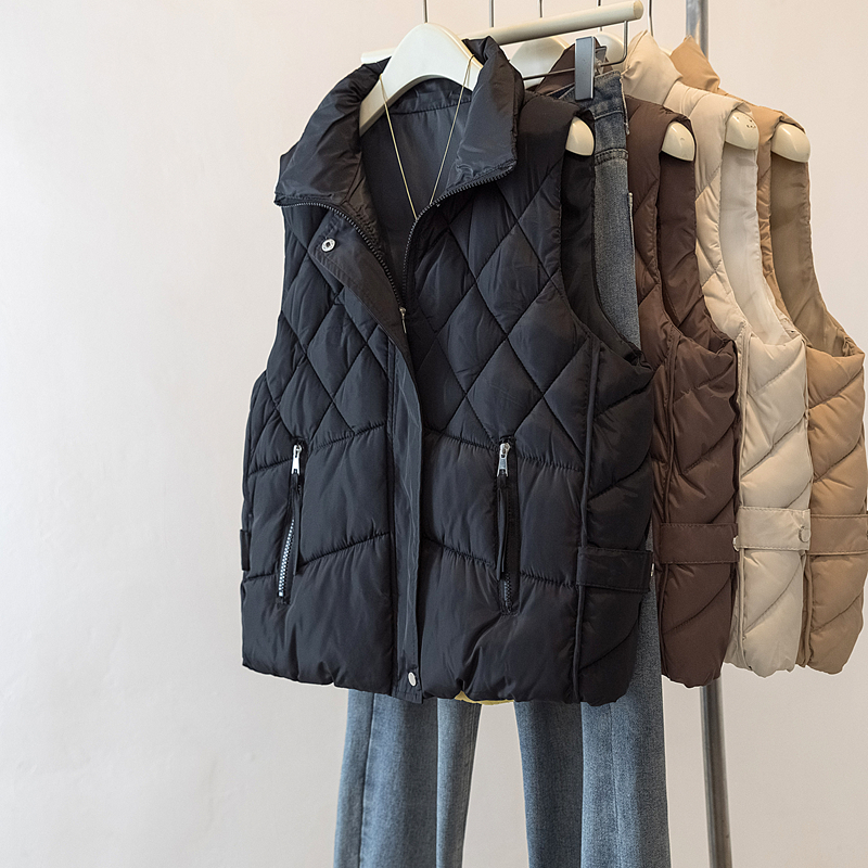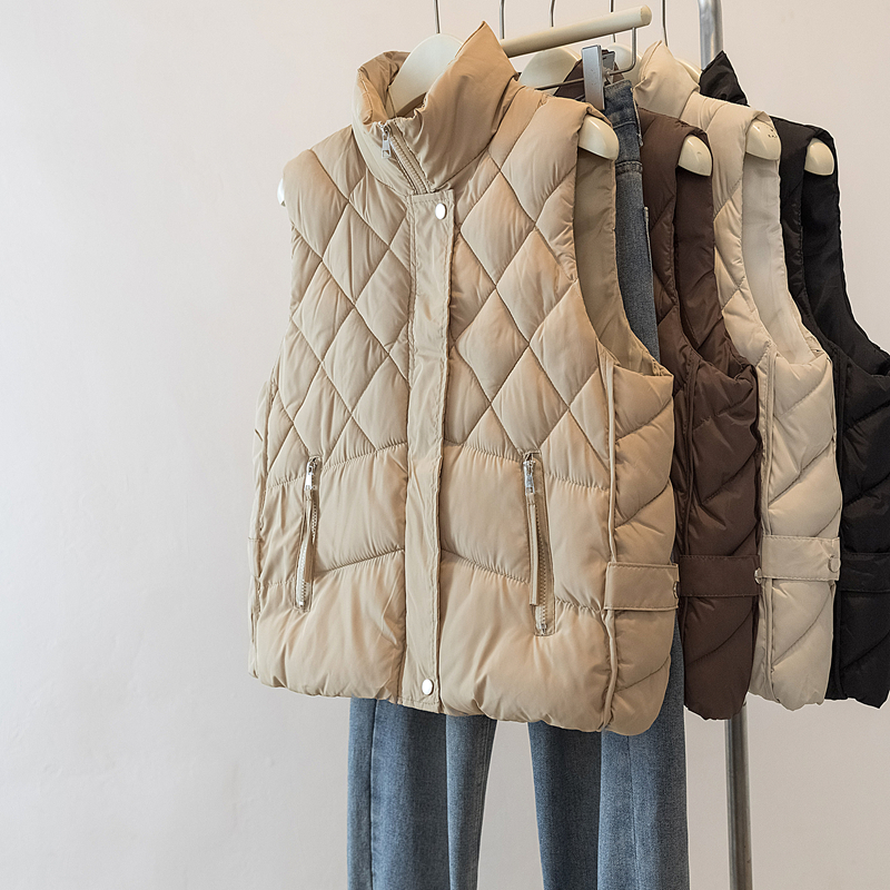 实拍时尚菱格棉马甲女秋冬新款外穿休闲百搭宽松立领背心坎肩外套
