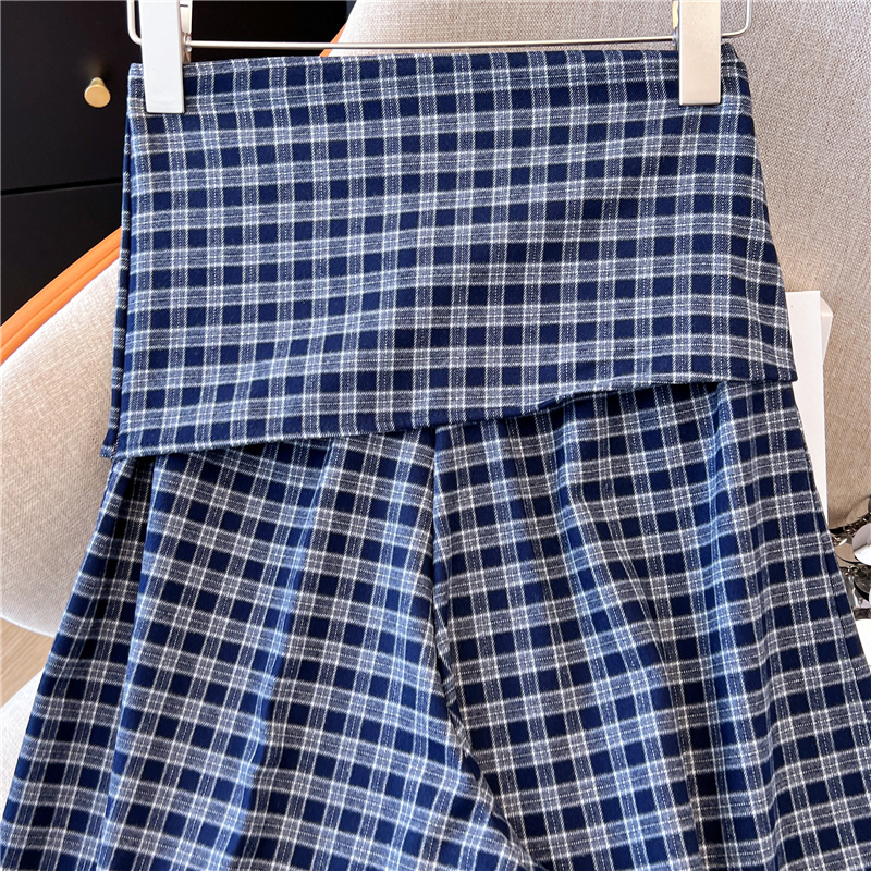 实拍~设计感格纹绑带阔腿裤女秋季新款高腰垂坠感直筒休闲裤