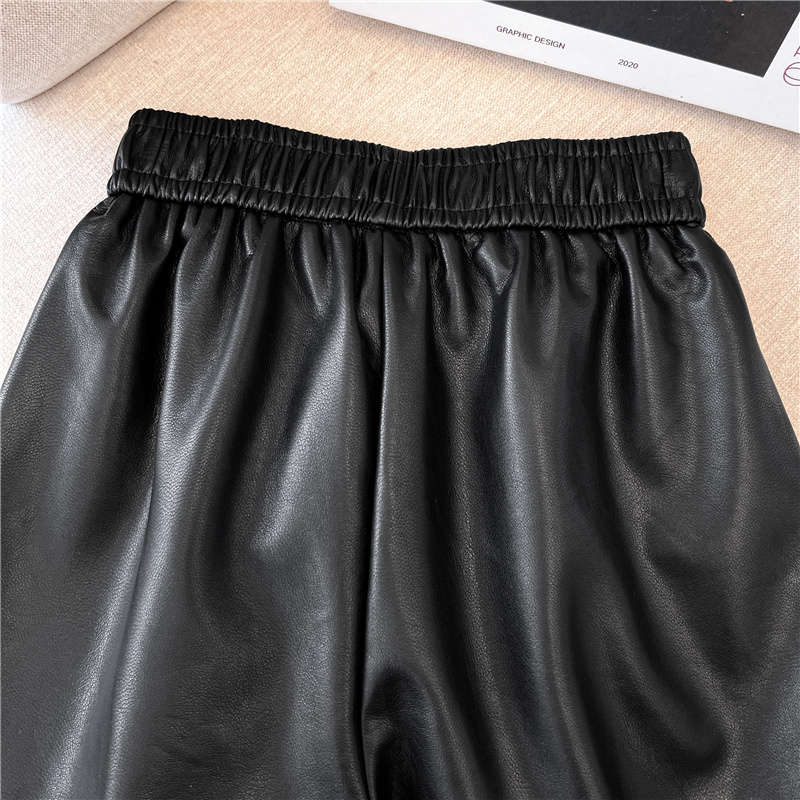 实拍~镂空设计PU皮短裤女2025秋新款松紧腰百搭显瘦A字阔腿短裤