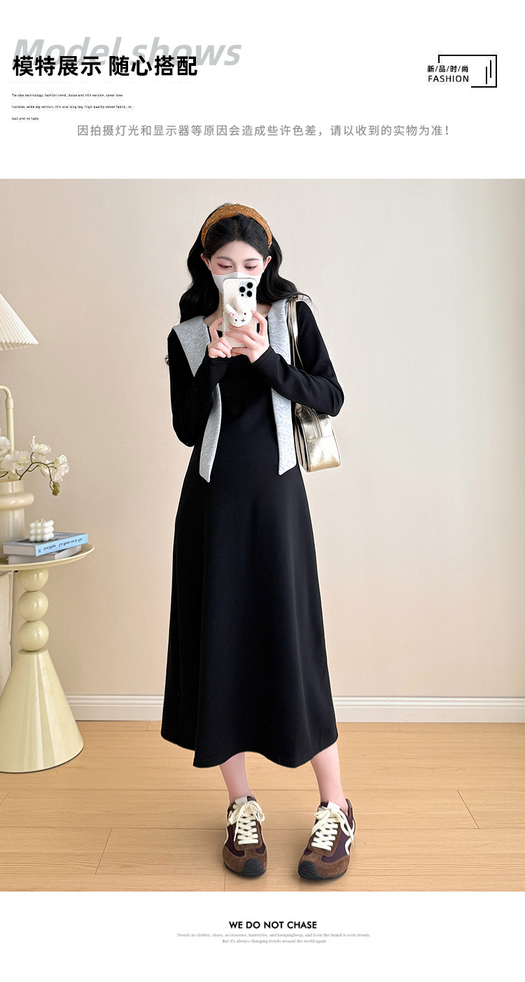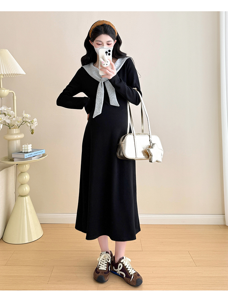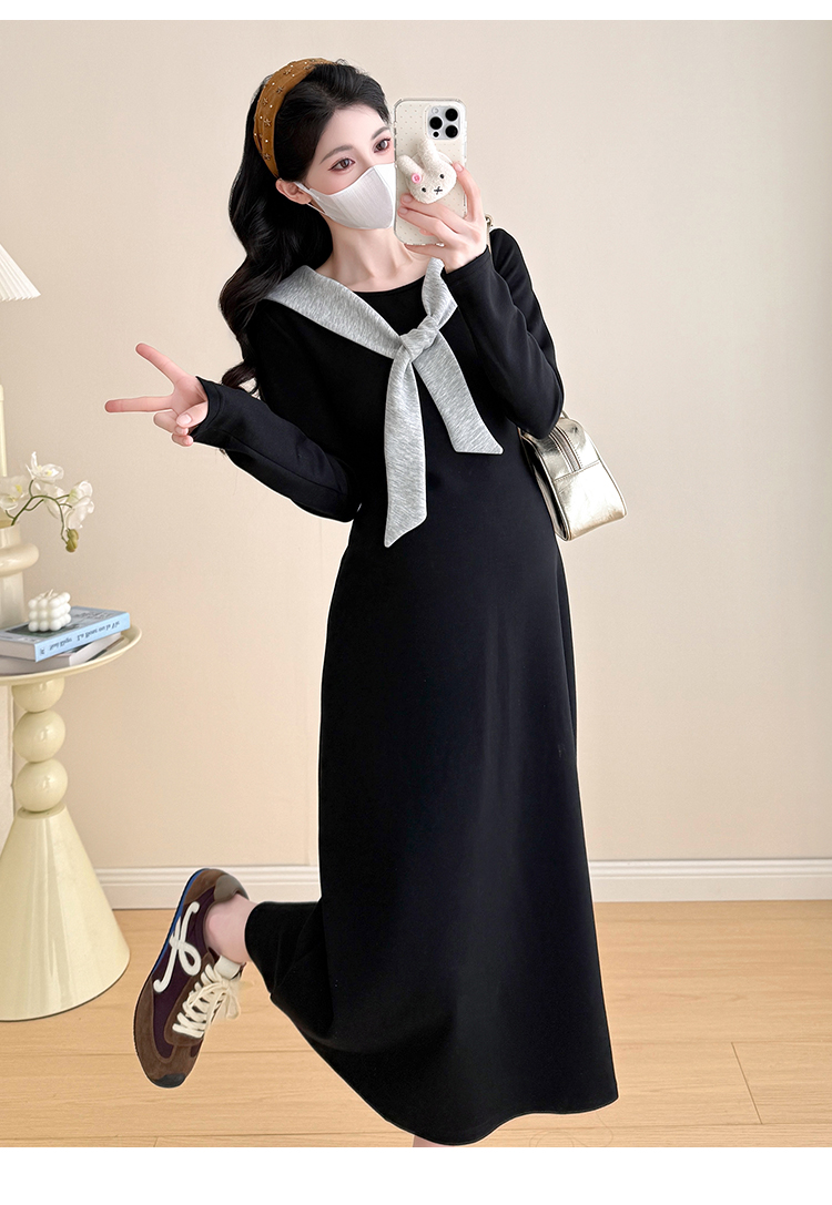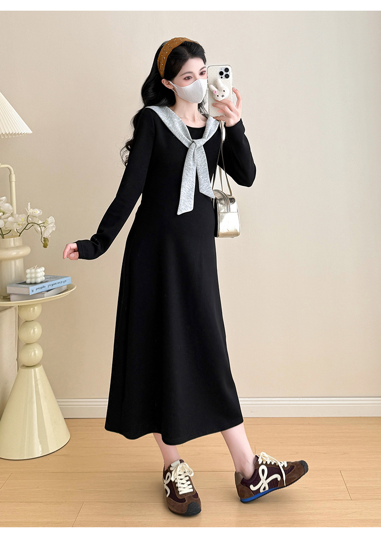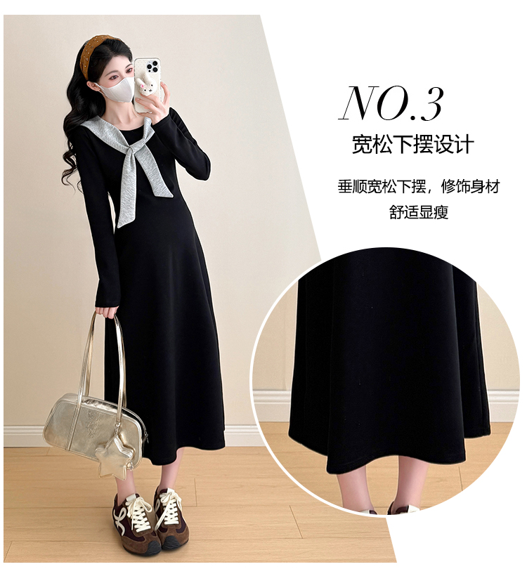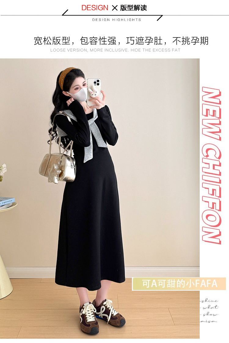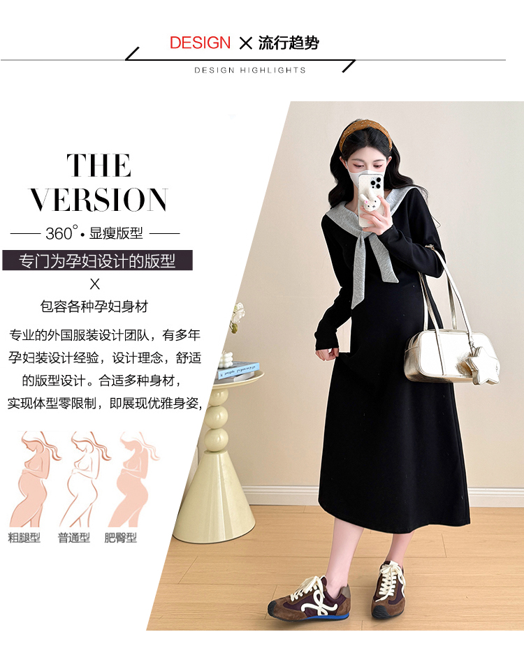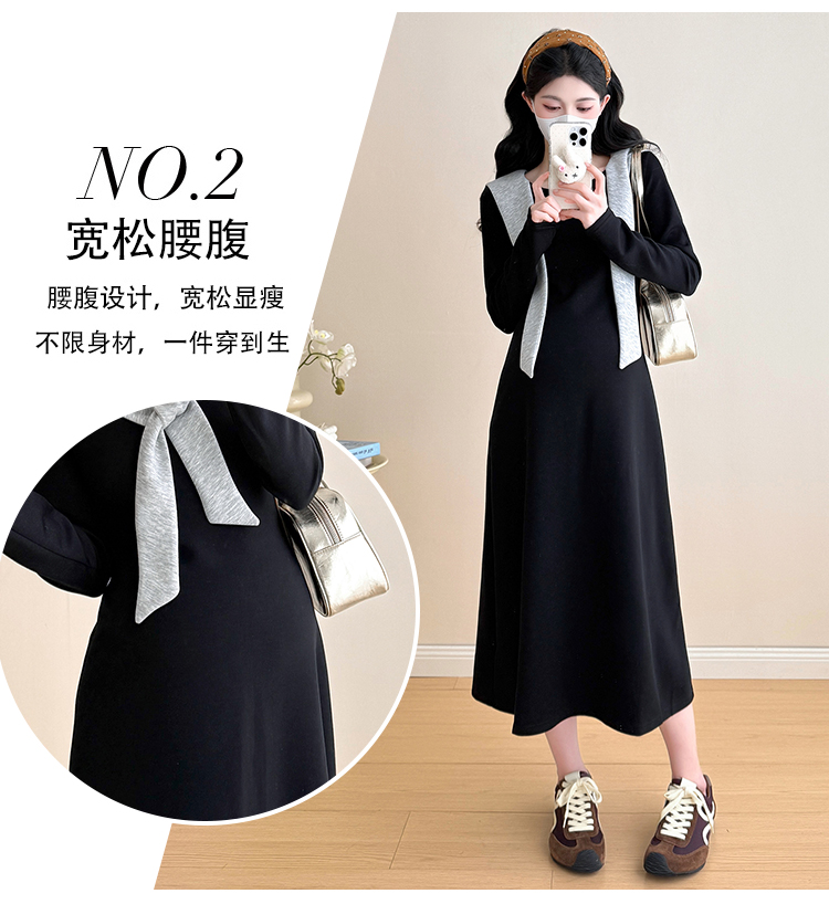 实拍2025秋季新品潮妈气质长袖撞色假两件披肩针织孕妇连衣裙6235