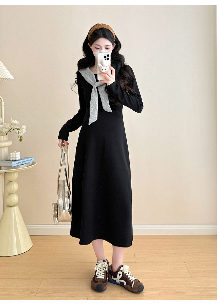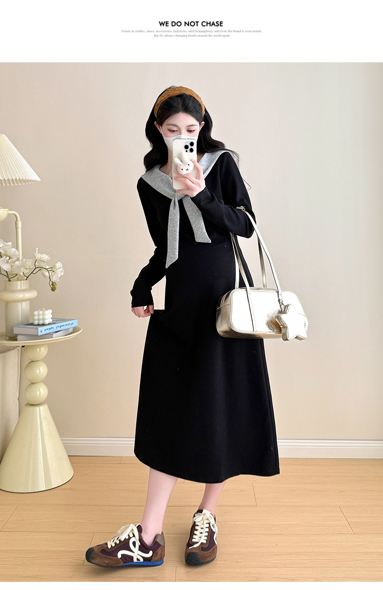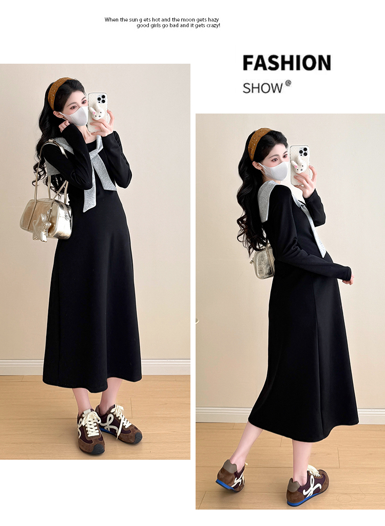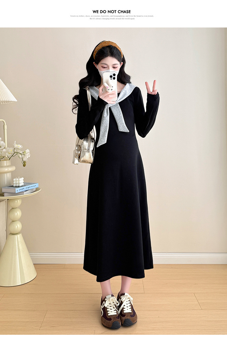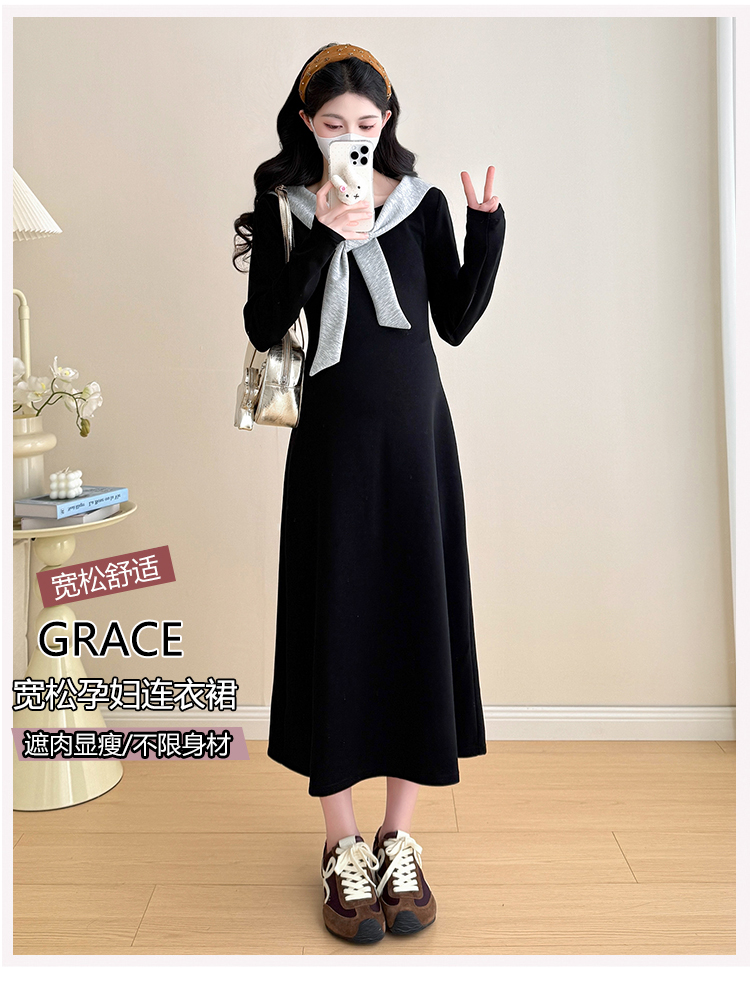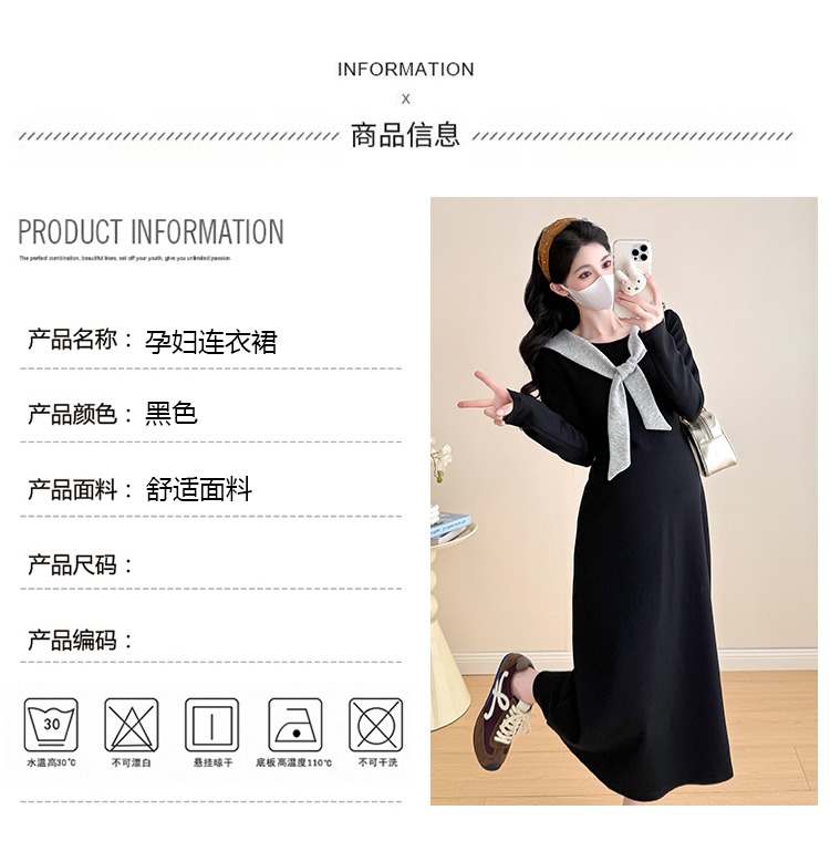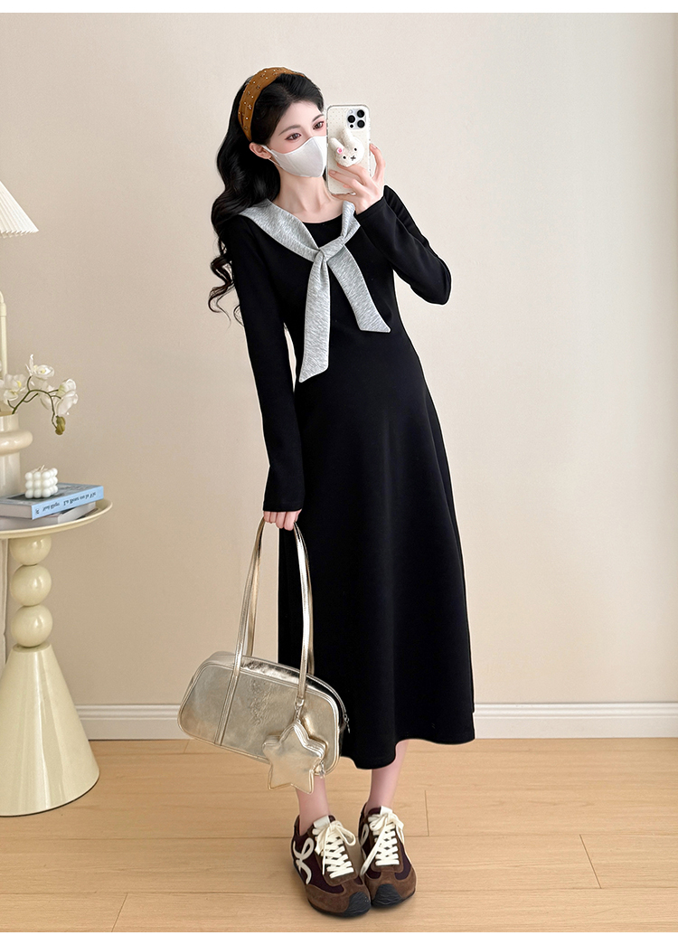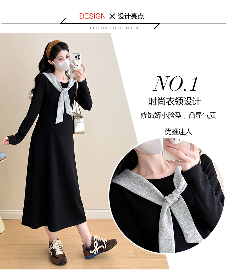 实拍2025秋季新品潮妈气质长袖撞色假两件披肩针织孕妇连衣裙6235