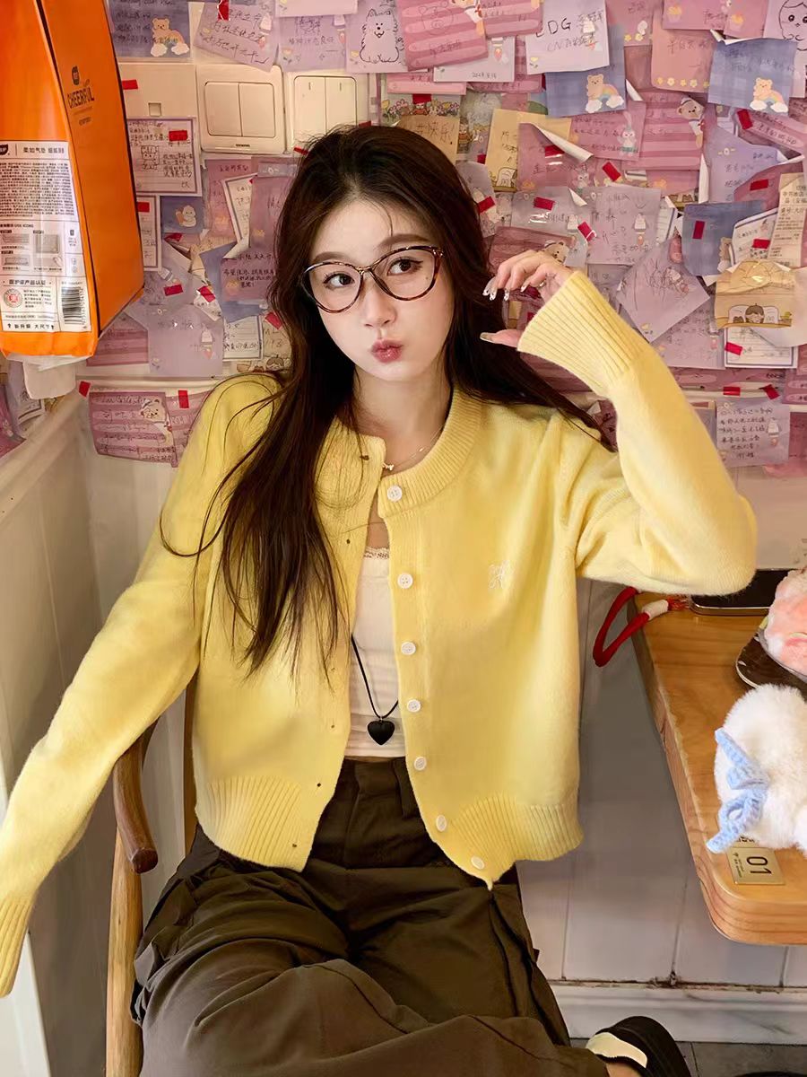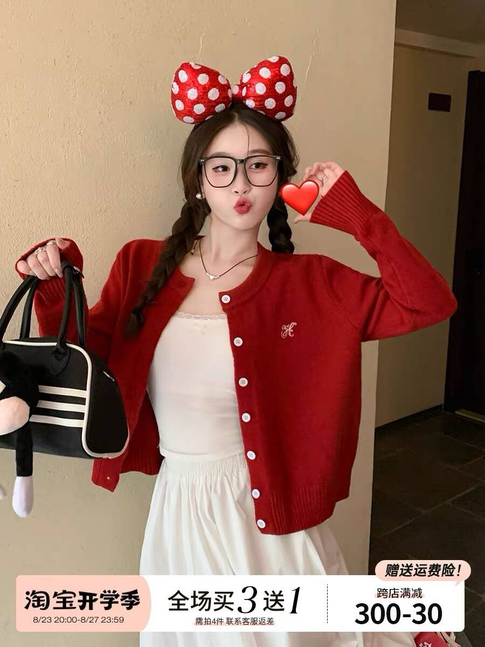 苏三三 红色毛衣开衫外搭高级感2025新款春秋刺绣针织外套上衣