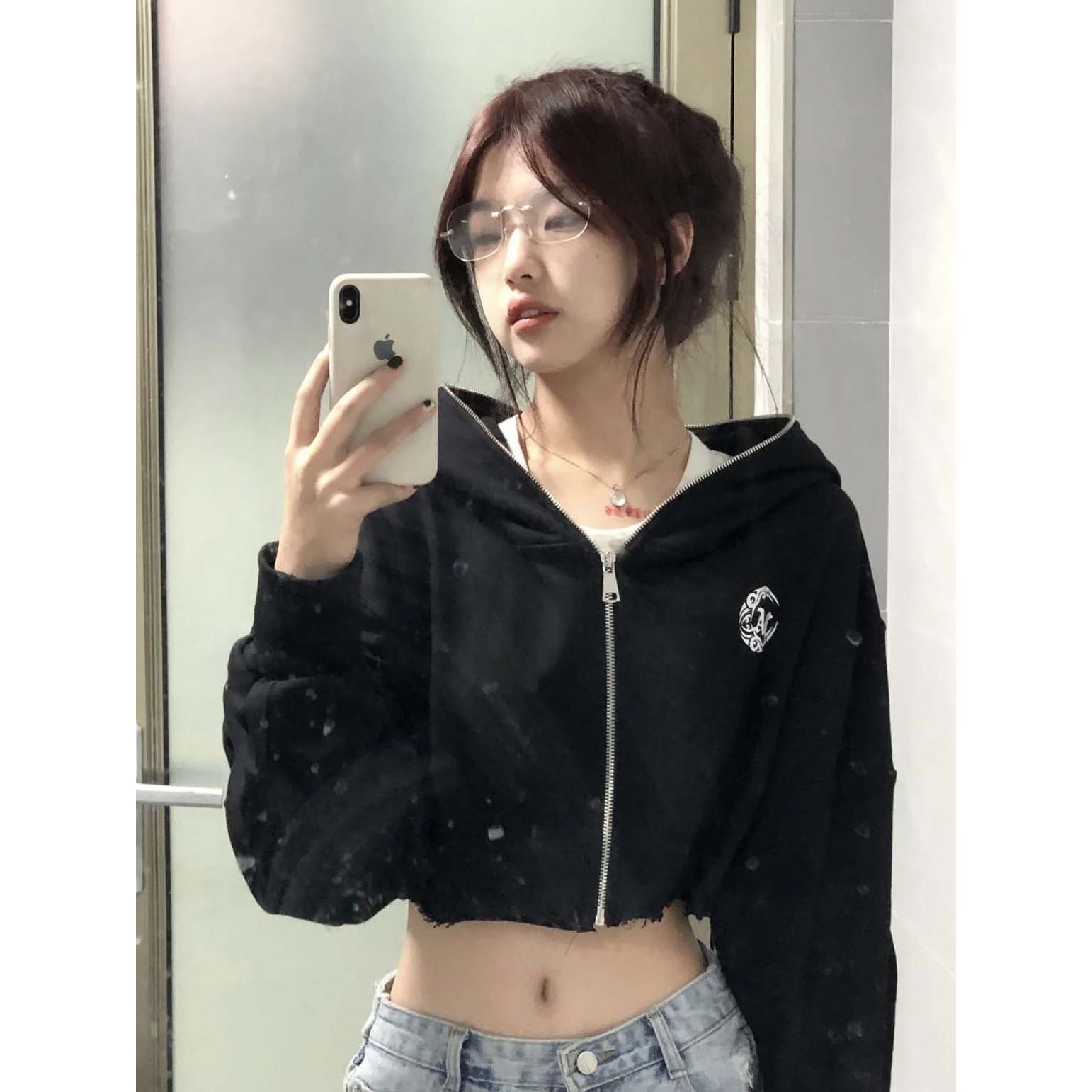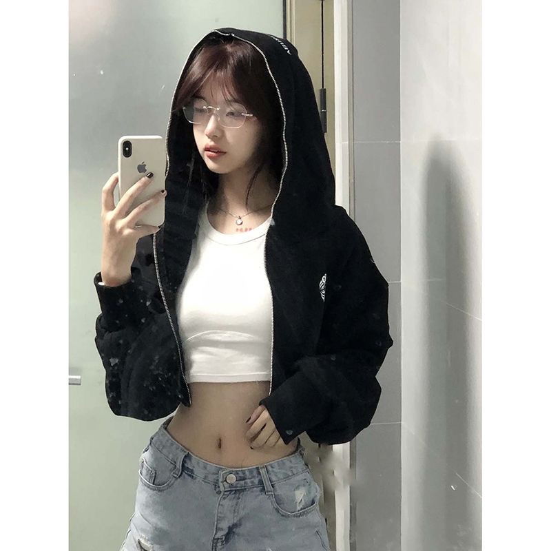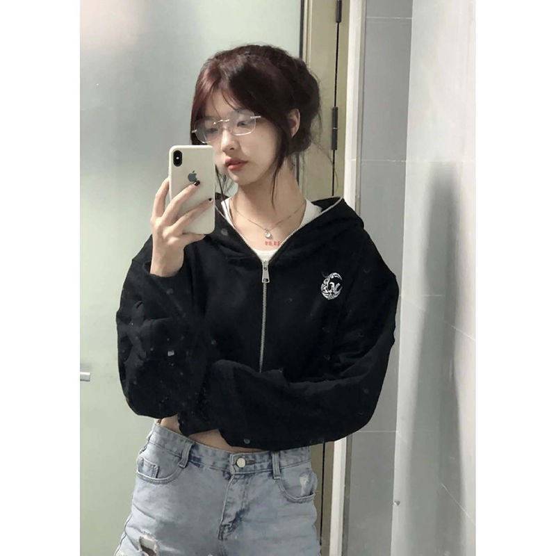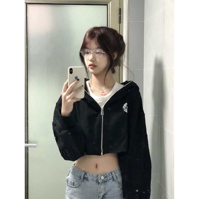 已出货美式一字领斜肩卫衣女辣妹灰色短款韩系