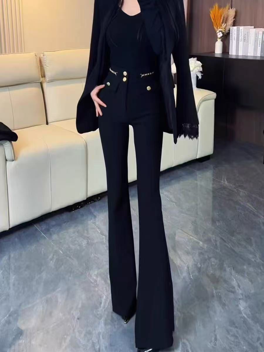 喇叭裤女新款高腰修身显瘦西装微喇裤马蹄拖地裤弹力提臀垂感女裤