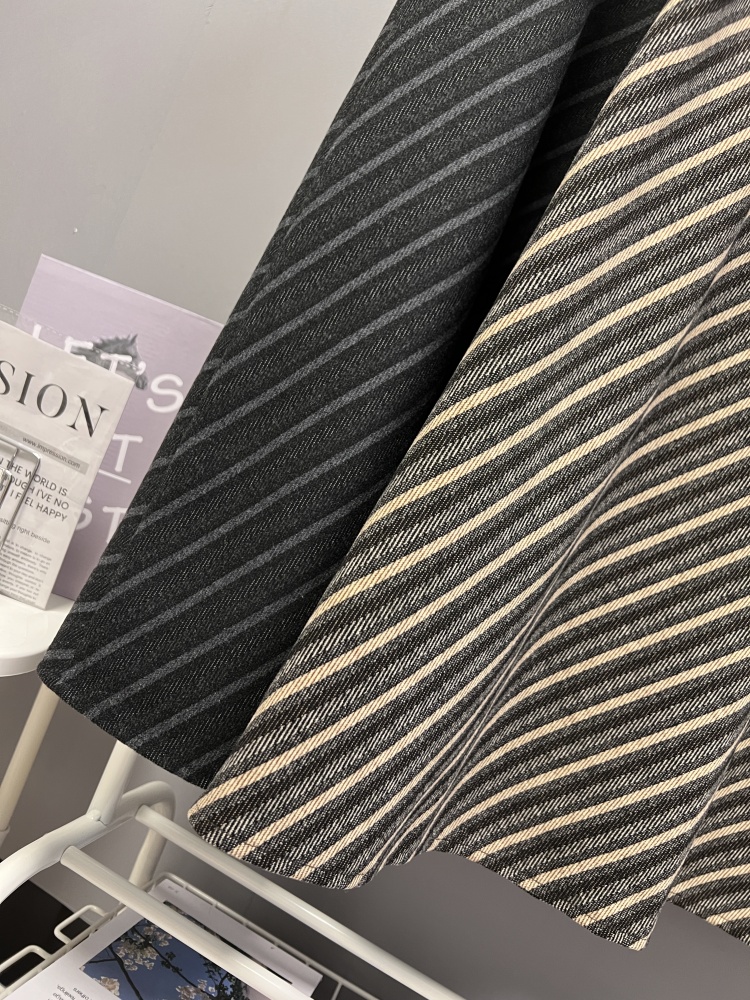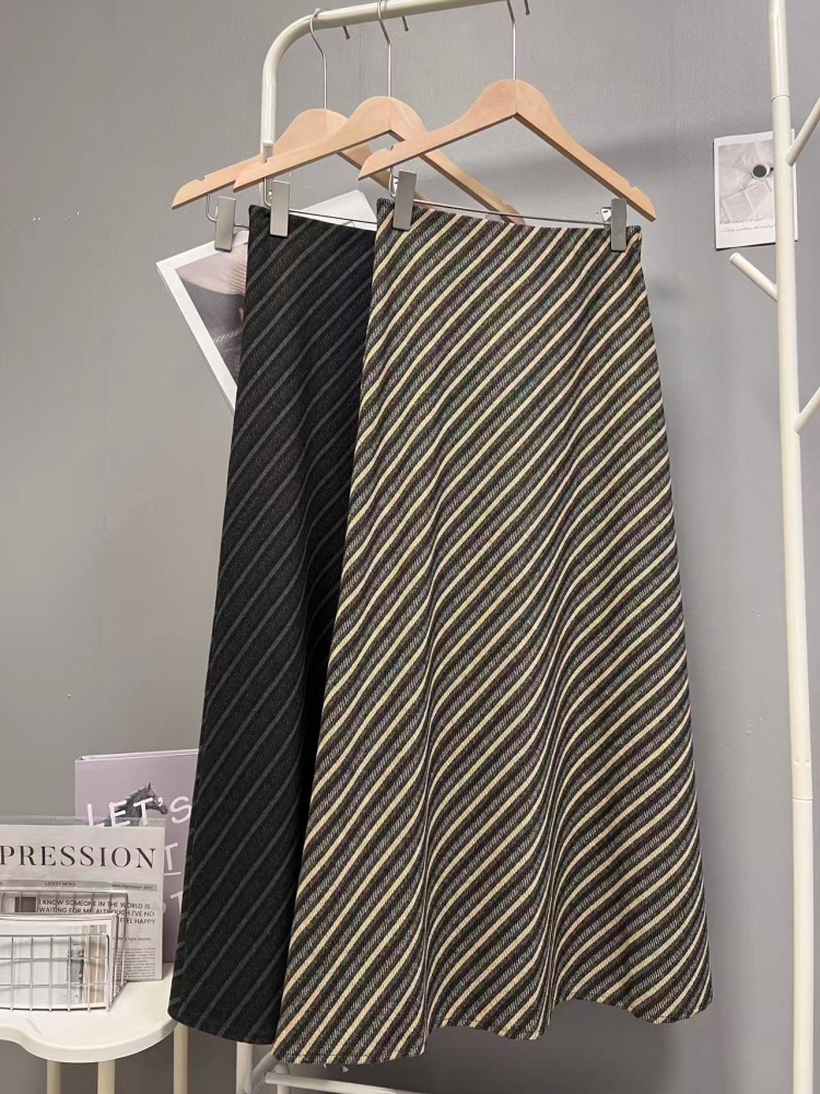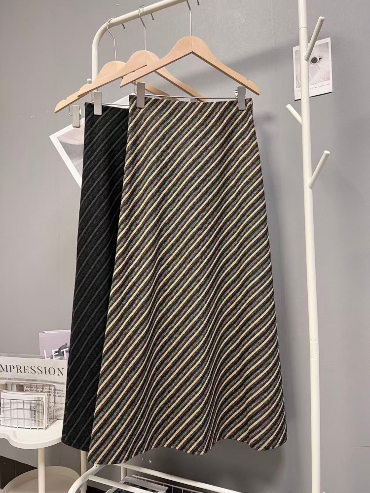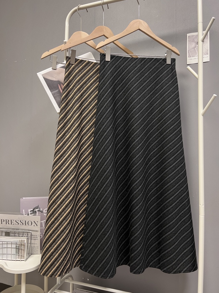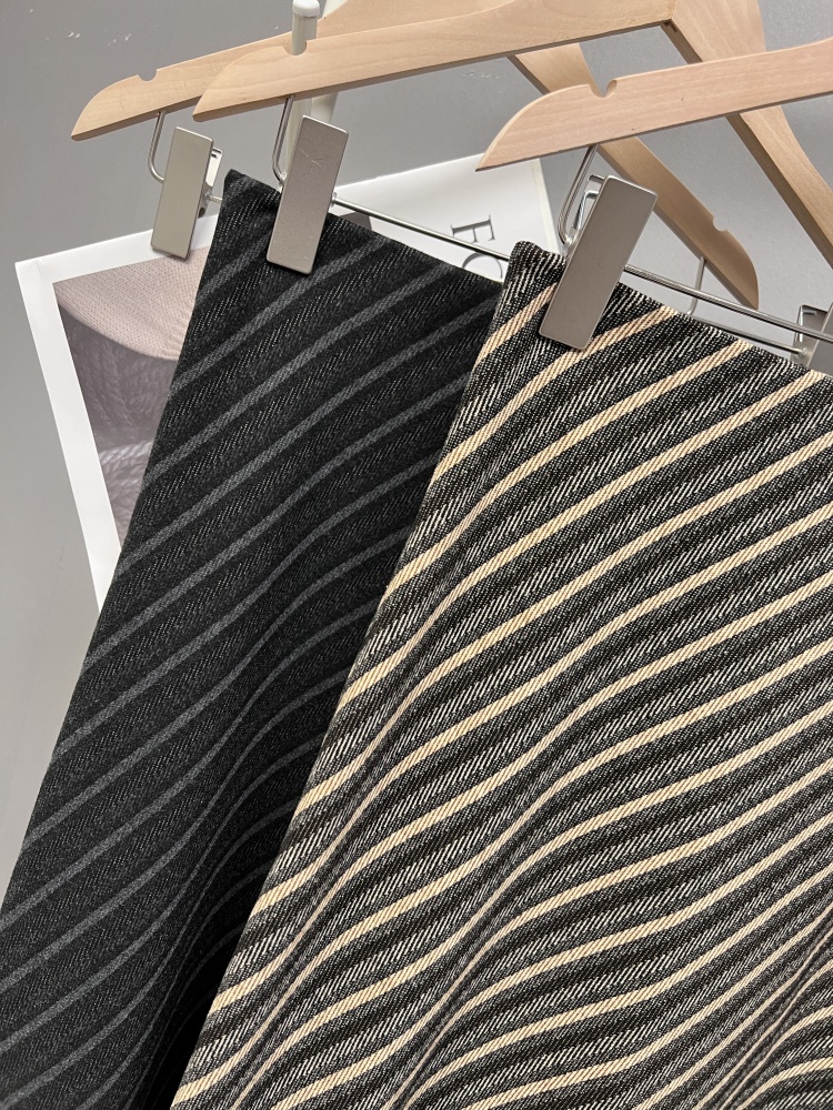 实拍秋冬新款斜条纹撞色半身裙时尚设计感韩版百搭松紧腰a字长裙