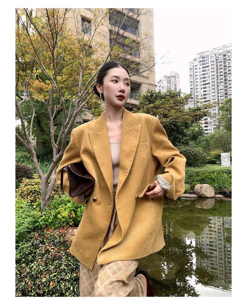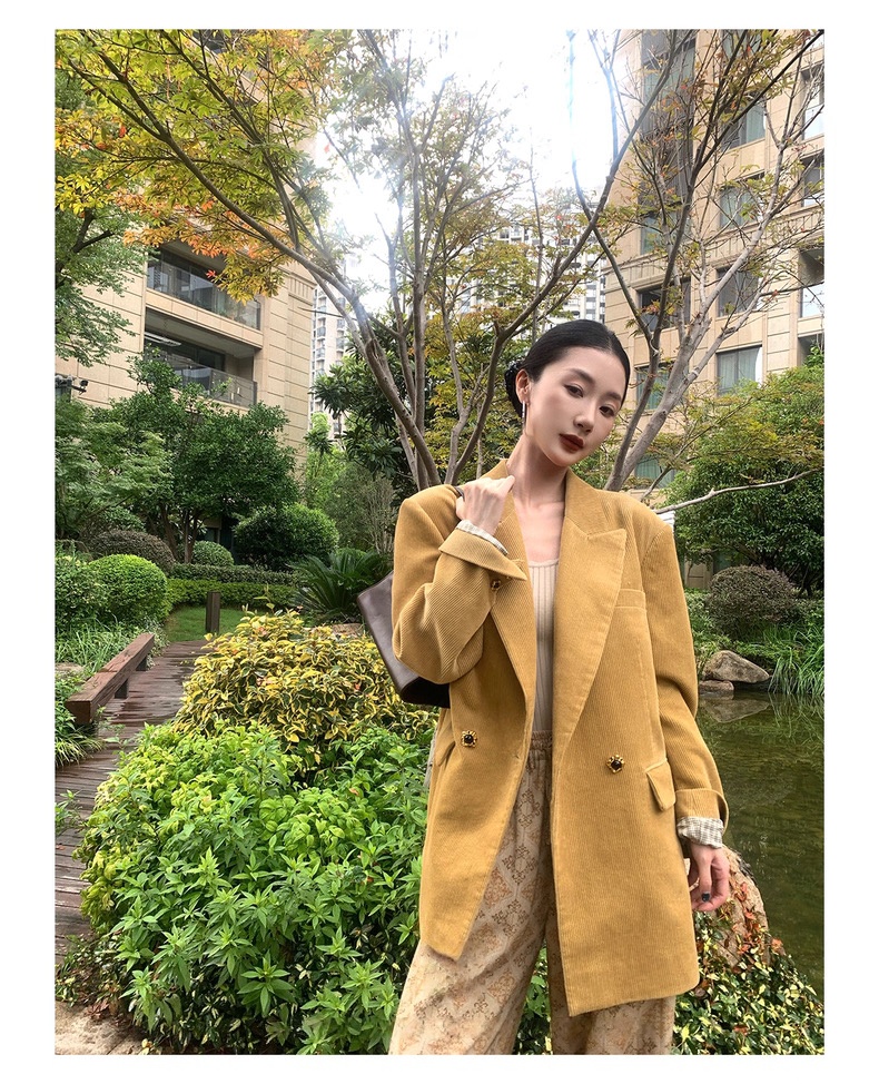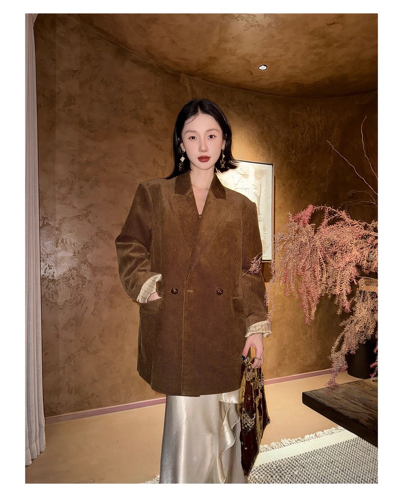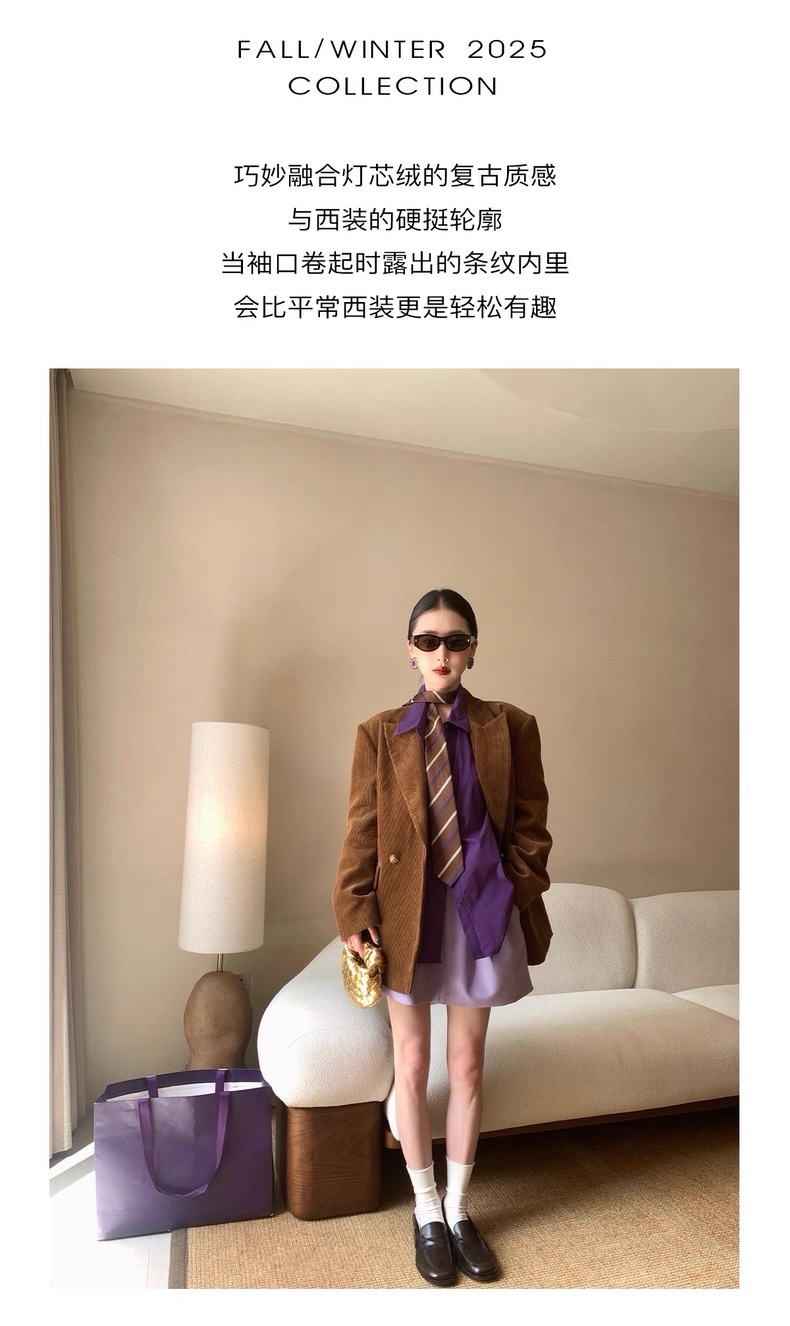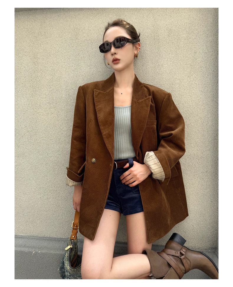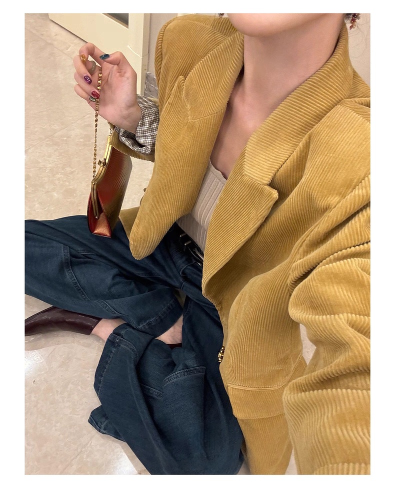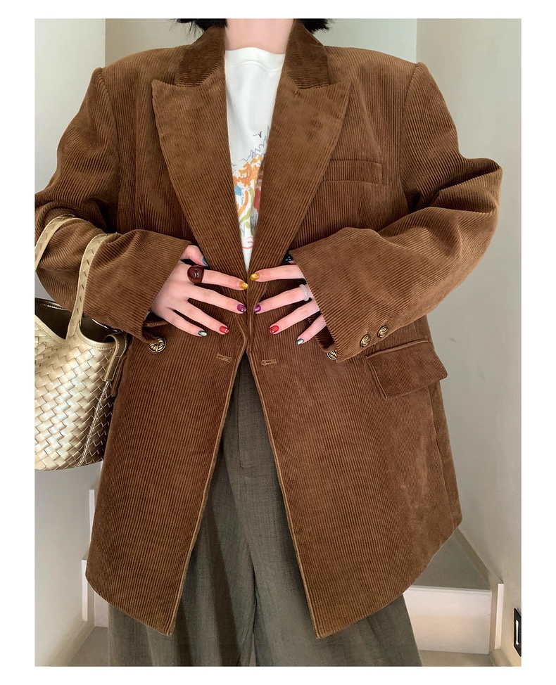复古灯芯绒西装显瘦女枪驳领休闲上衣2025秋冬新品高级感气质外套