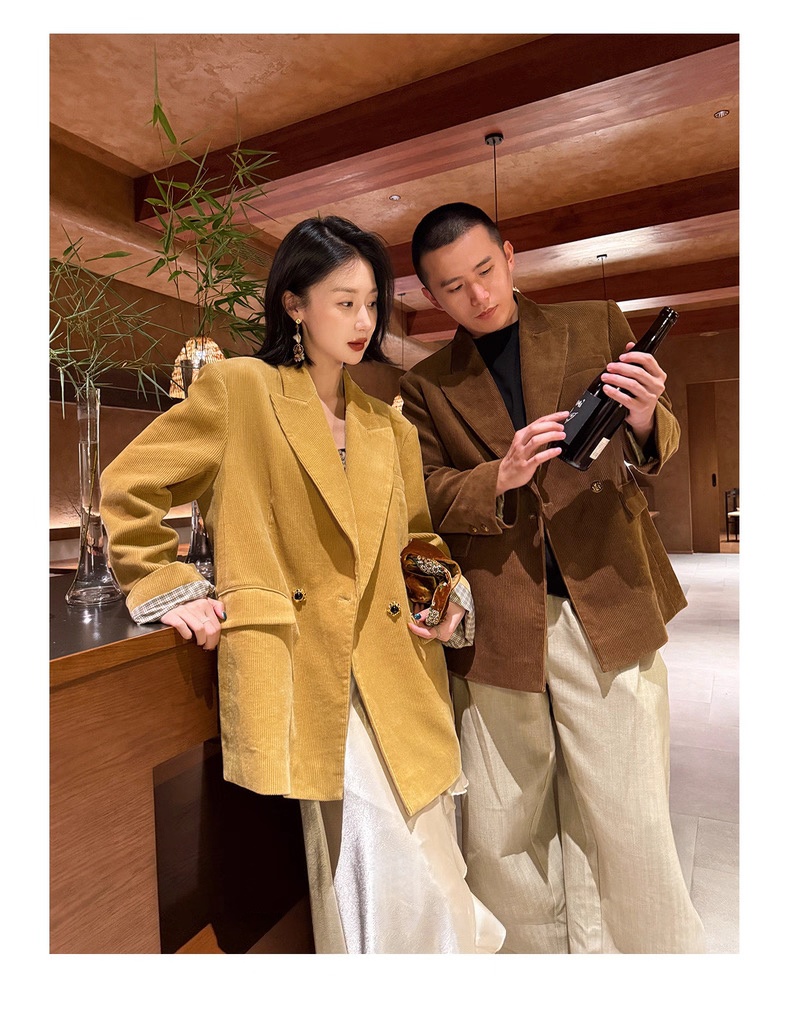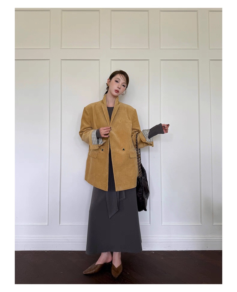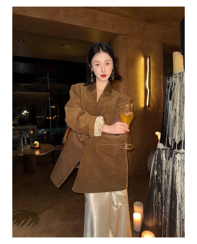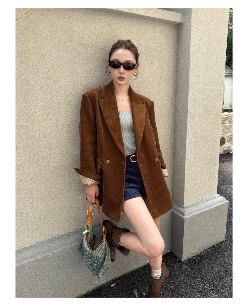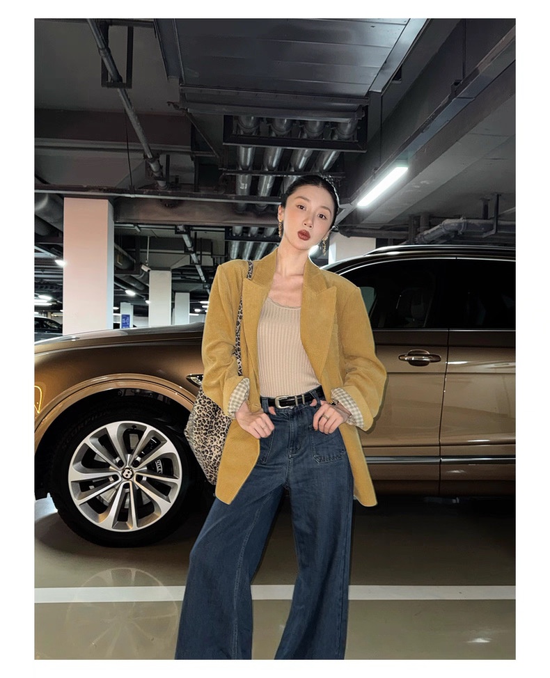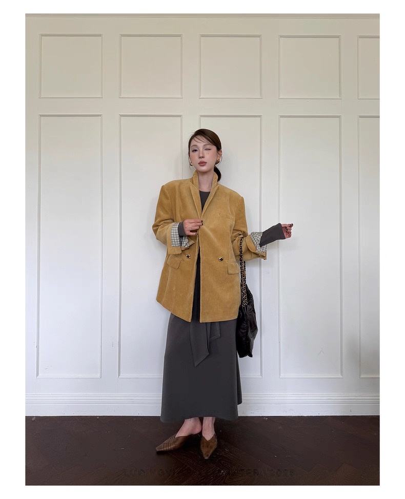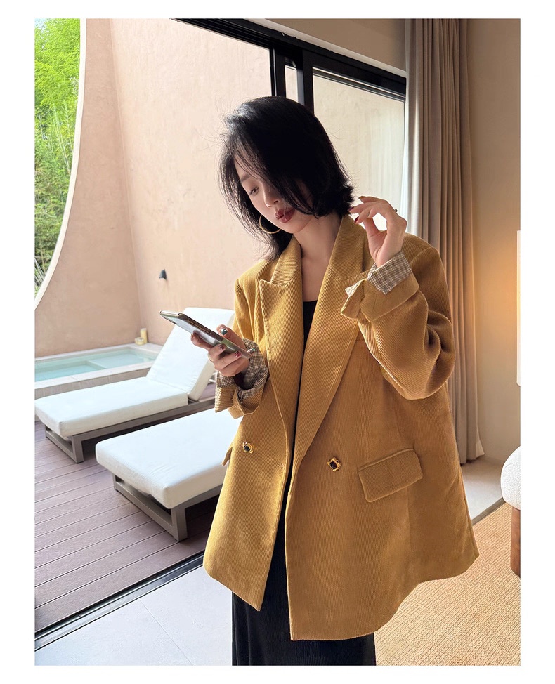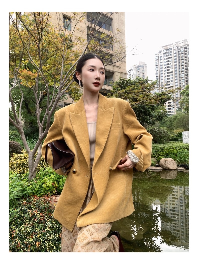 复古灯芯绒西装显瘦女枪驳领休闲上衣2025秋冬新品高级感气质外套