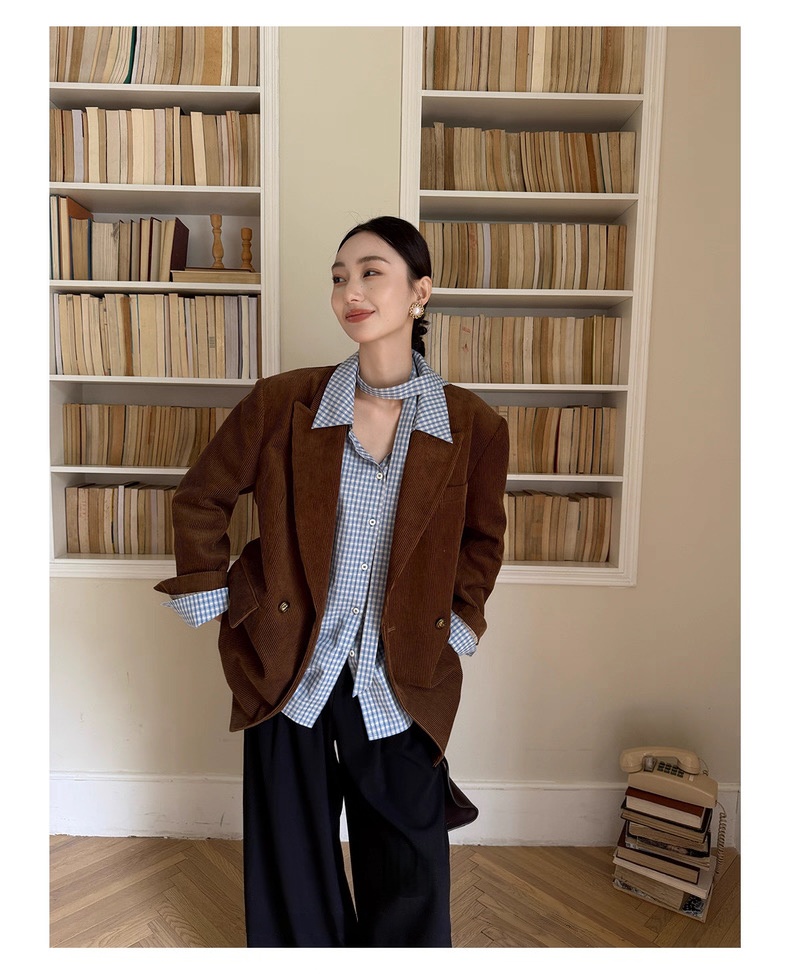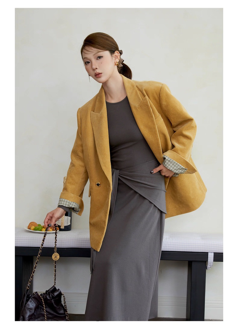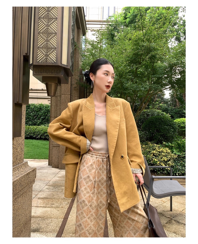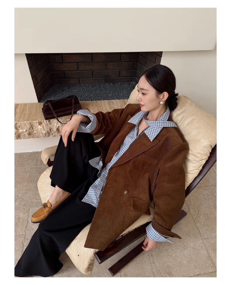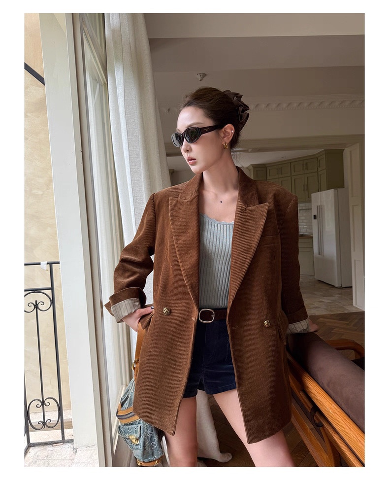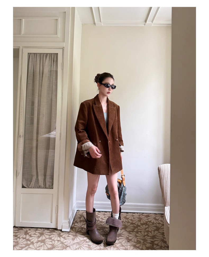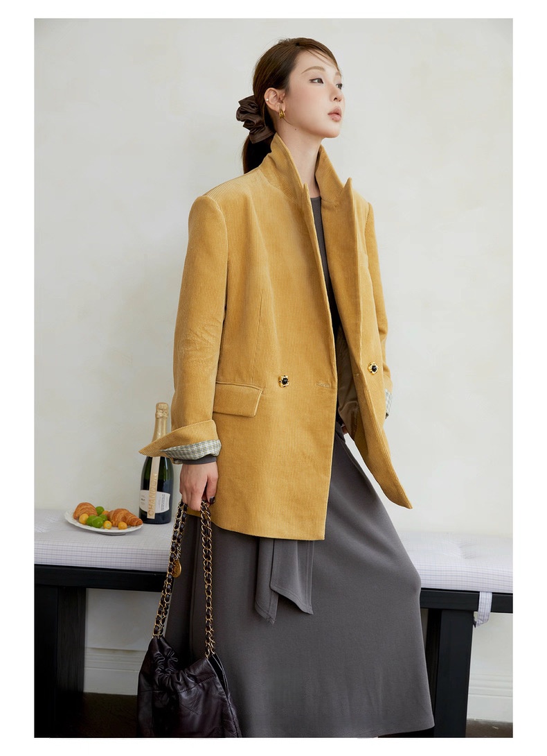 复古灯芯绒西装显瘦女枪驳领休闲上衣2025秋冬新品高级感气质外套