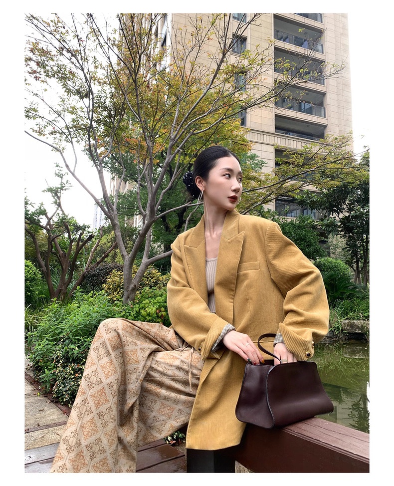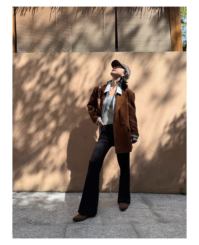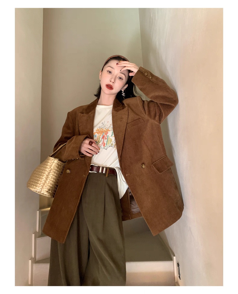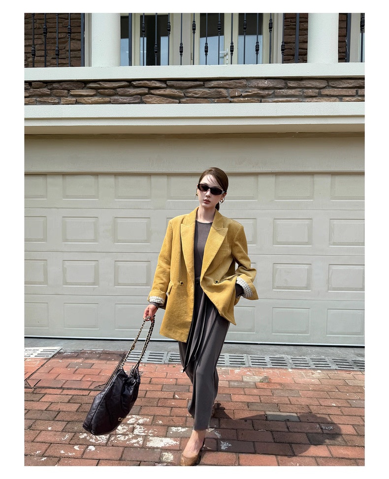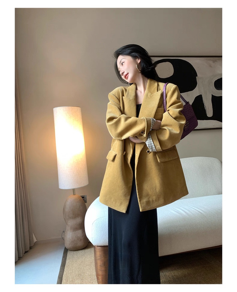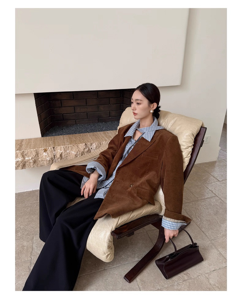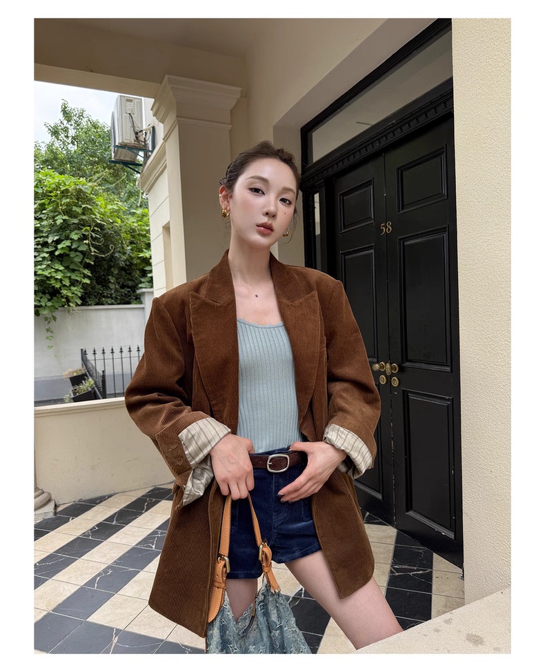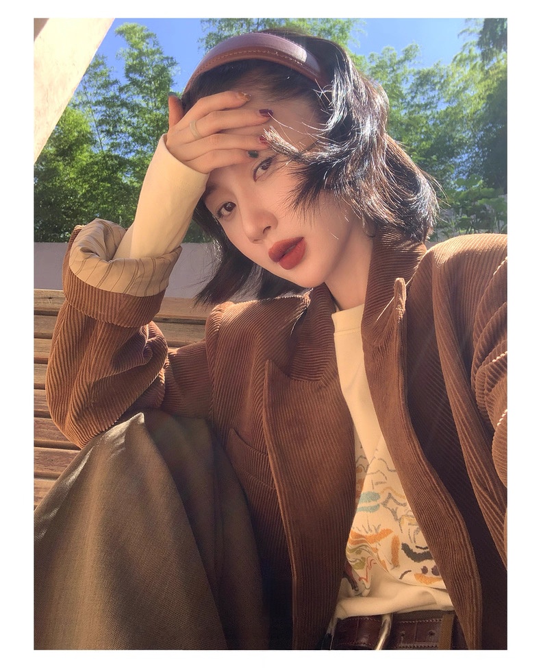 复古灯芯绒西装显瘦女枪驳领休闲上衣2025秋冬新品高级感气质外套
