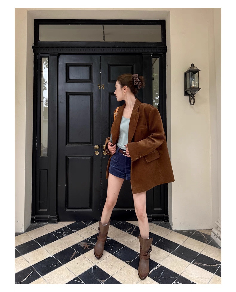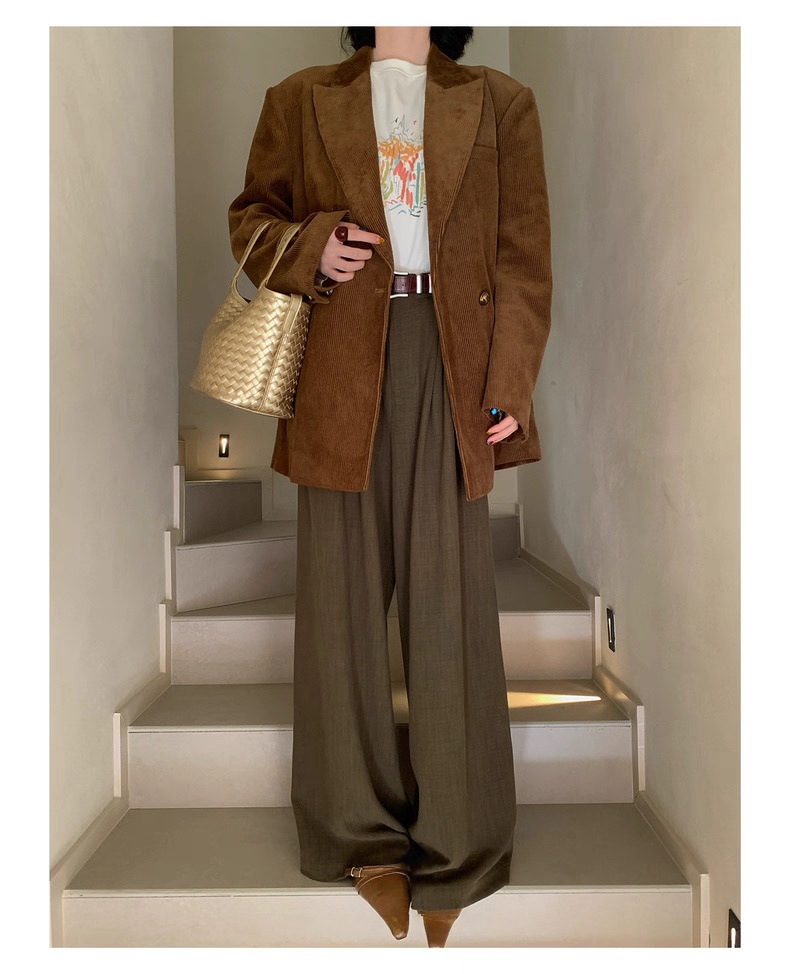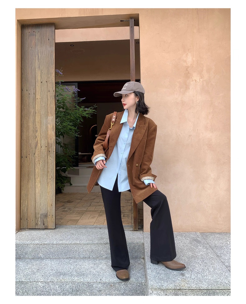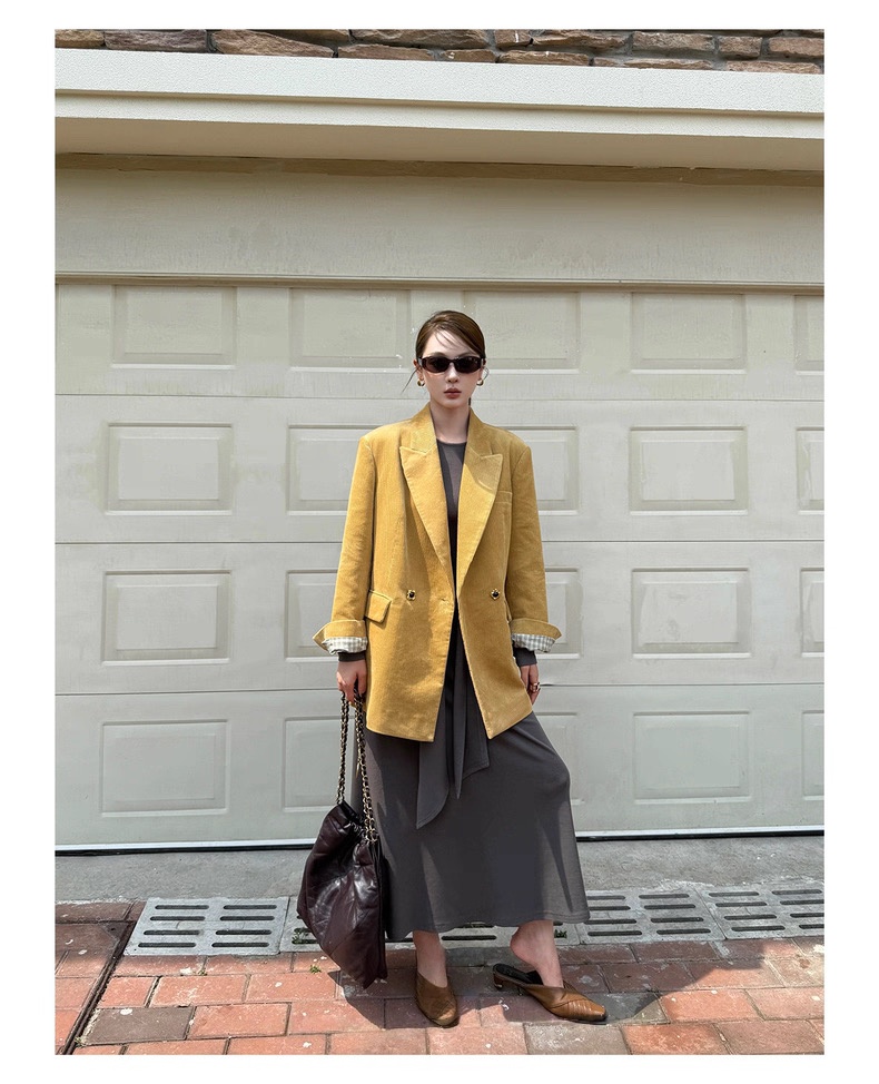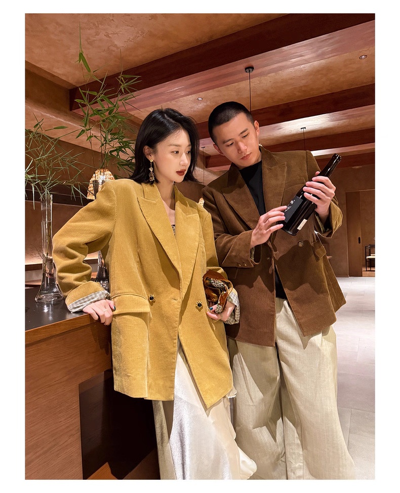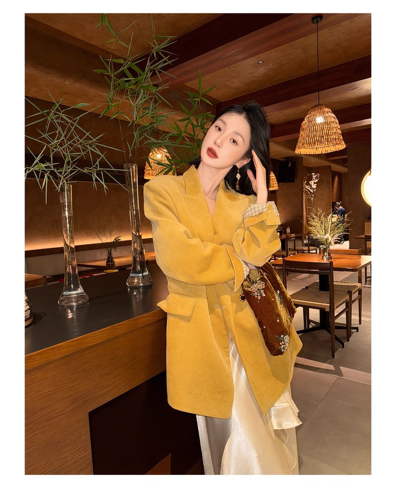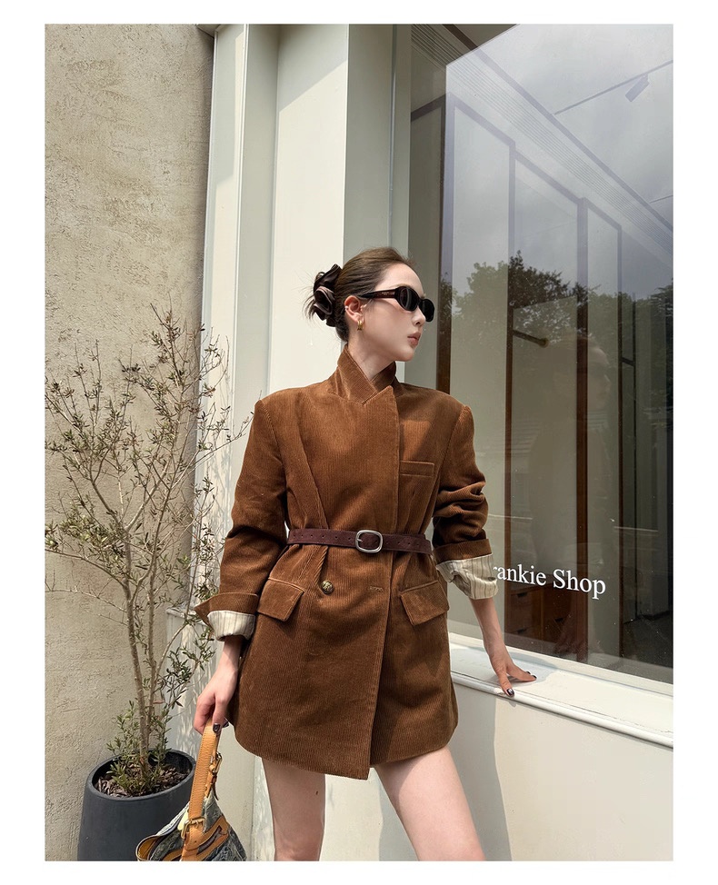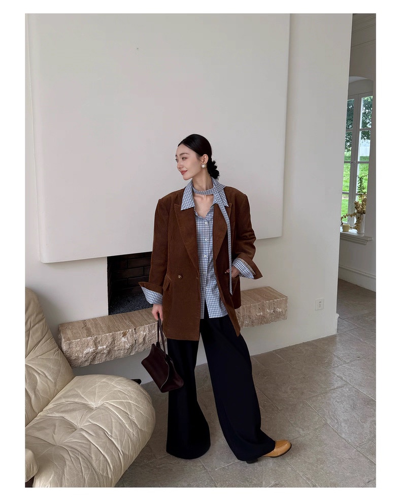 复古灯芯绒西装显瘦女枪驳领休闲上衣2025秋冬新品高级感气质外套