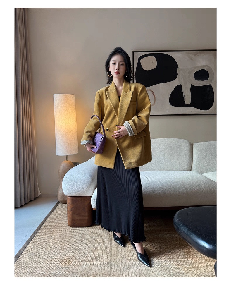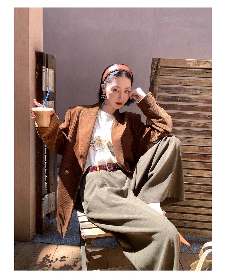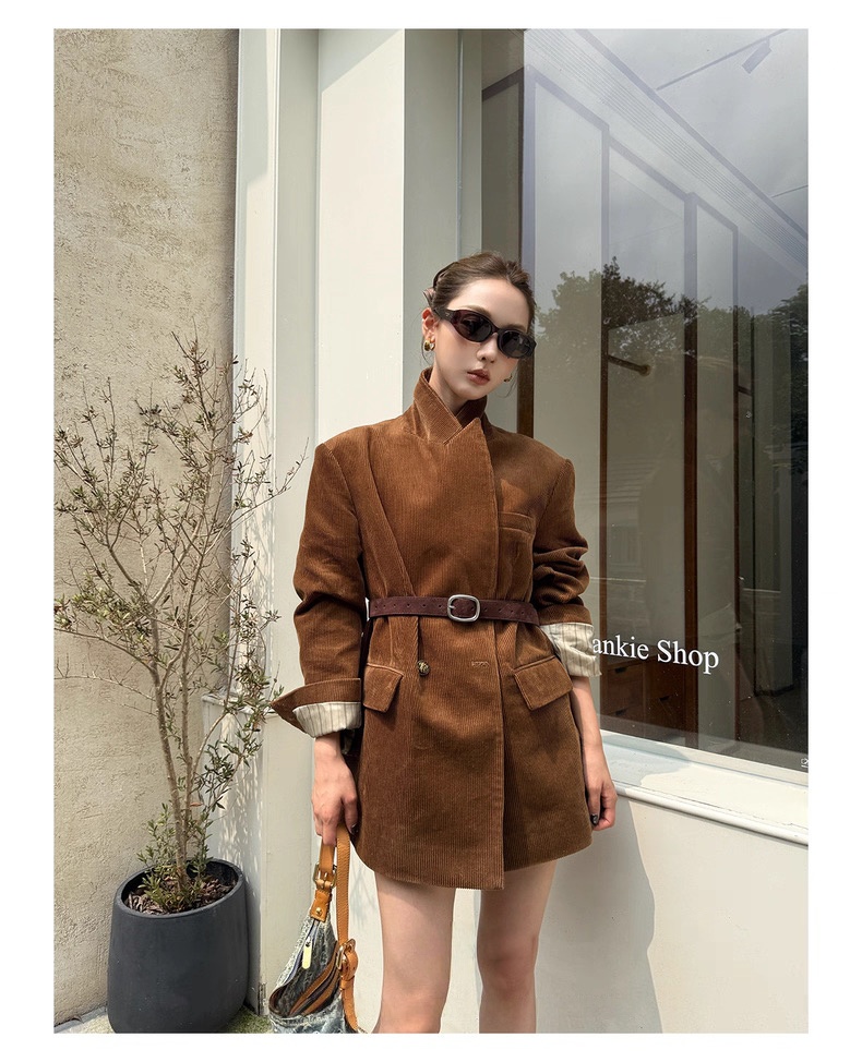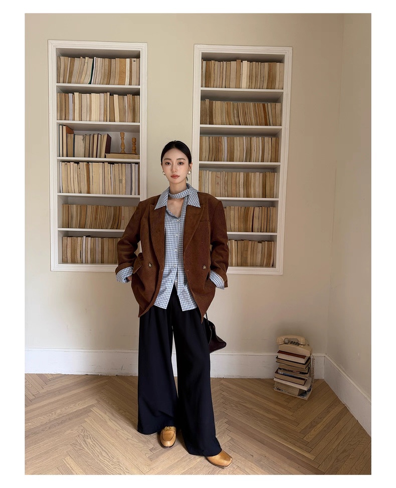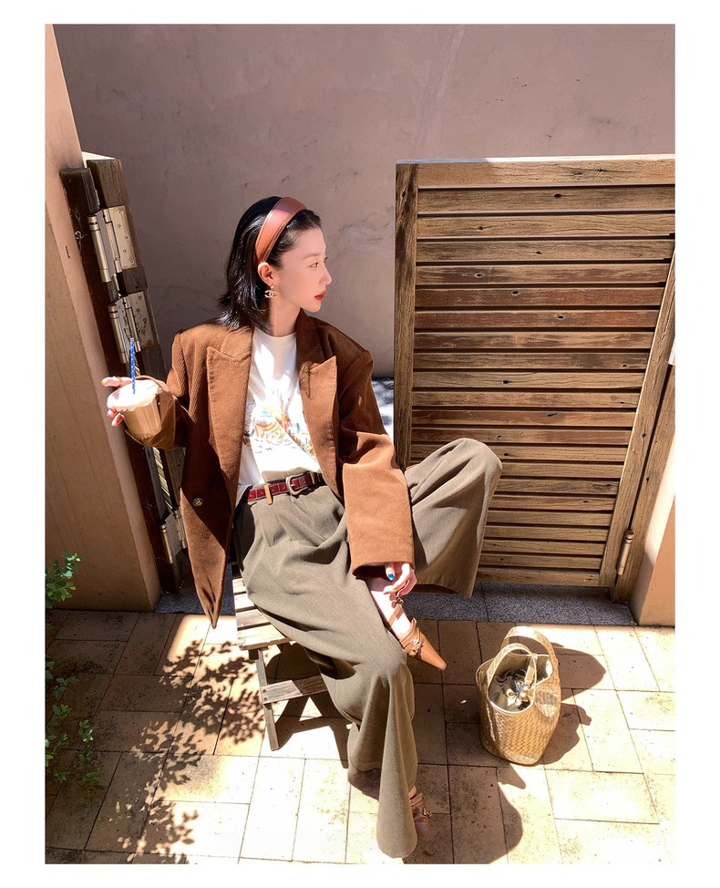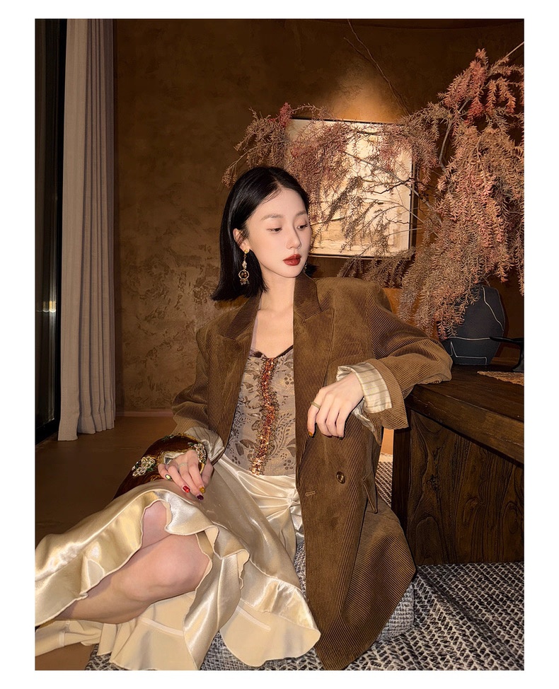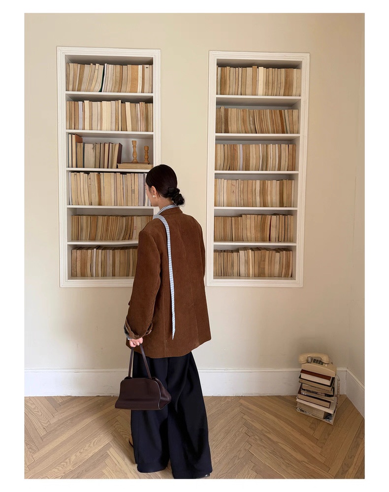 复古灯芯绒西装显瘦女枪驳领休闲上衣2025秋冬新品高级感气质外套