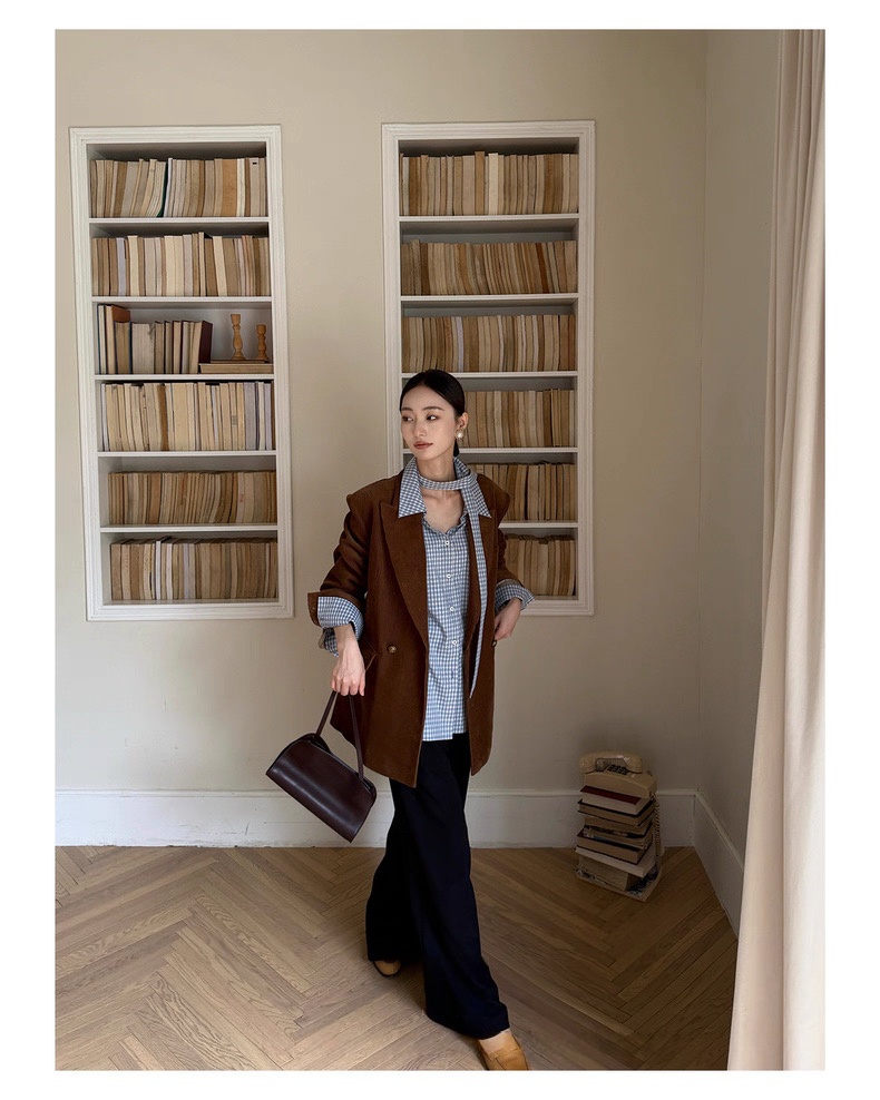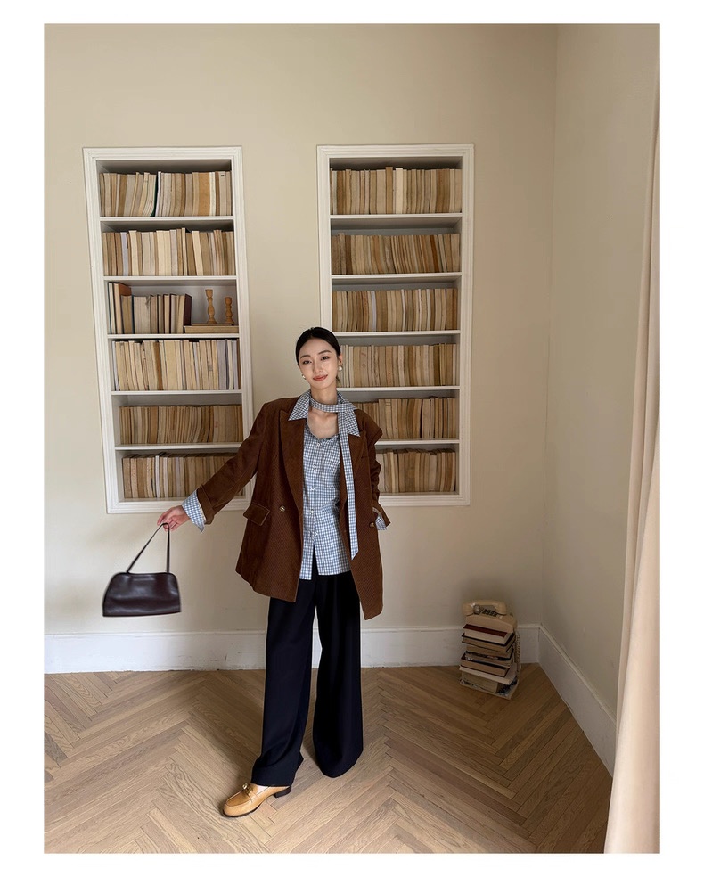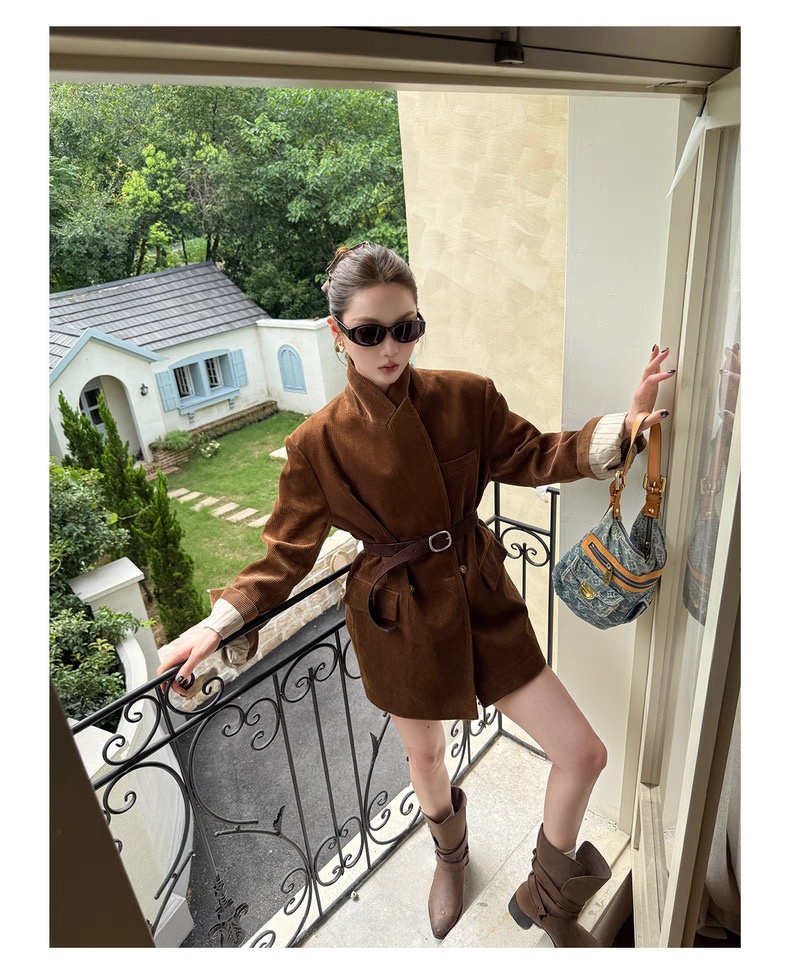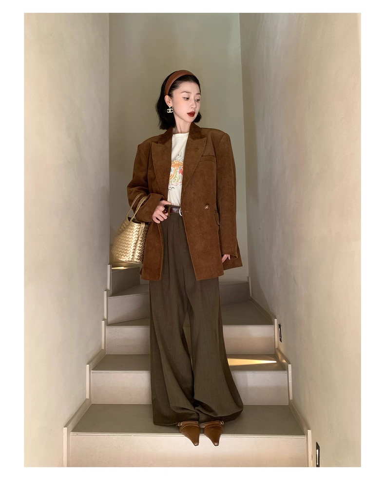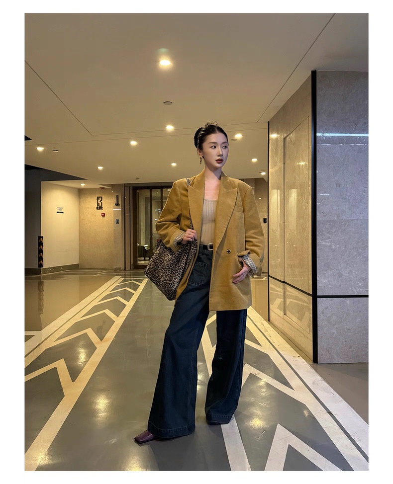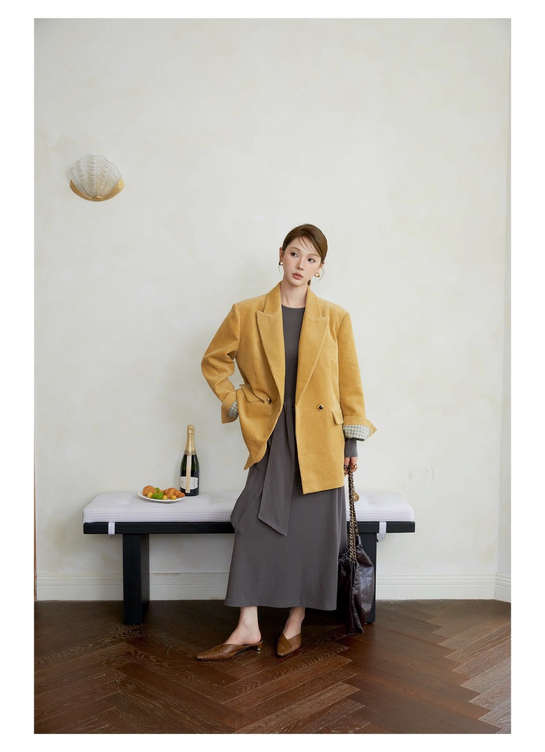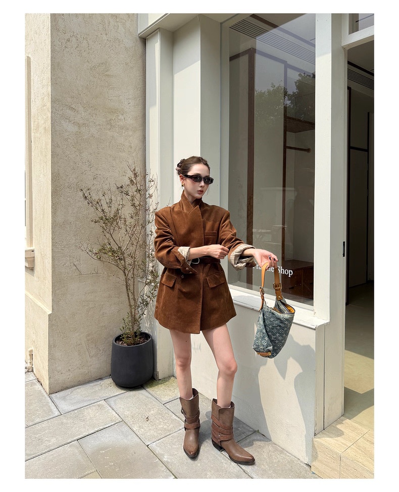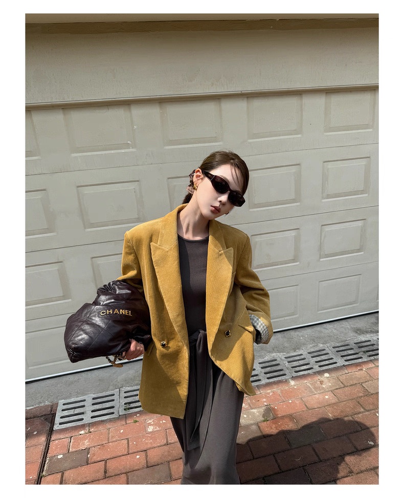 复古灯芯绒西装显瘦女枪驳领休闲上衣2025秋冬新品高级感气质外套