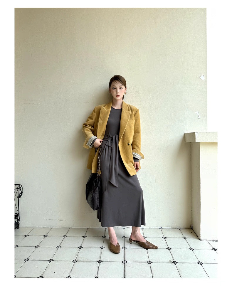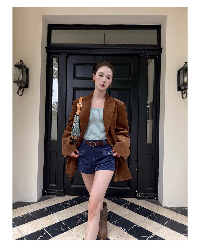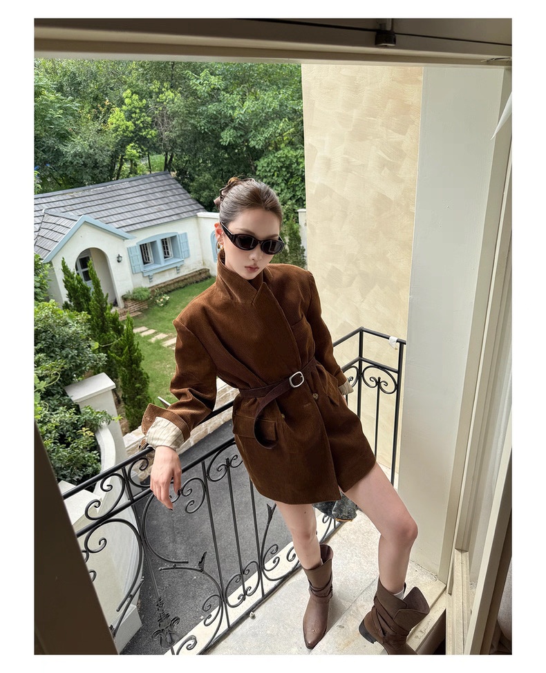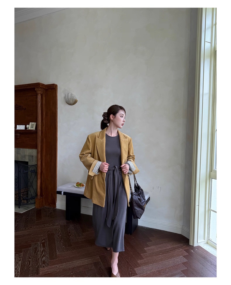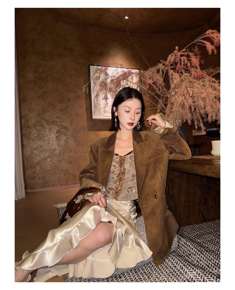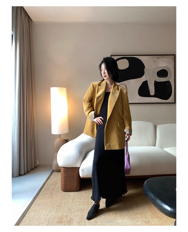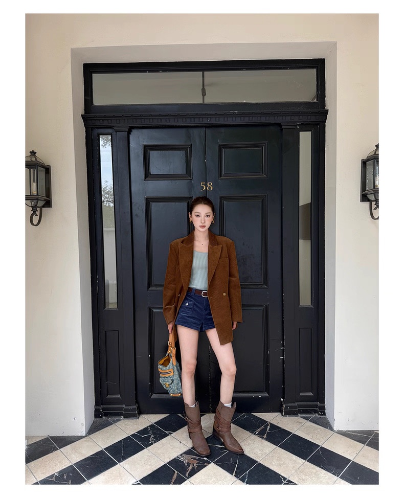复古灯芯绒西装显瘦女枪驳领休闲上衣2025秋冬新品高级感气质外套