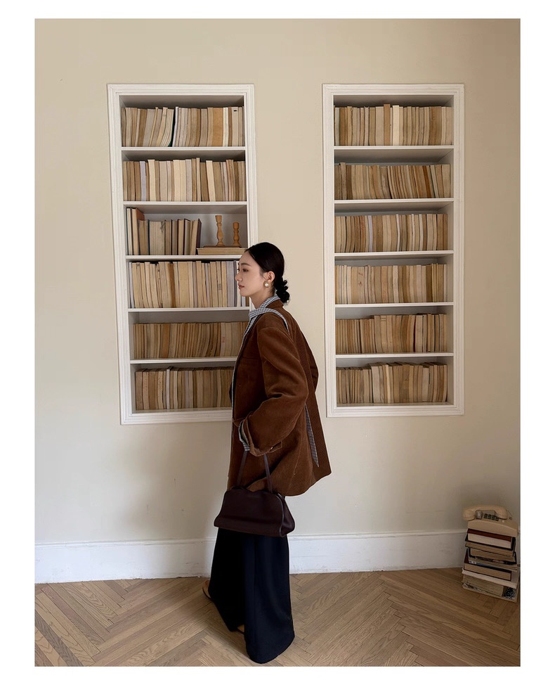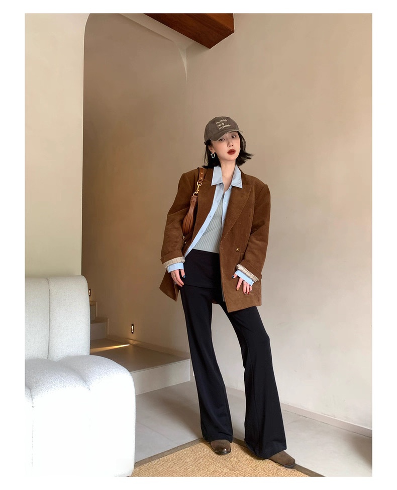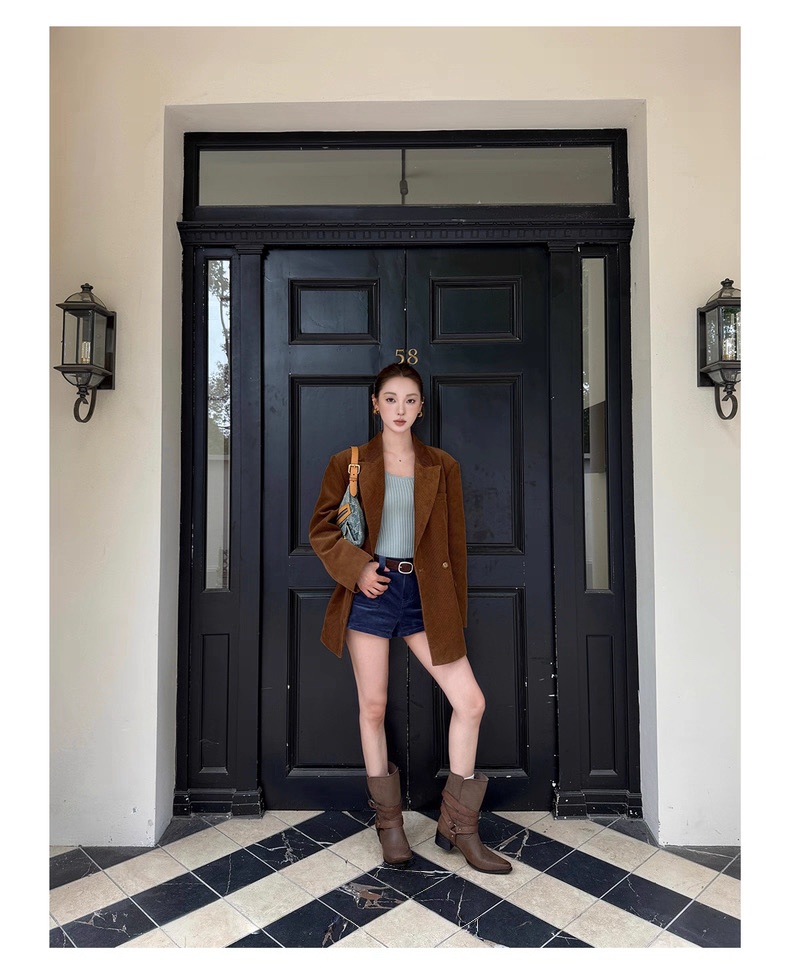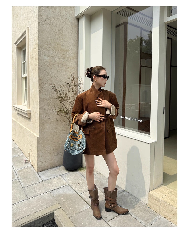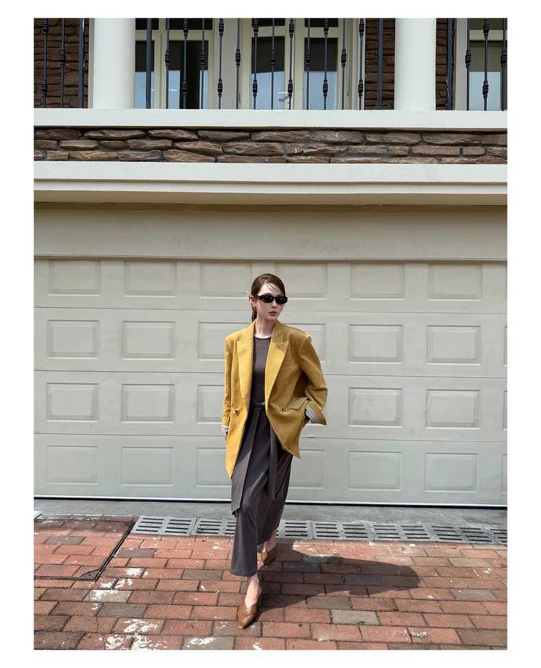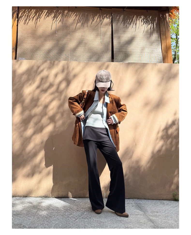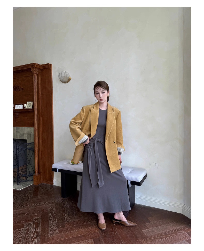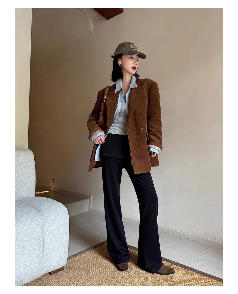 复古灯芯绒西装显瘦女枪驳领休闲上衣2025秋冬新品高级感气质外套