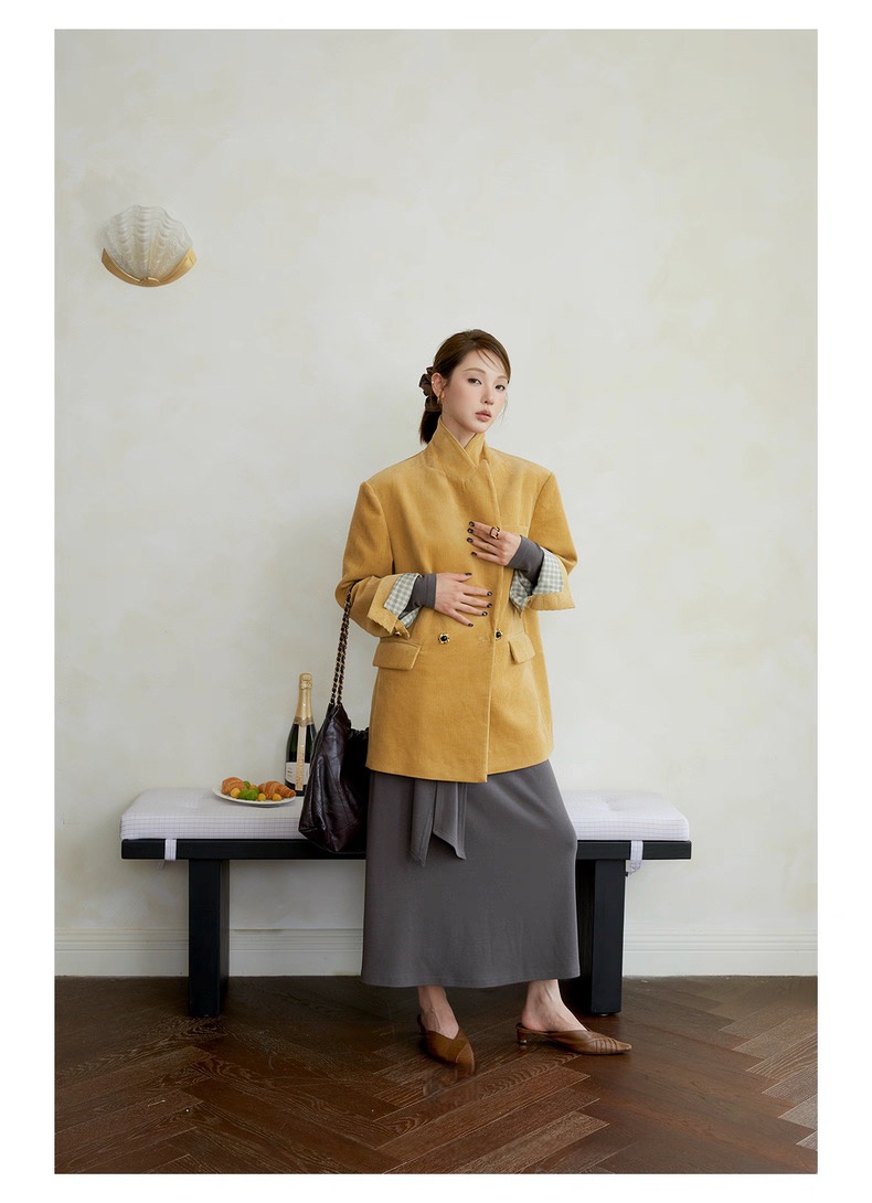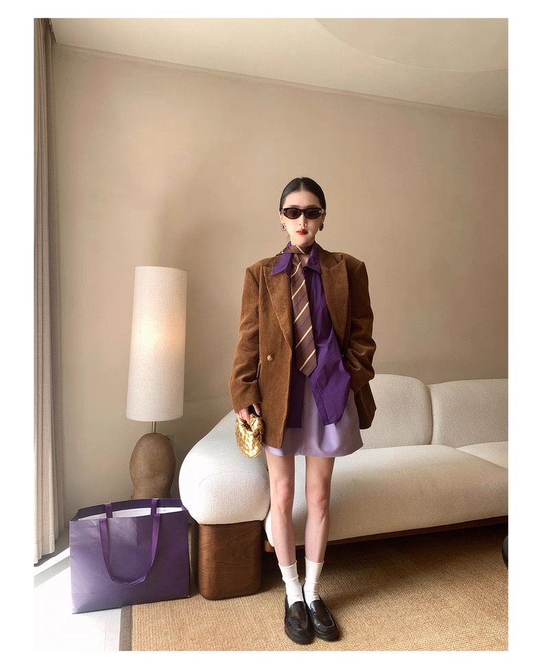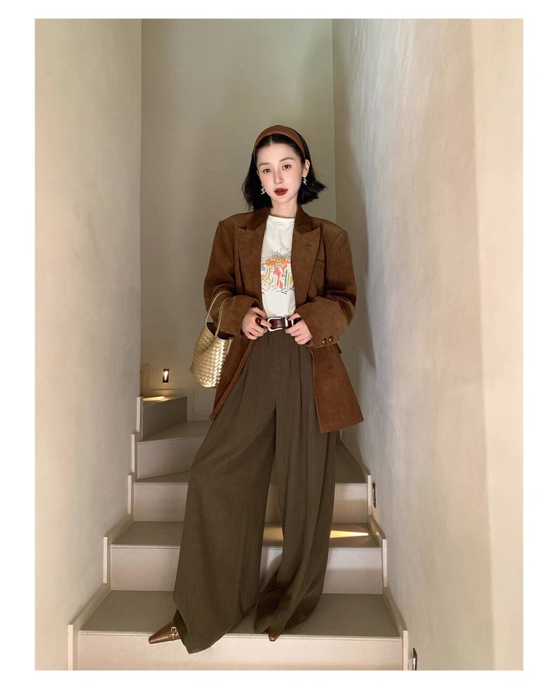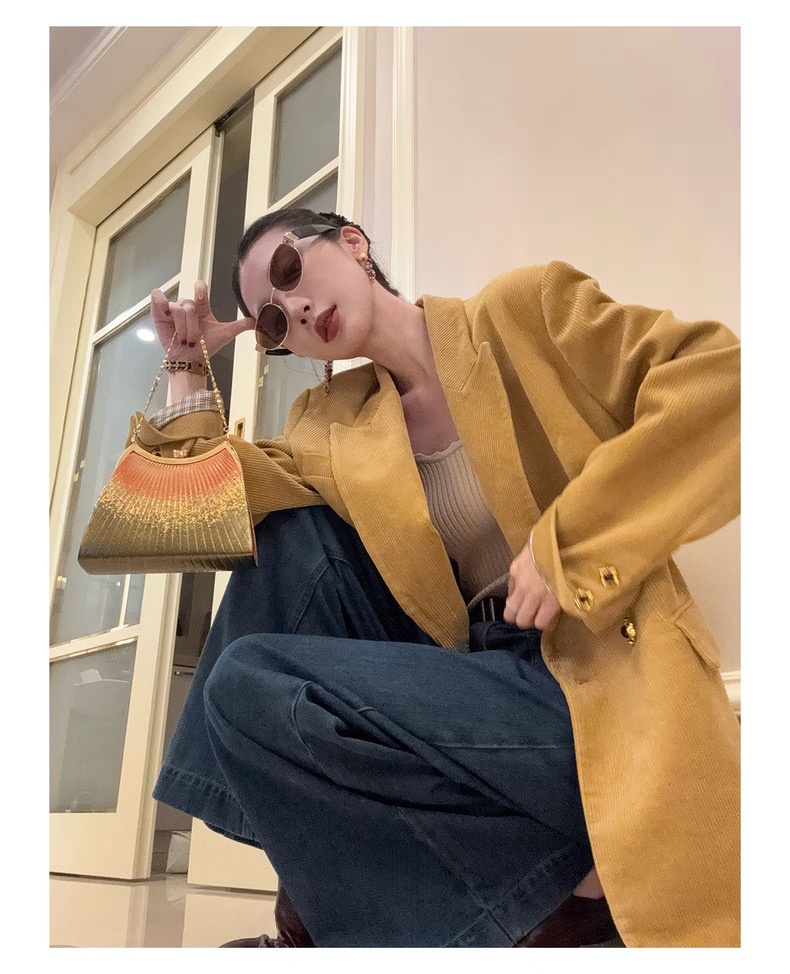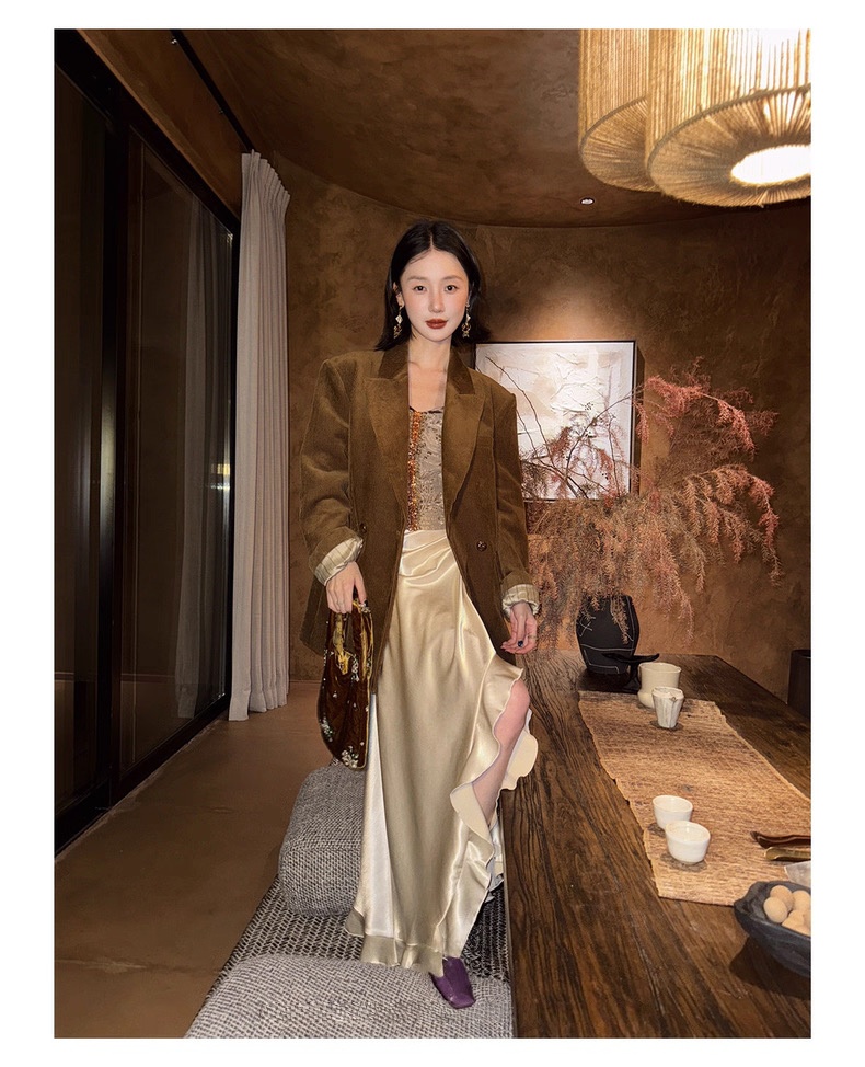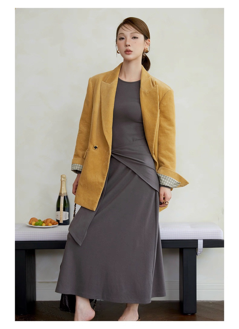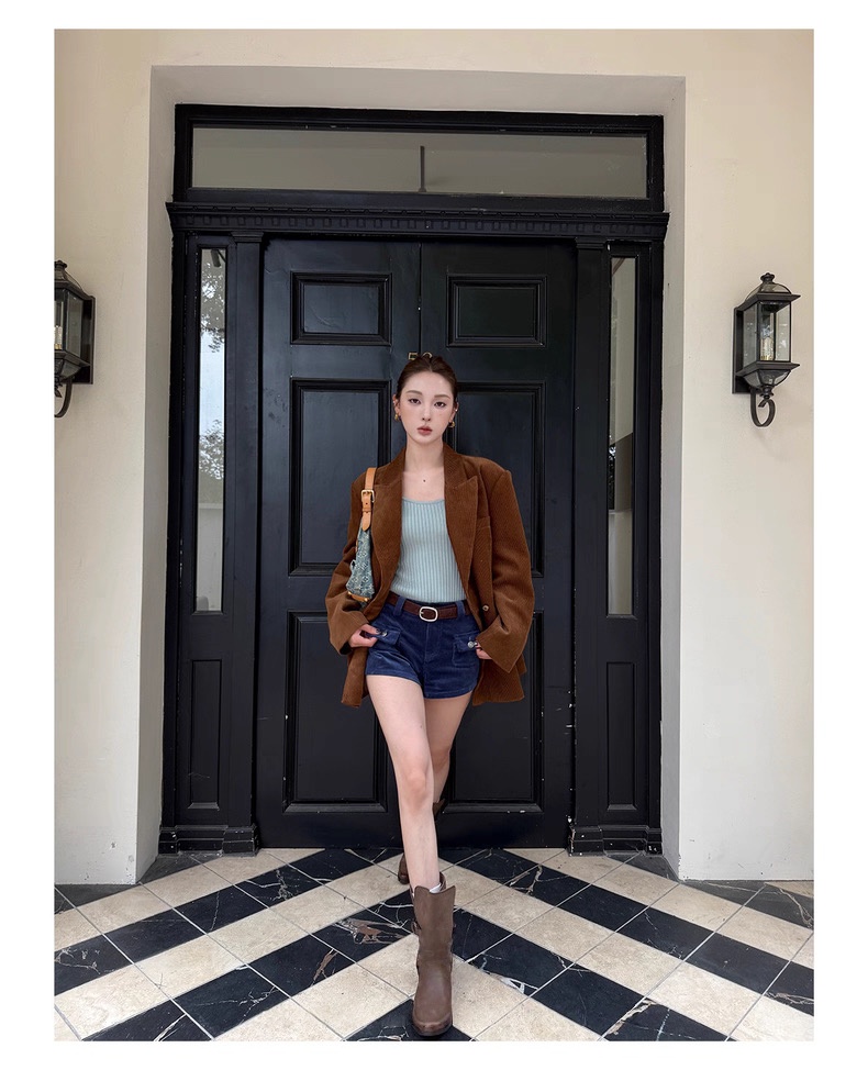复古灯芯绒西装显瘦女枪驳领休闲上衣2025秋冬新品高级感气质外套