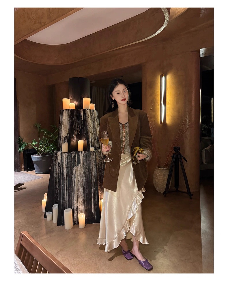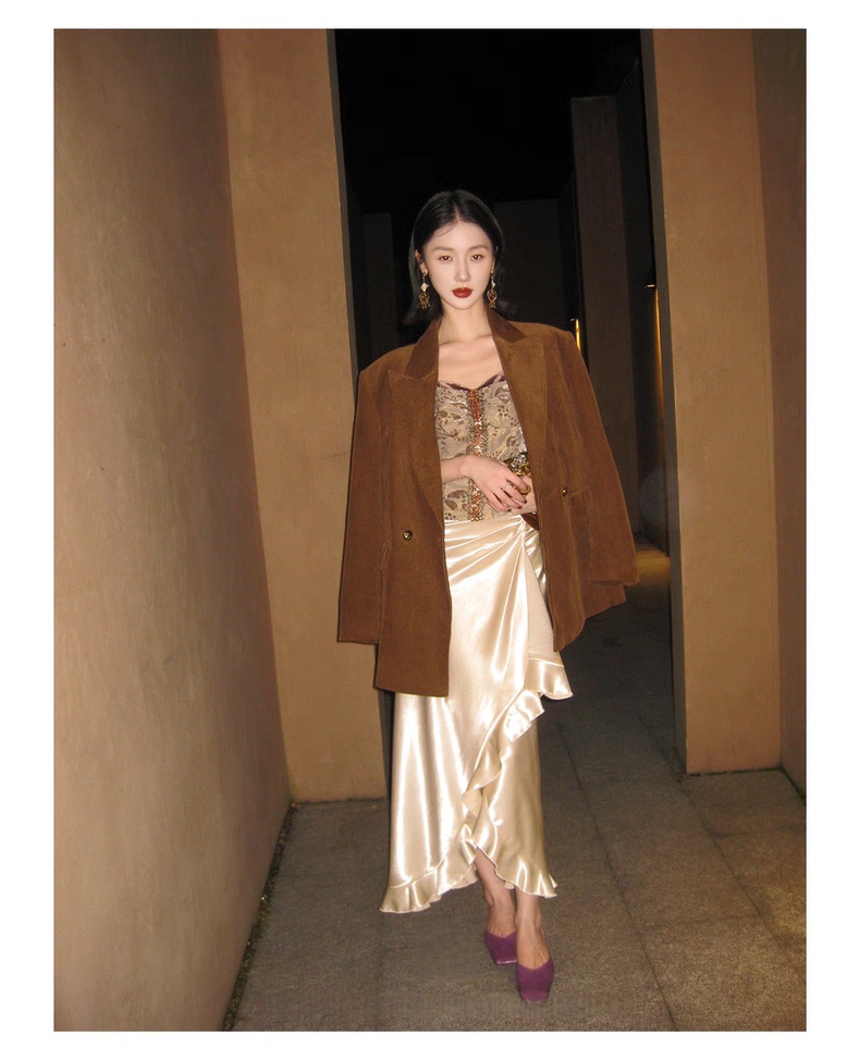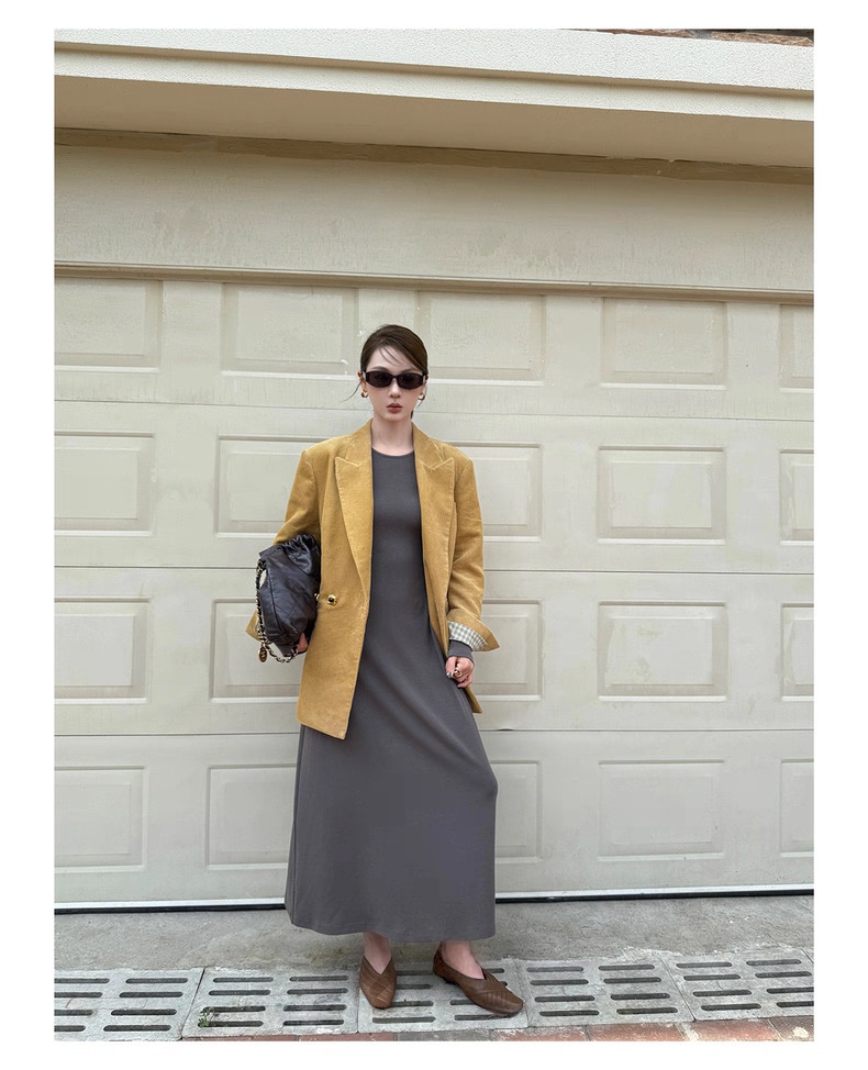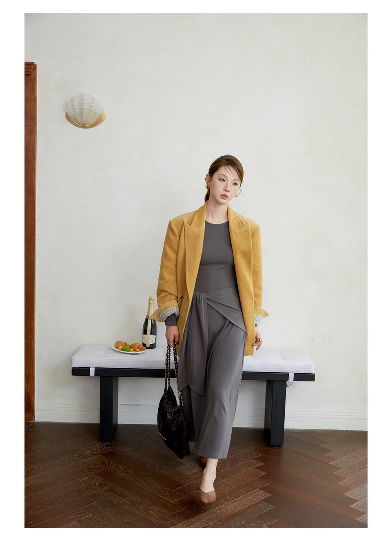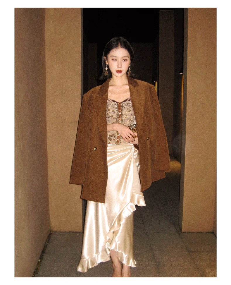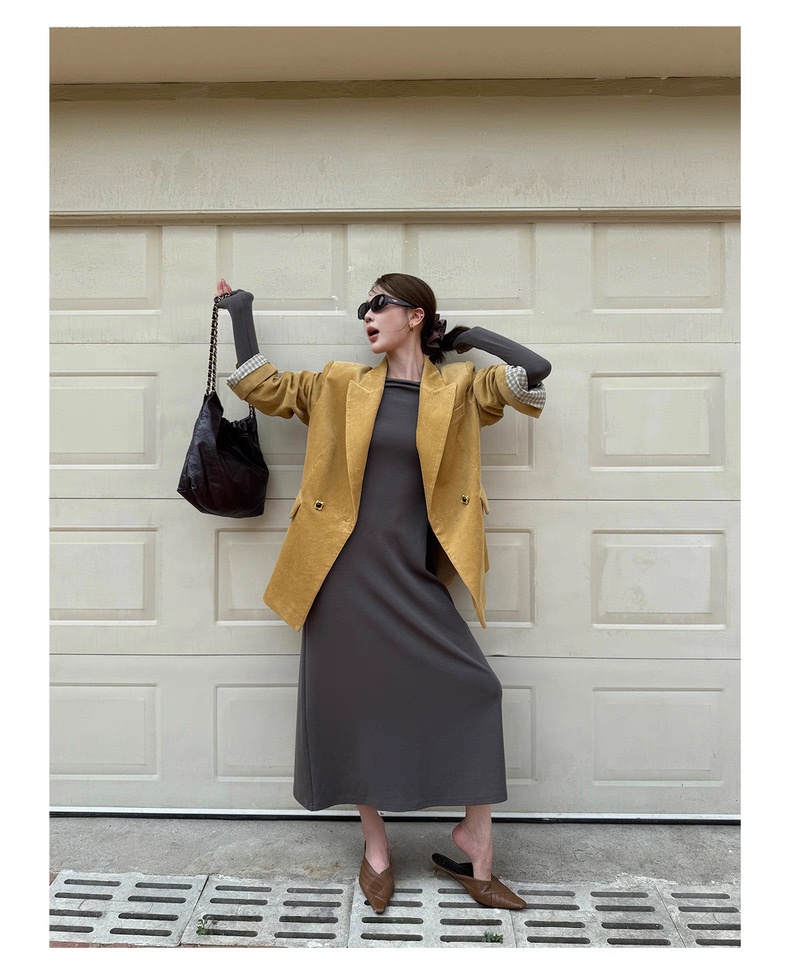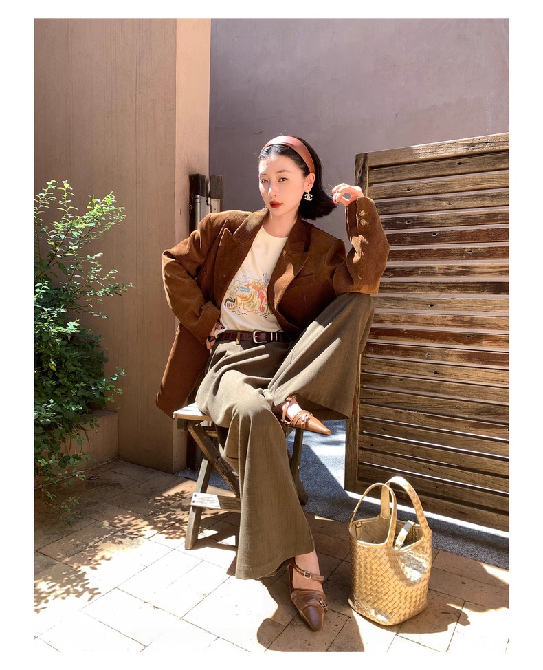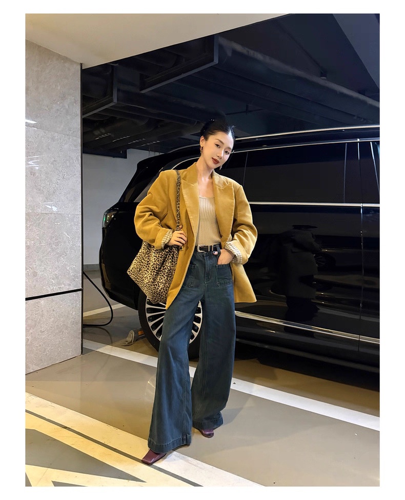 复古灯芯绒西装显瘦女枪驳领休闲上衣2025秋冬新品高级感气质外套