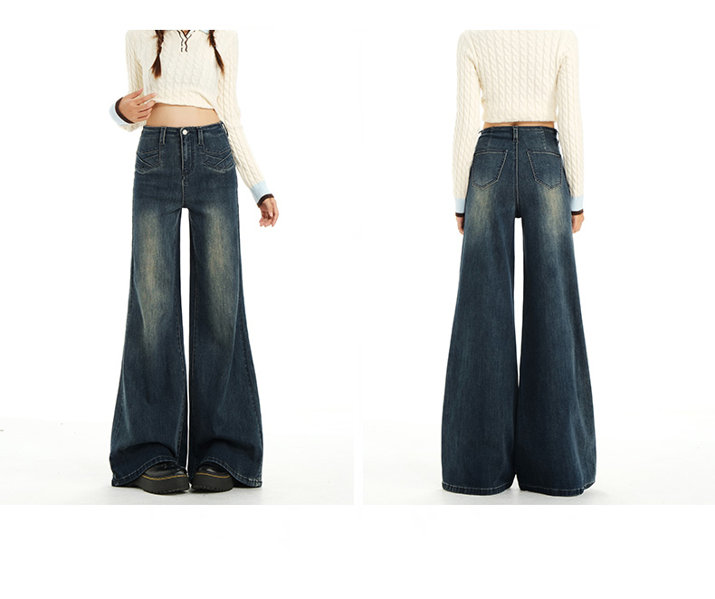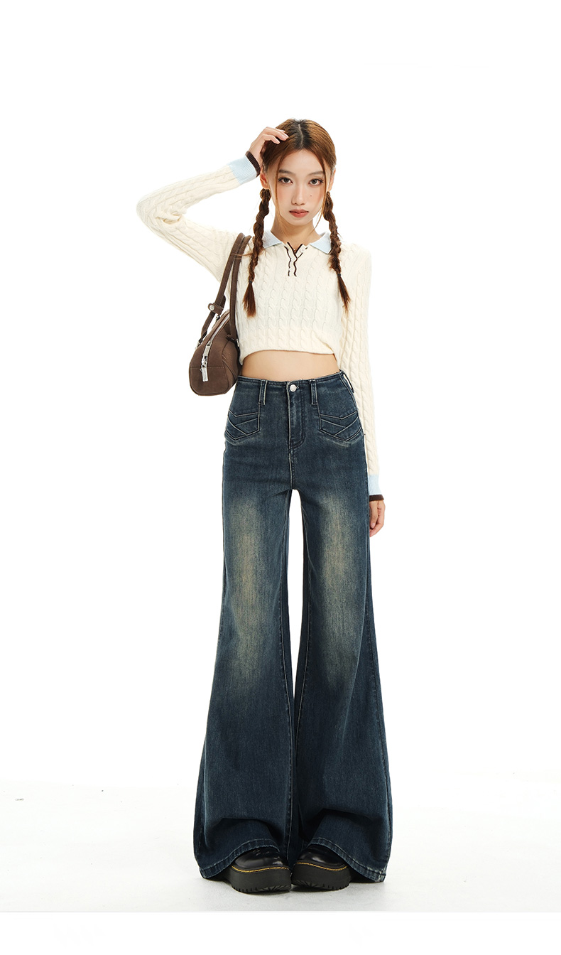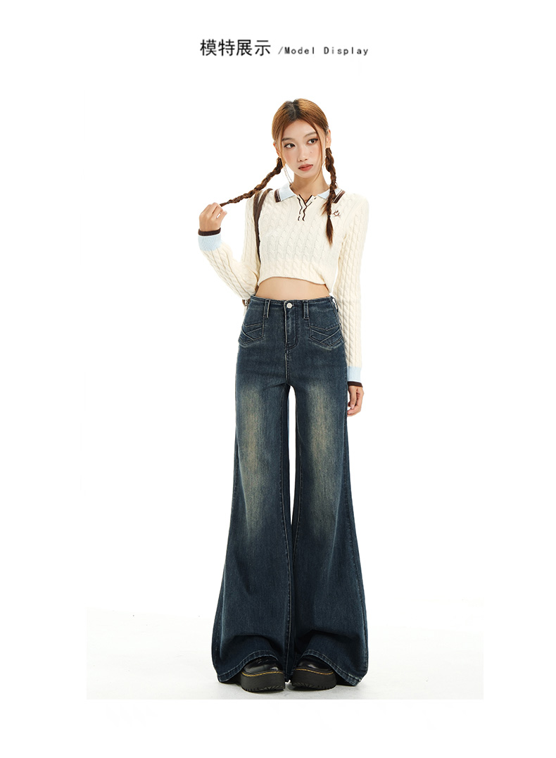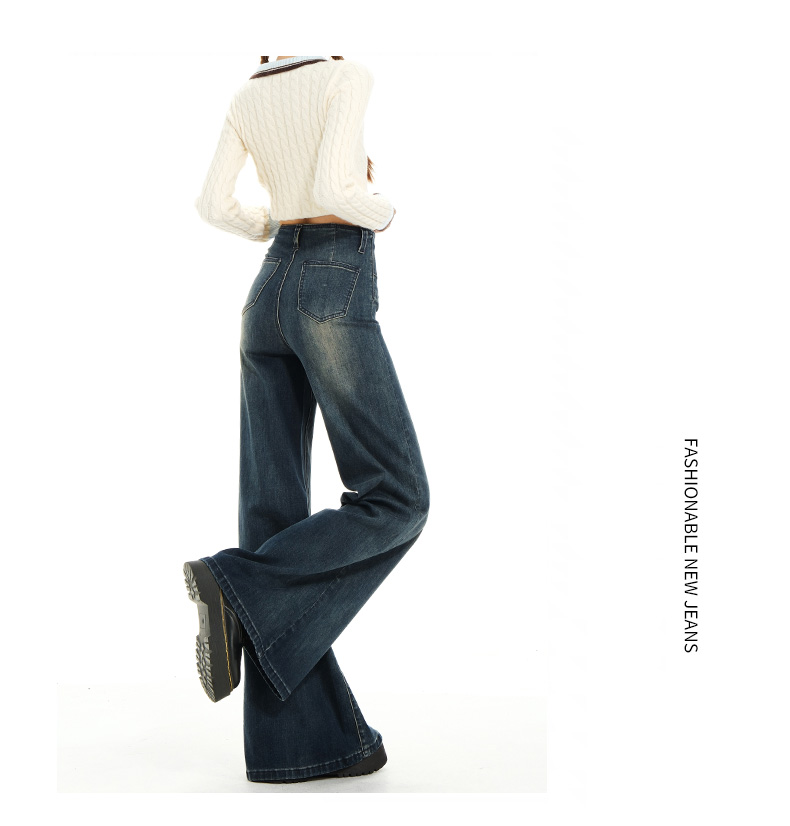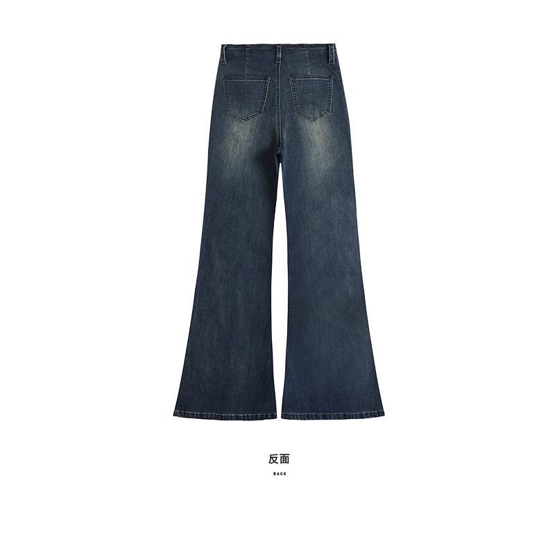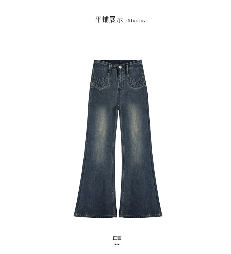 实拍秋季新款美式复古高腰假口袋弹力显瘦遮胯提臀垂感大喇叭裤女