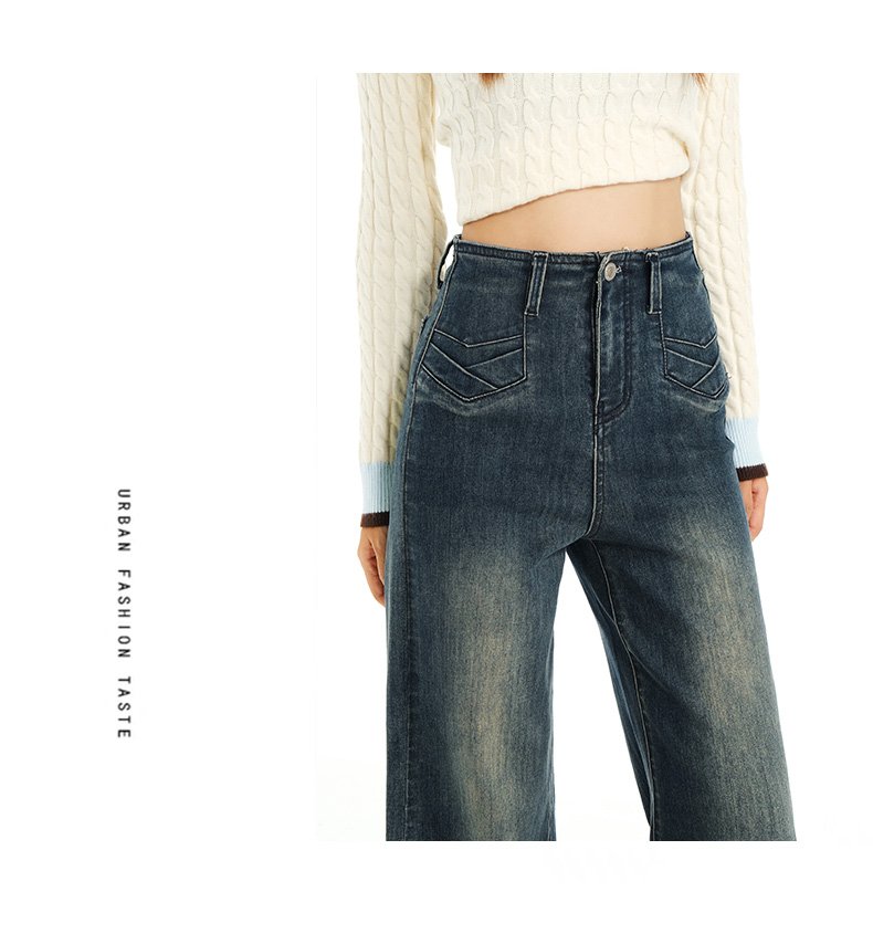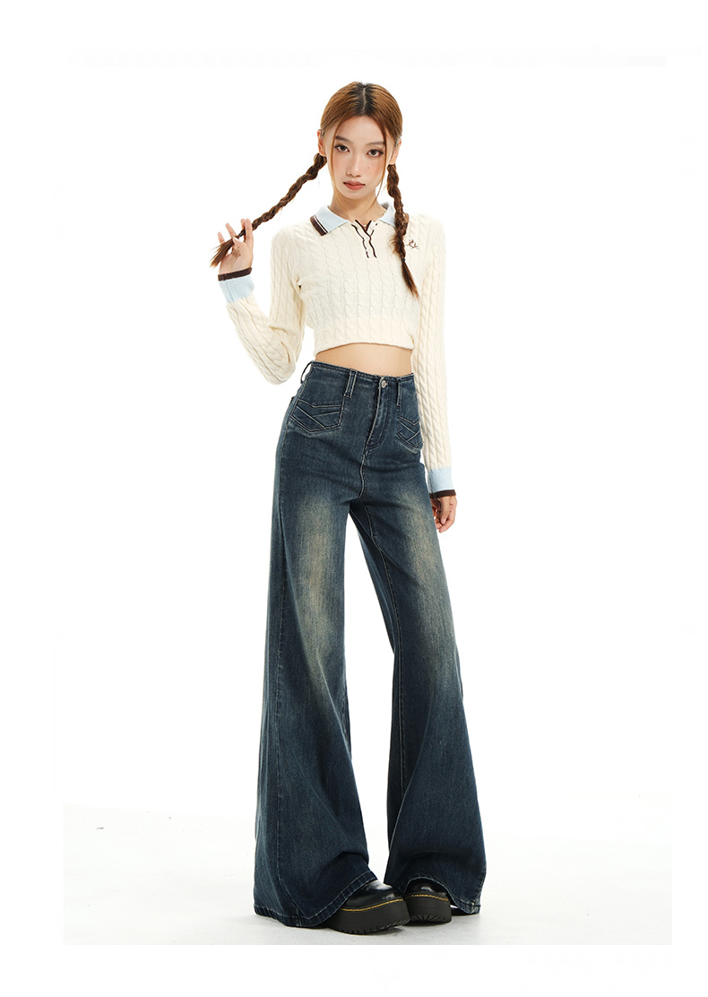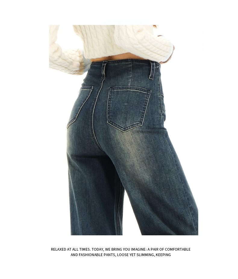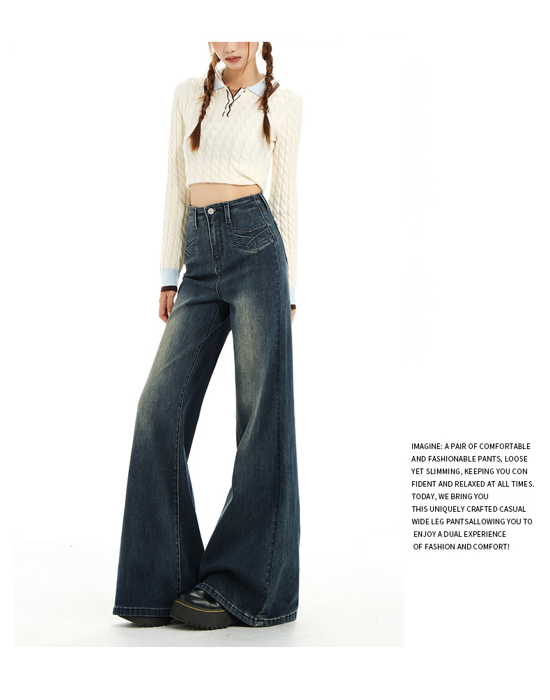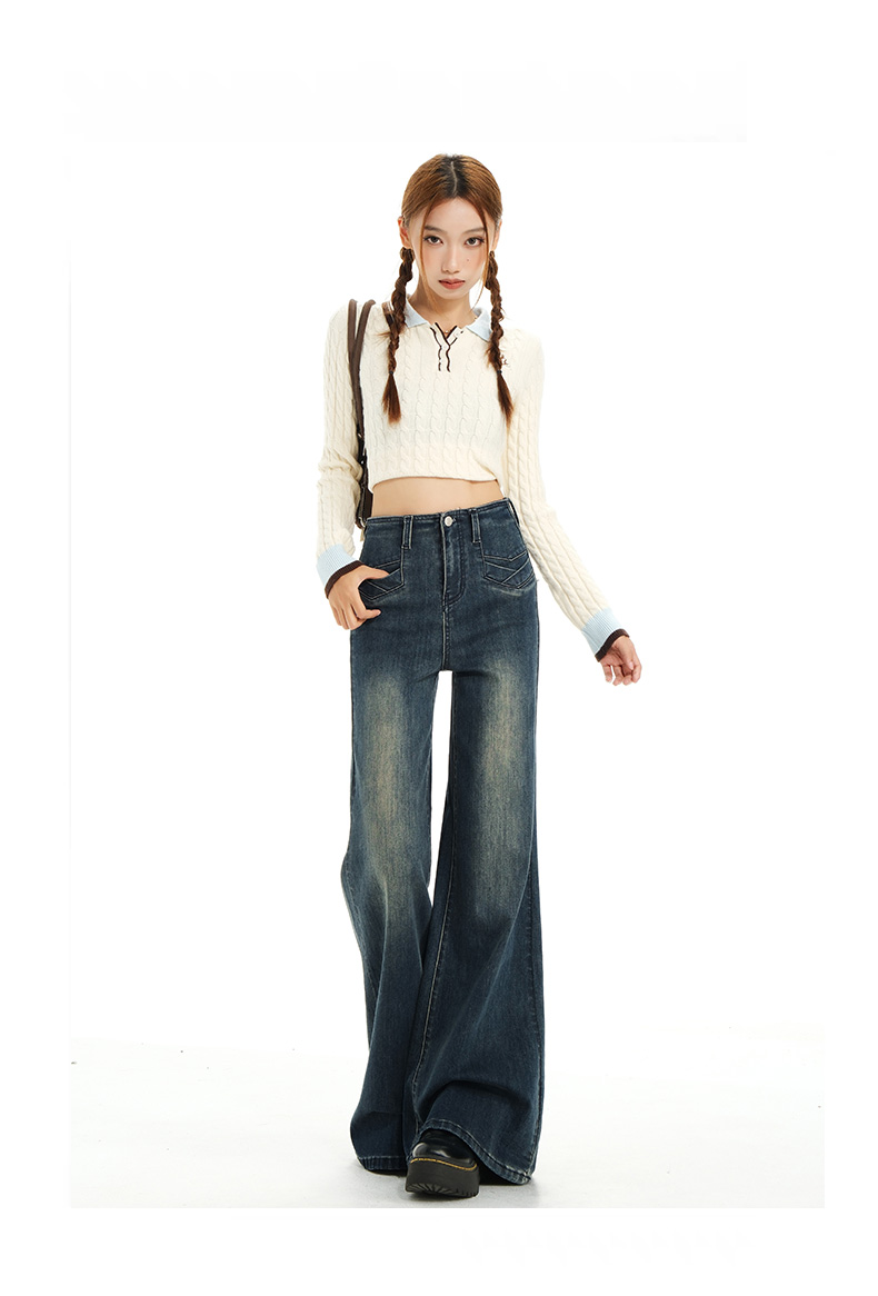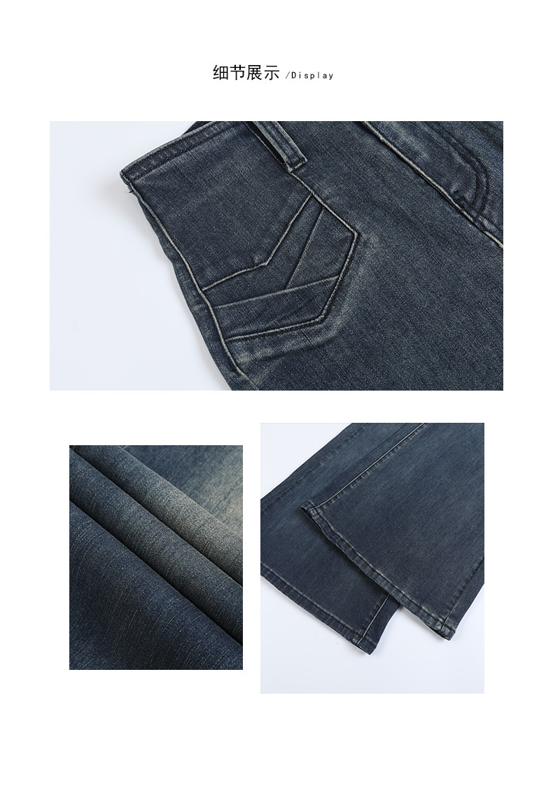 实拍秋季新款美式复古高腰假口袋弹力显瘦遮胯提臀垂感大喇叭裤女