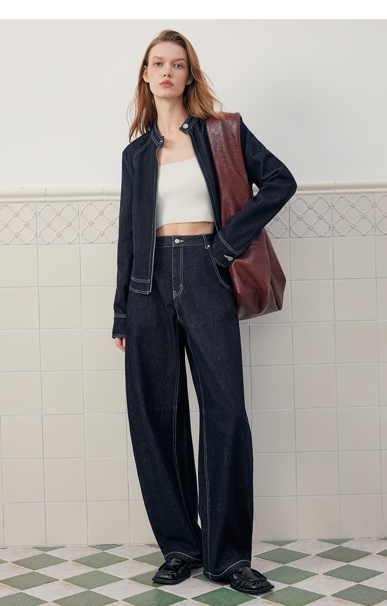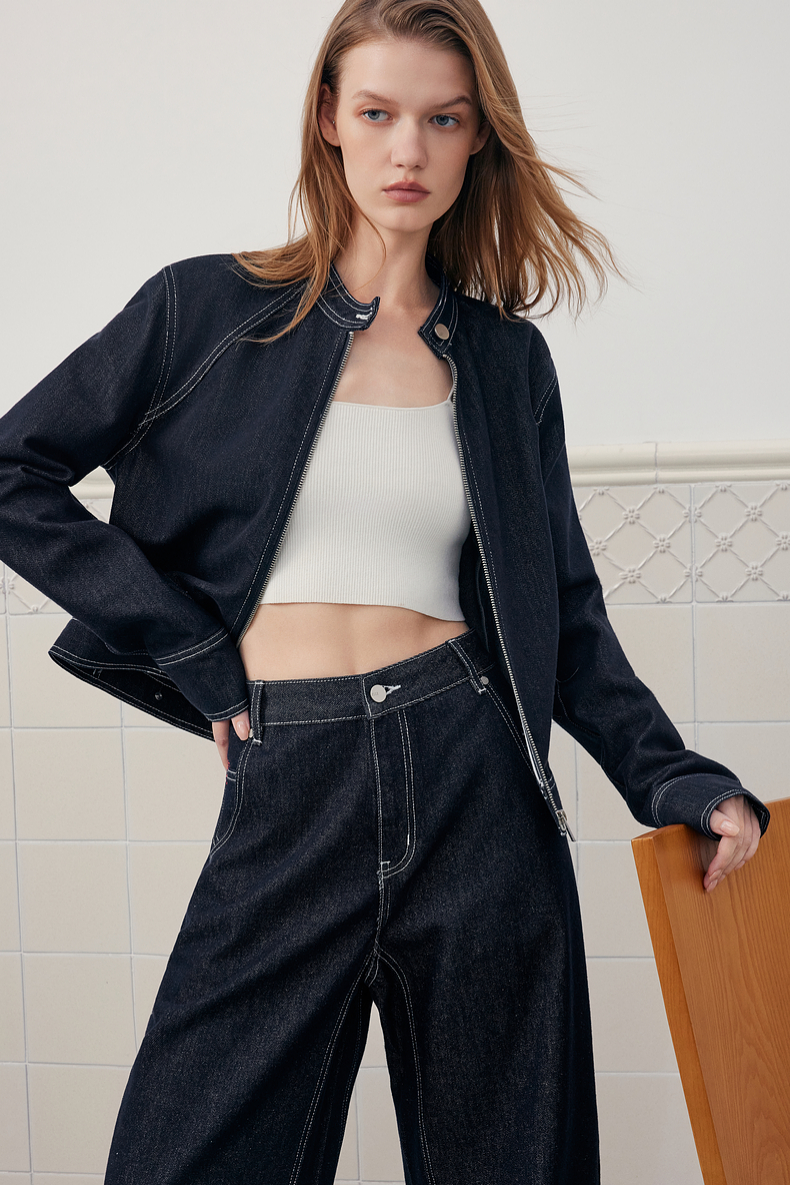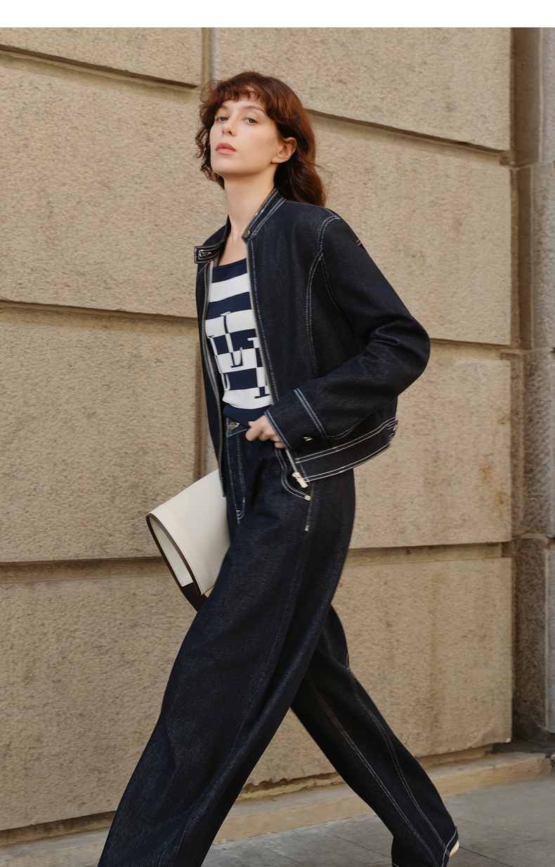官图法式廓形牛仔短外套女2025秋新款天丝工装风时髦通勤夹克上衣