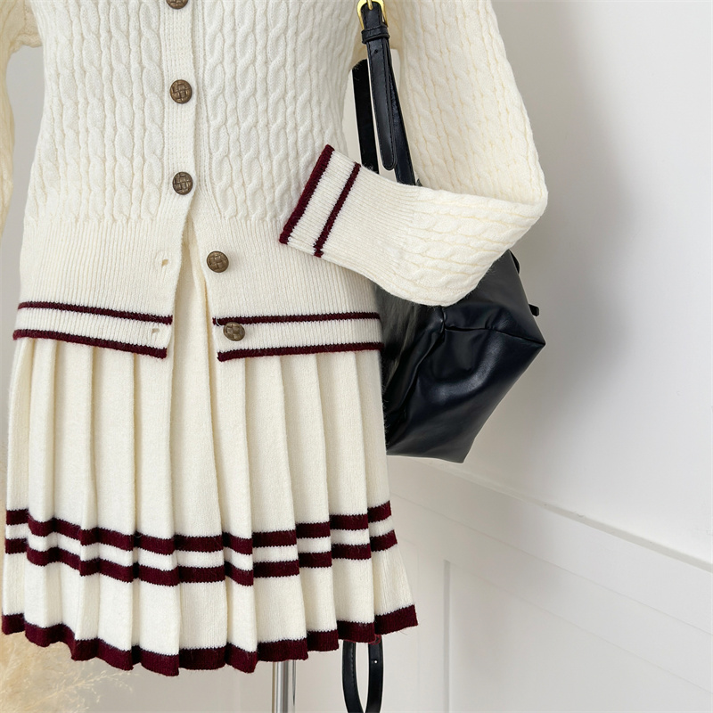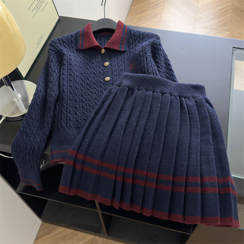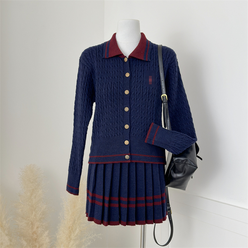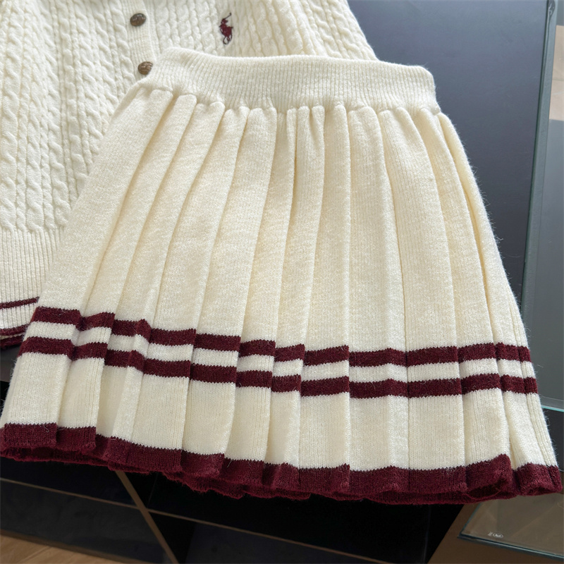 秋季穿搭学院小香风超好看小马刺绣开衫毛衣针织连衣裙两件套装女