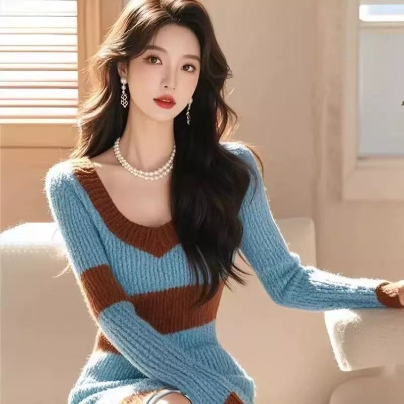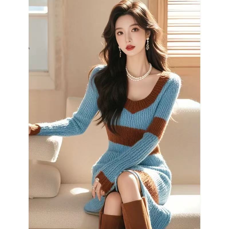 小香风超好看气质漂亮仙女针织连衣裙秋季新款配大衣加厚毛衣裙子