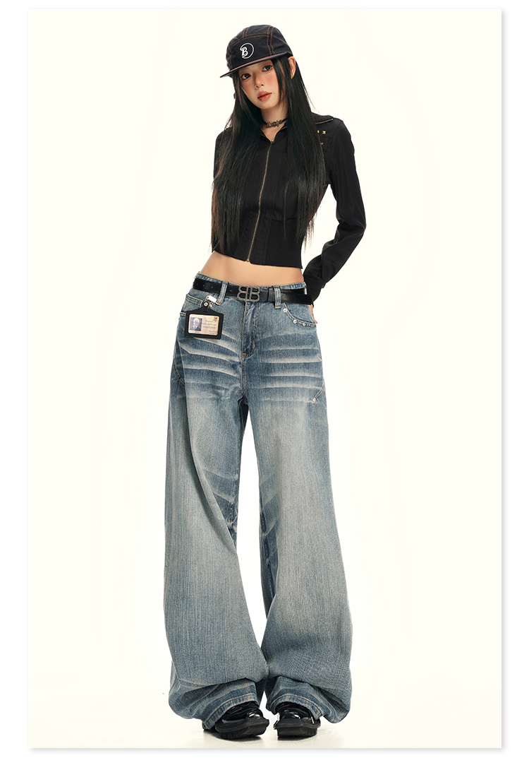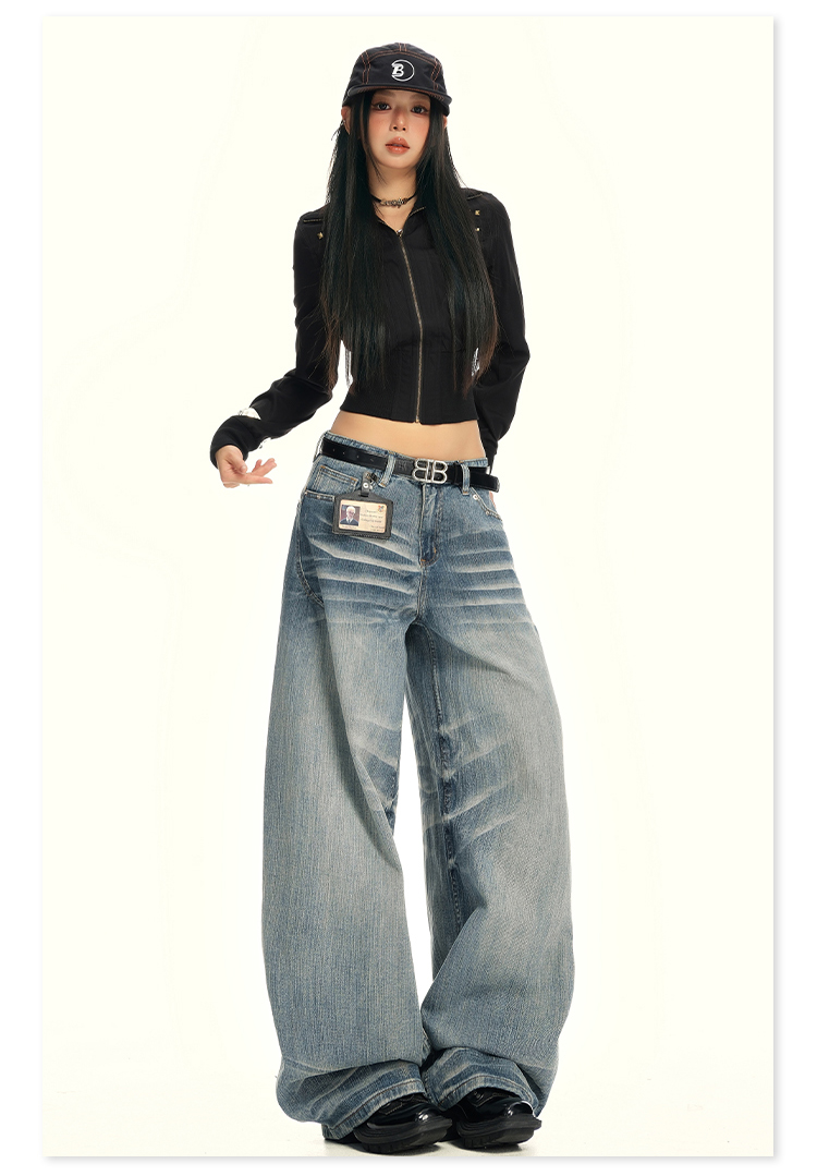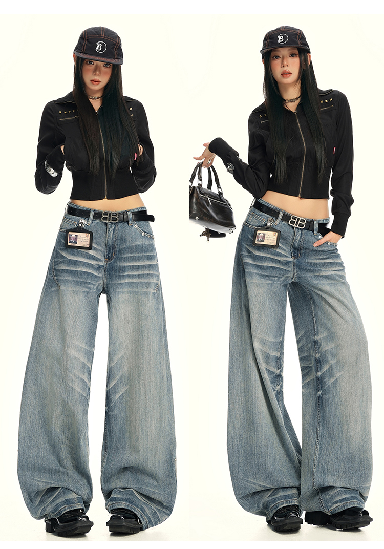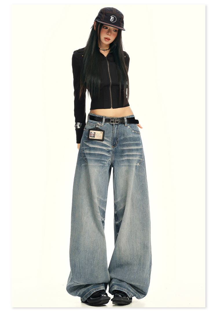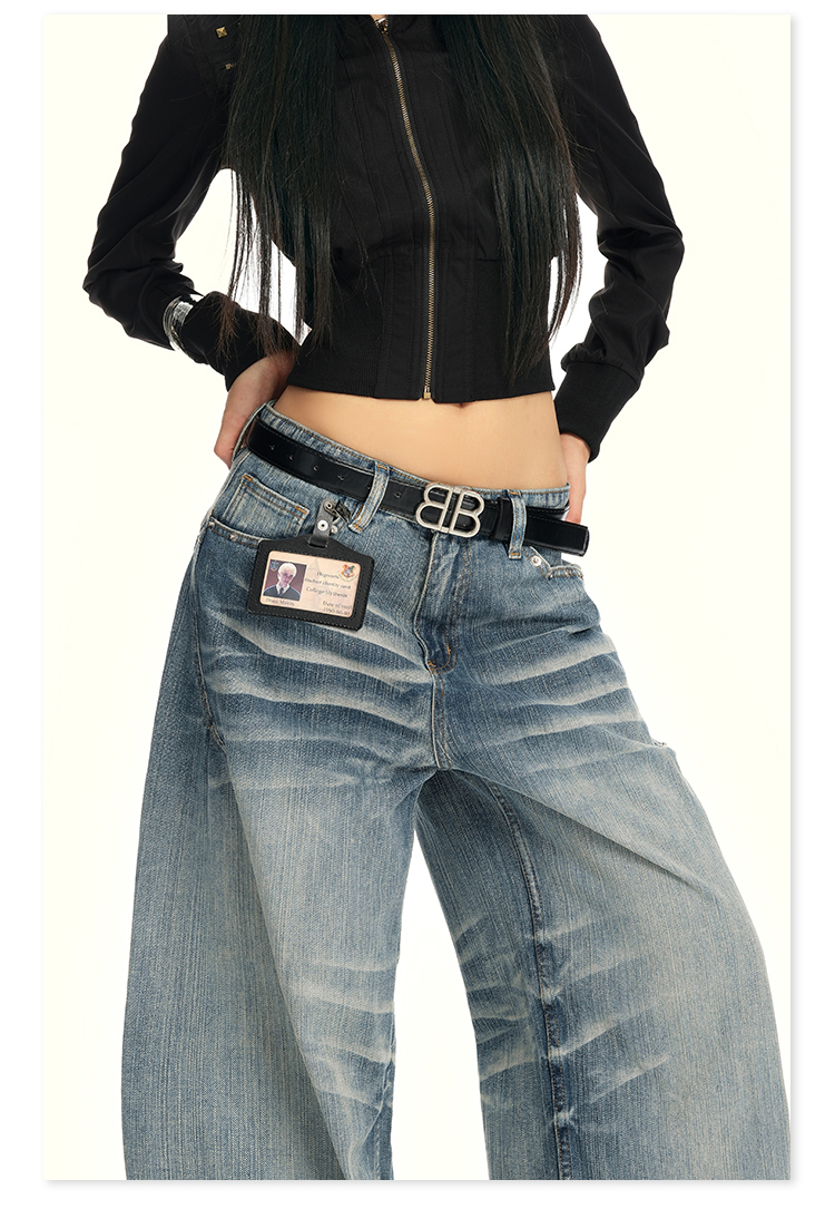 实拍25th ootd!|无侧缝立体猫须休闲牛仔蓝色阔腿裤