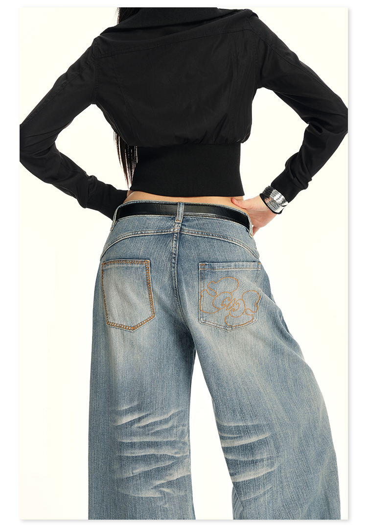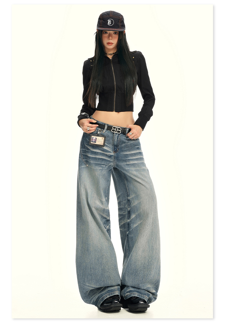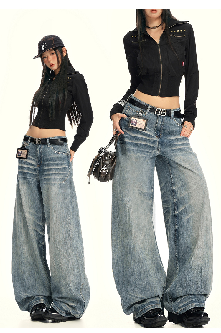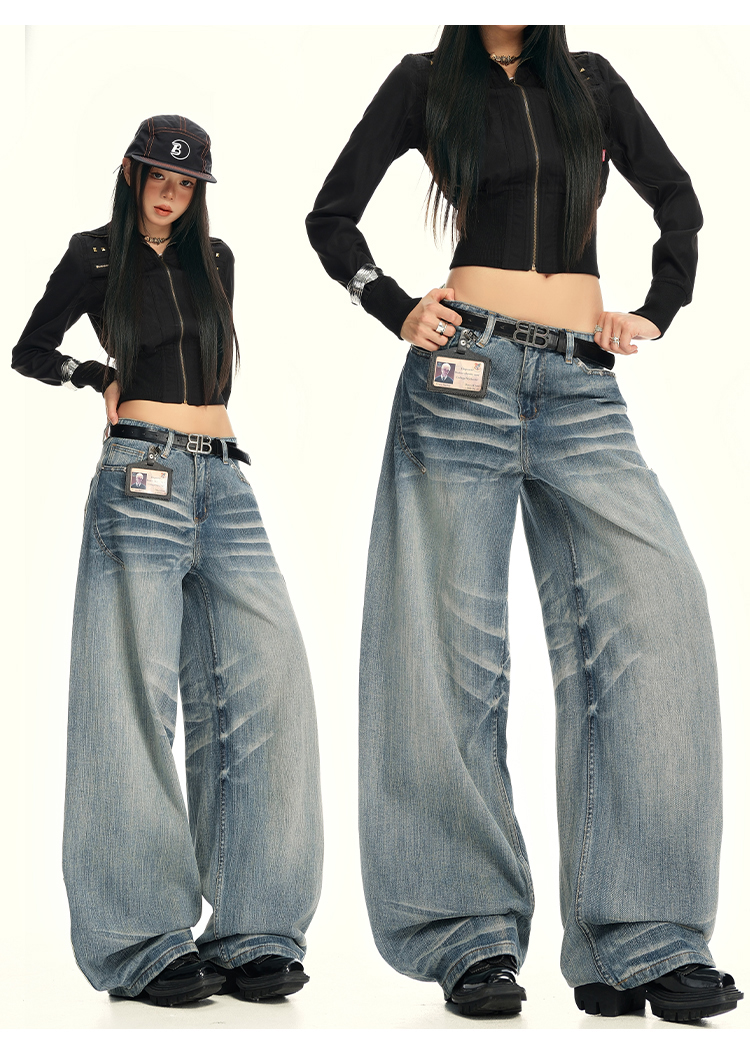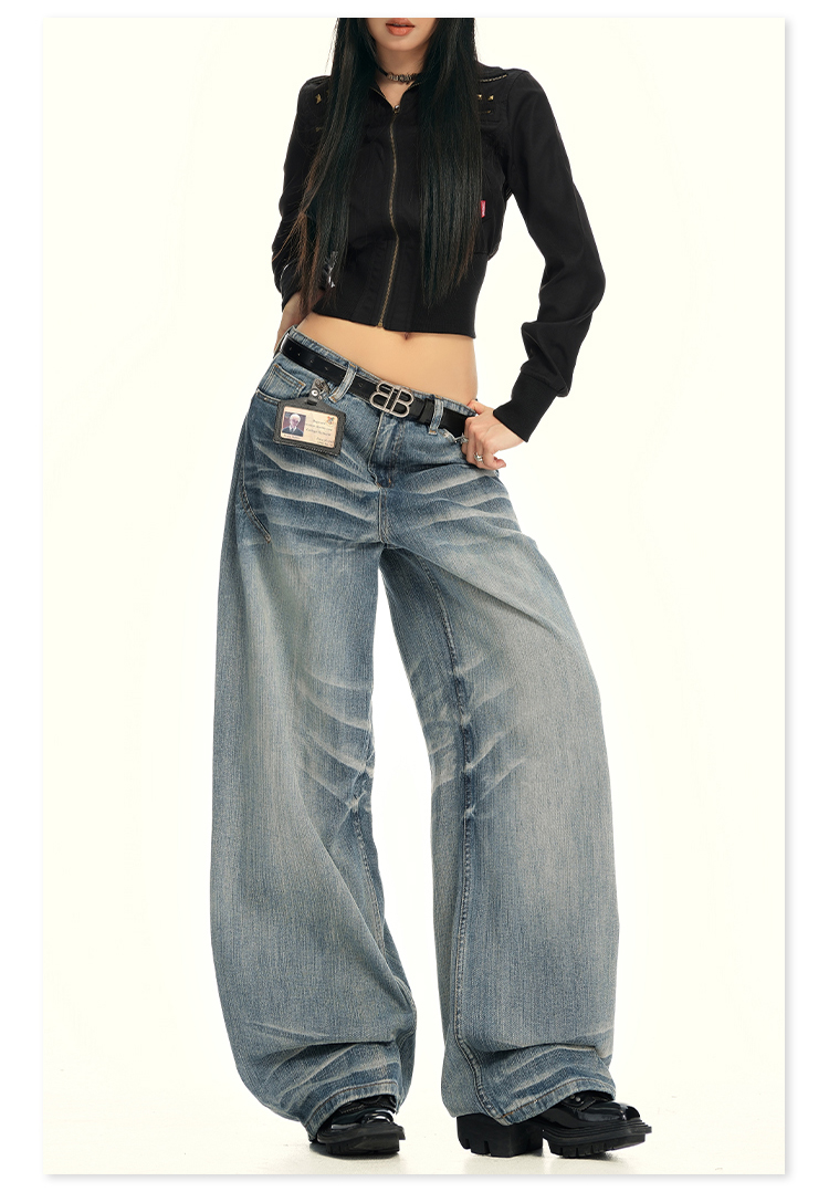 实拍25th ootd!|无侧缝立体猫须休闲牛仔蓝色阔腿裤