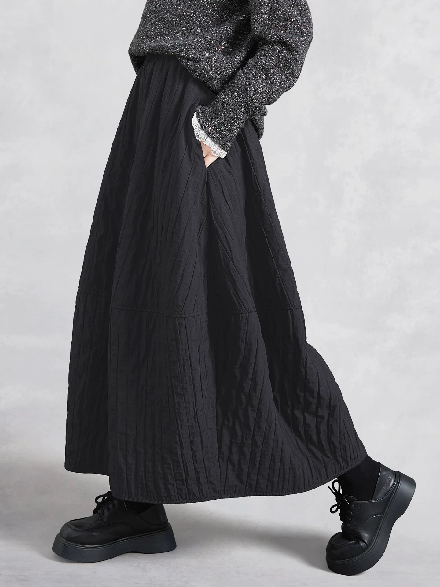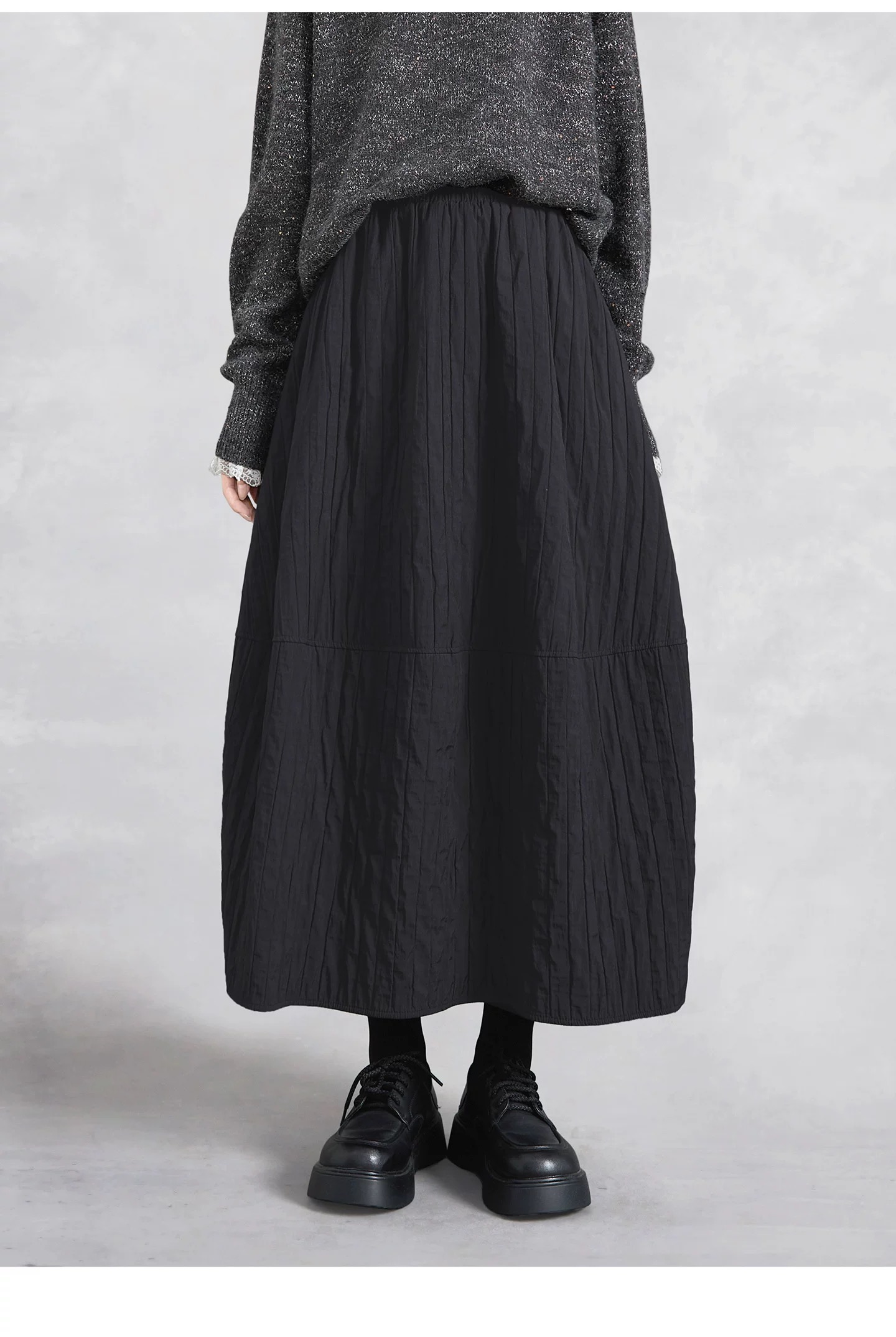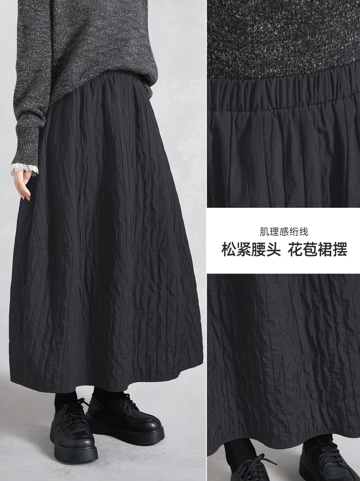 她池松紧腰半身裙2025秋装新款女装时尚简约宽松款显瘦长款花苞裙
