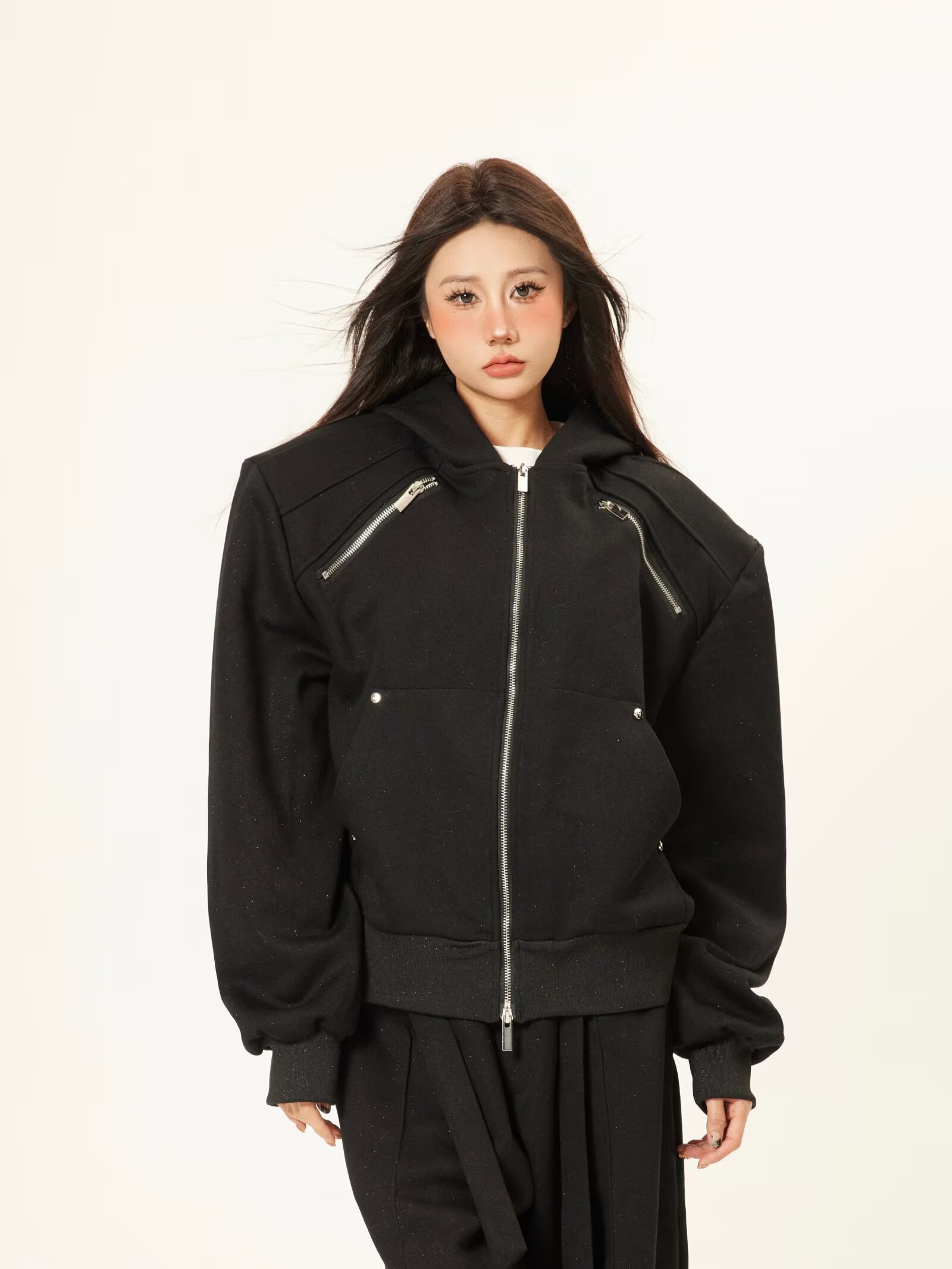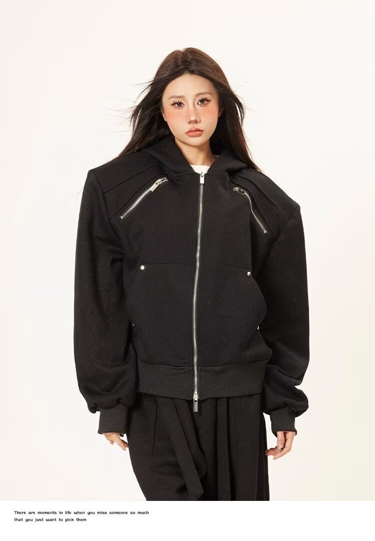 美式重磅刺绣开衫卫衣男女秋冬宽松新款双拉链休闲外套休闲夹克
