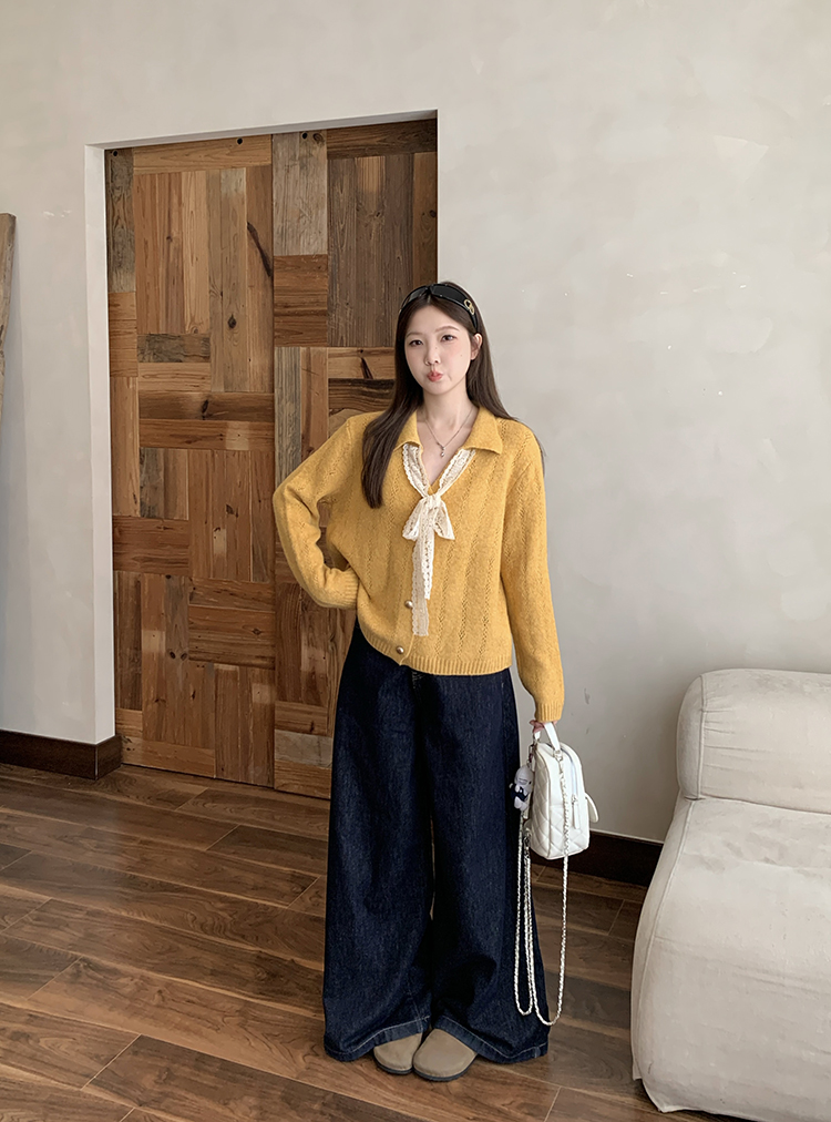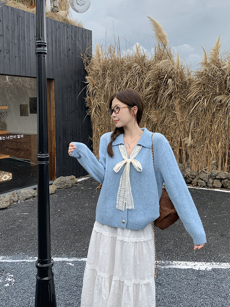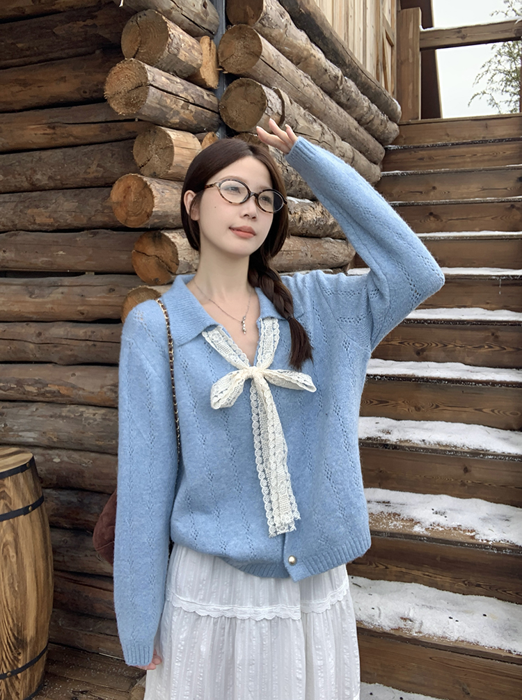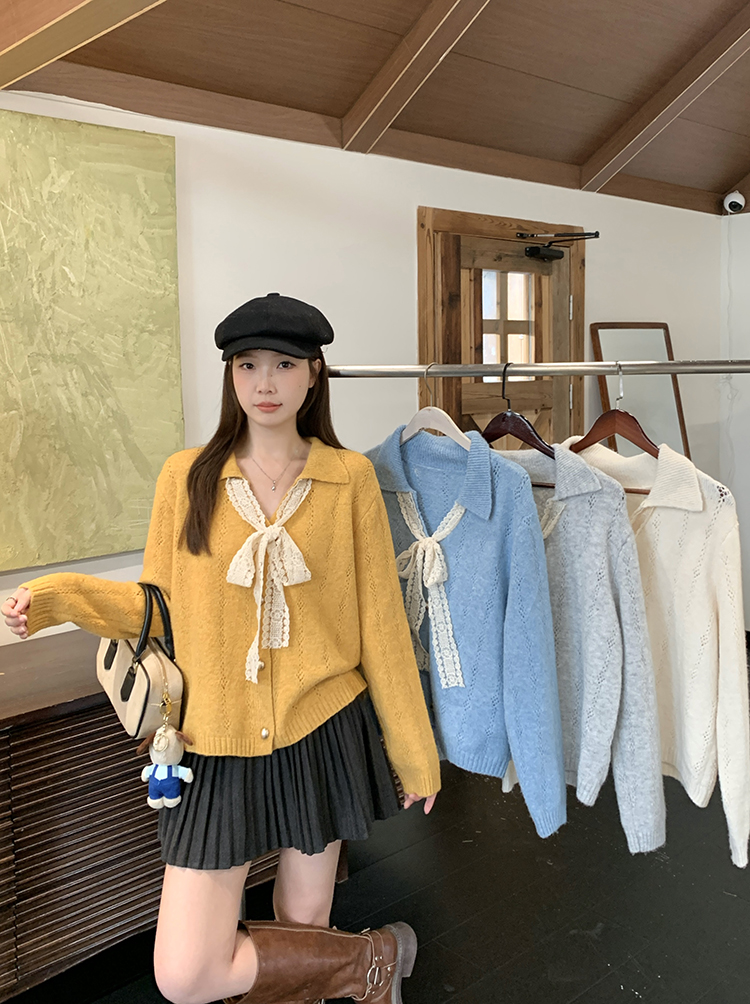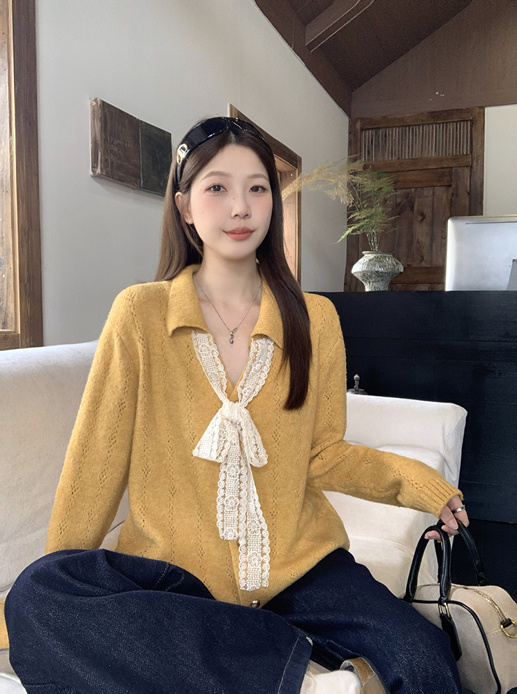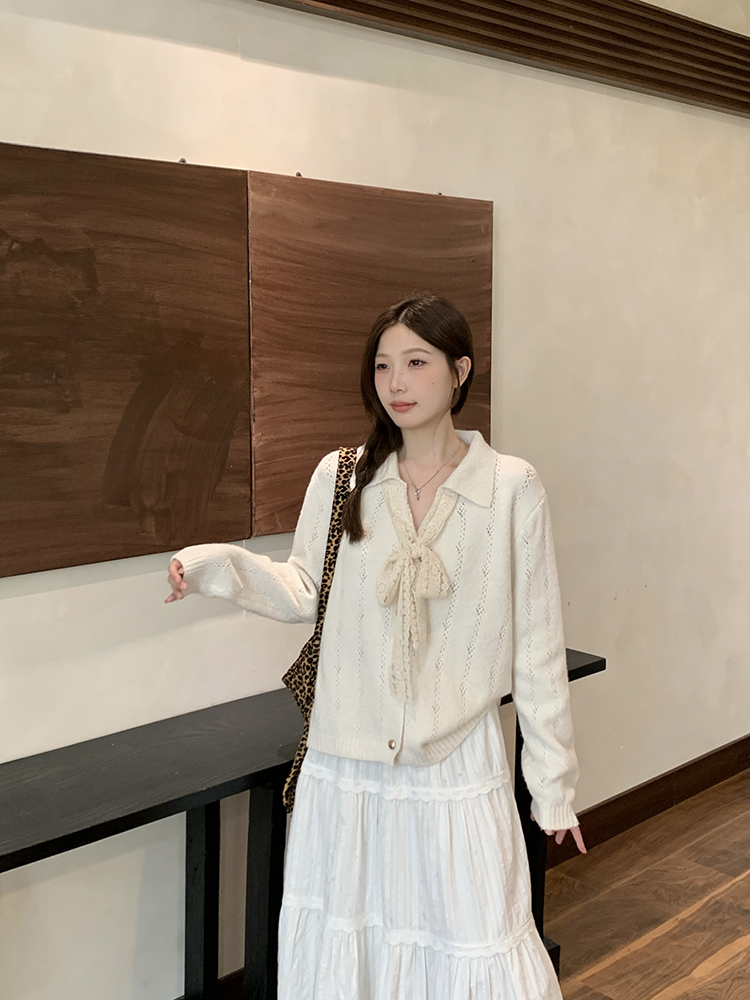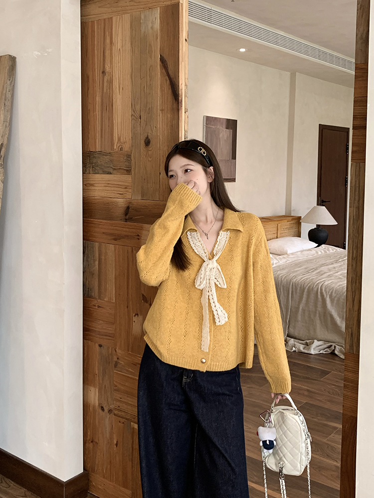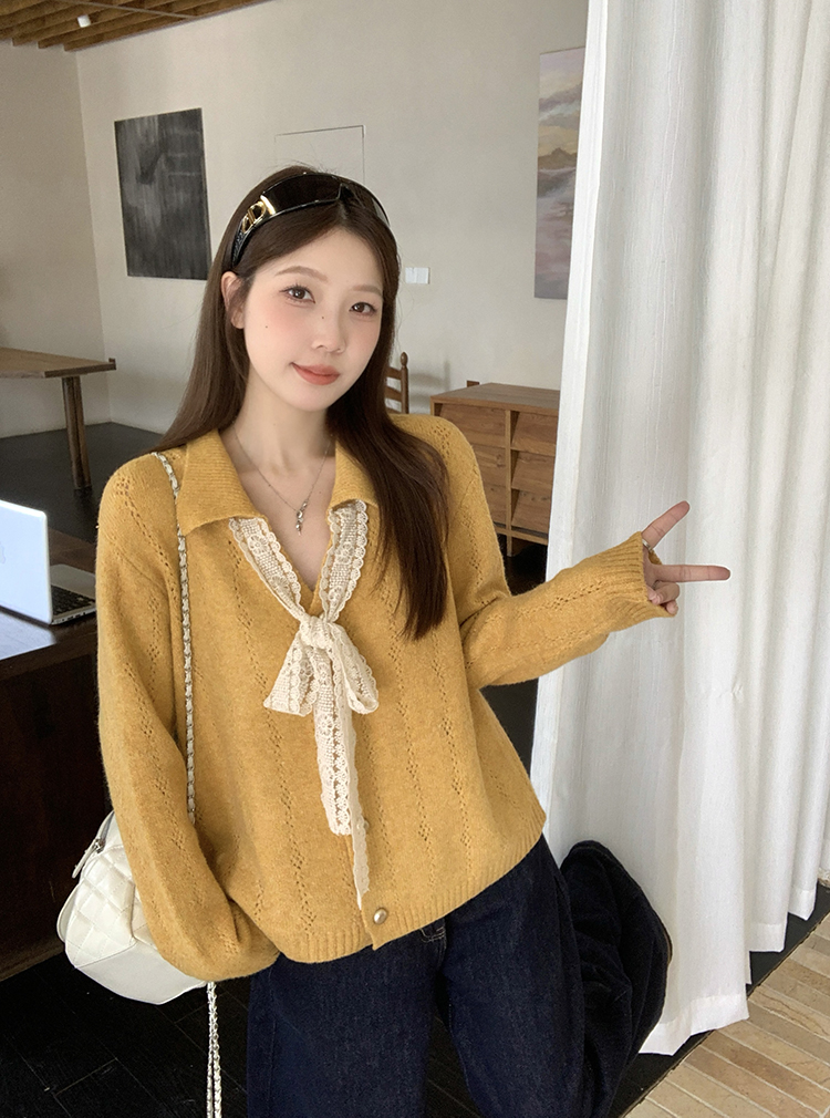 实拍2025秋装新款胖mm大码女温柔风v领系带蝴蝶结针织上衣