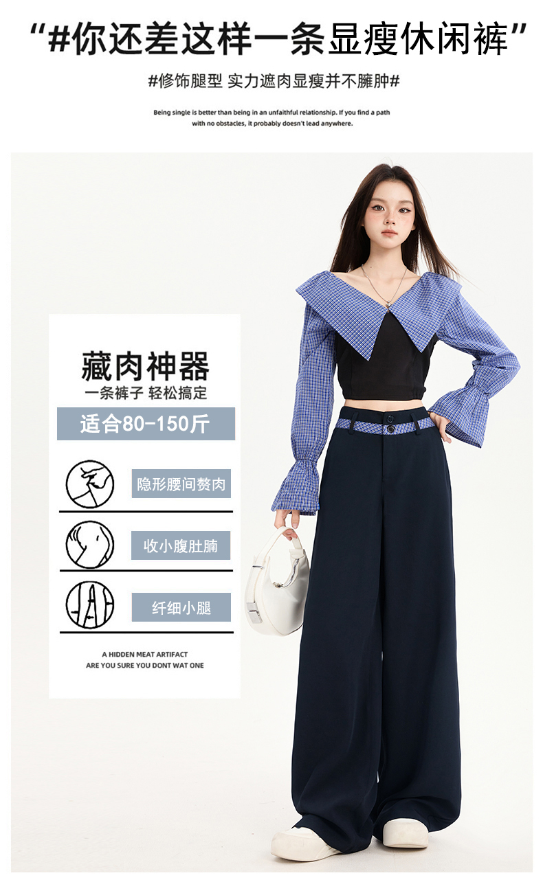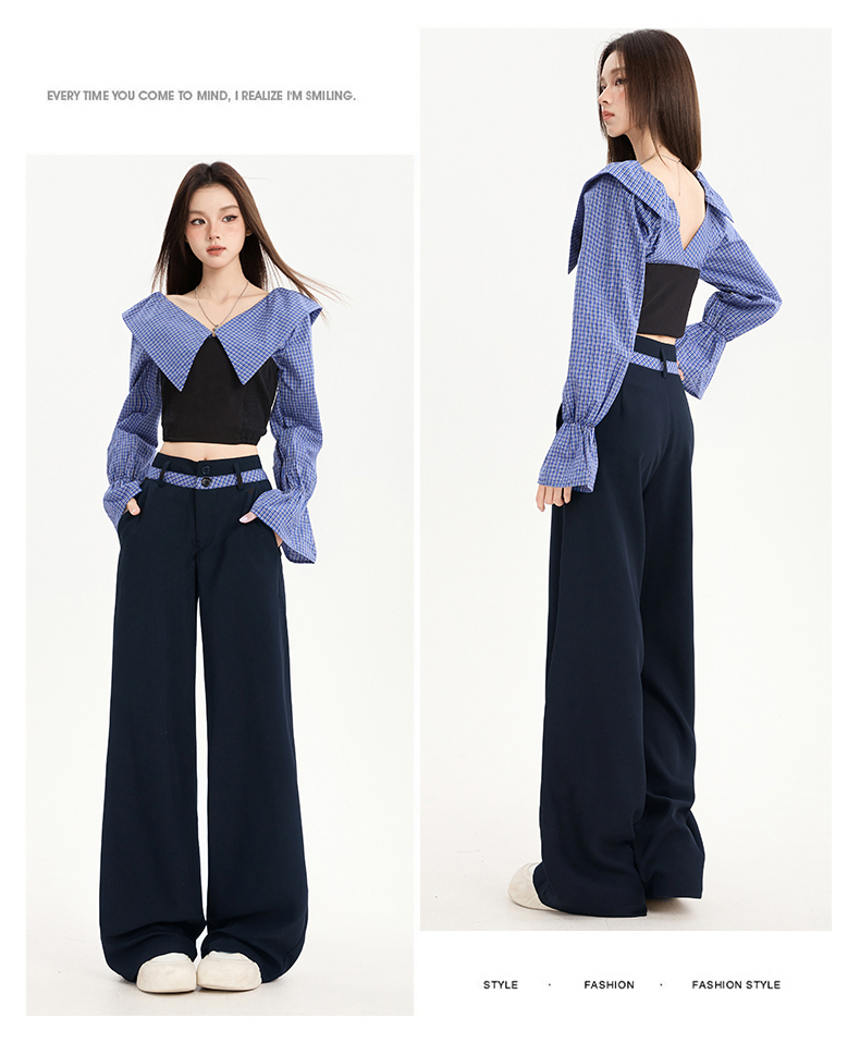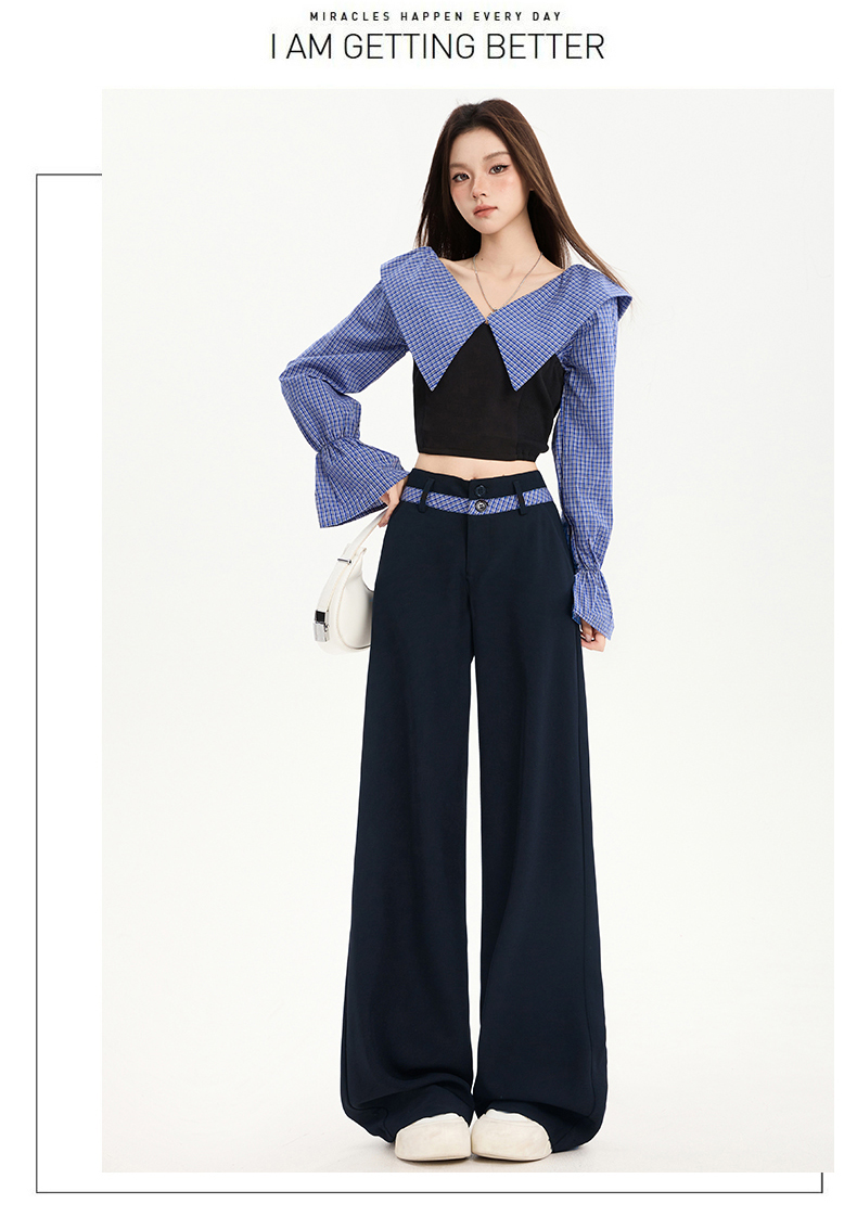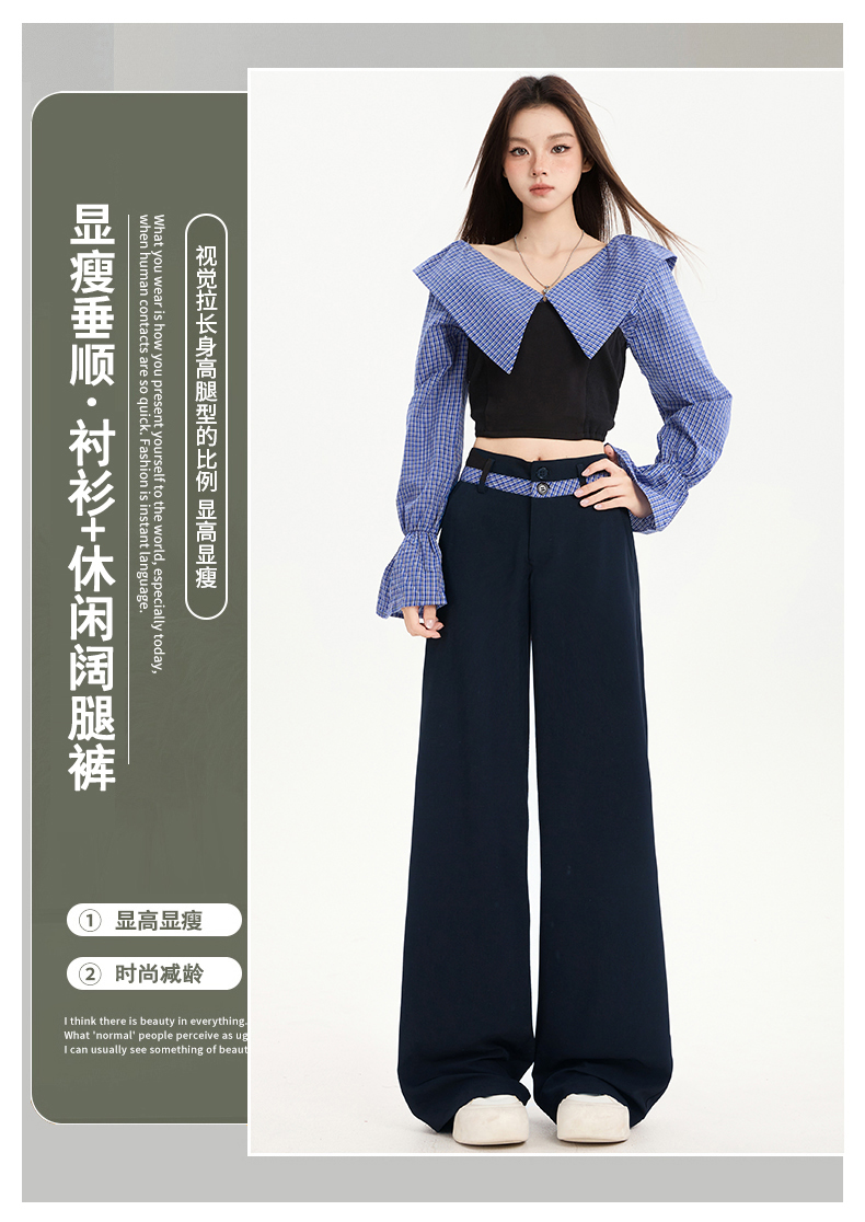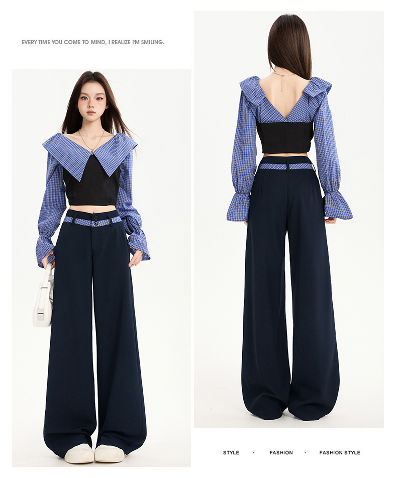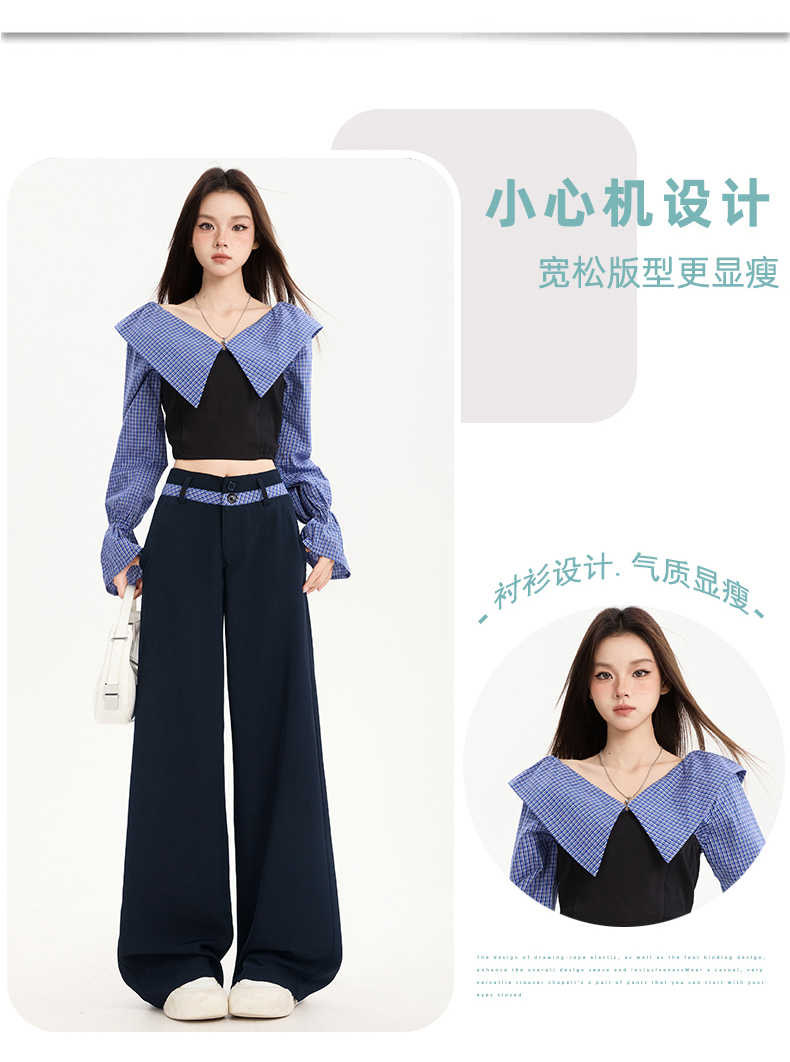 实拍秋季新款一字肩条纹衬衫显瘦修身上衣学院阔腿休闲裤子