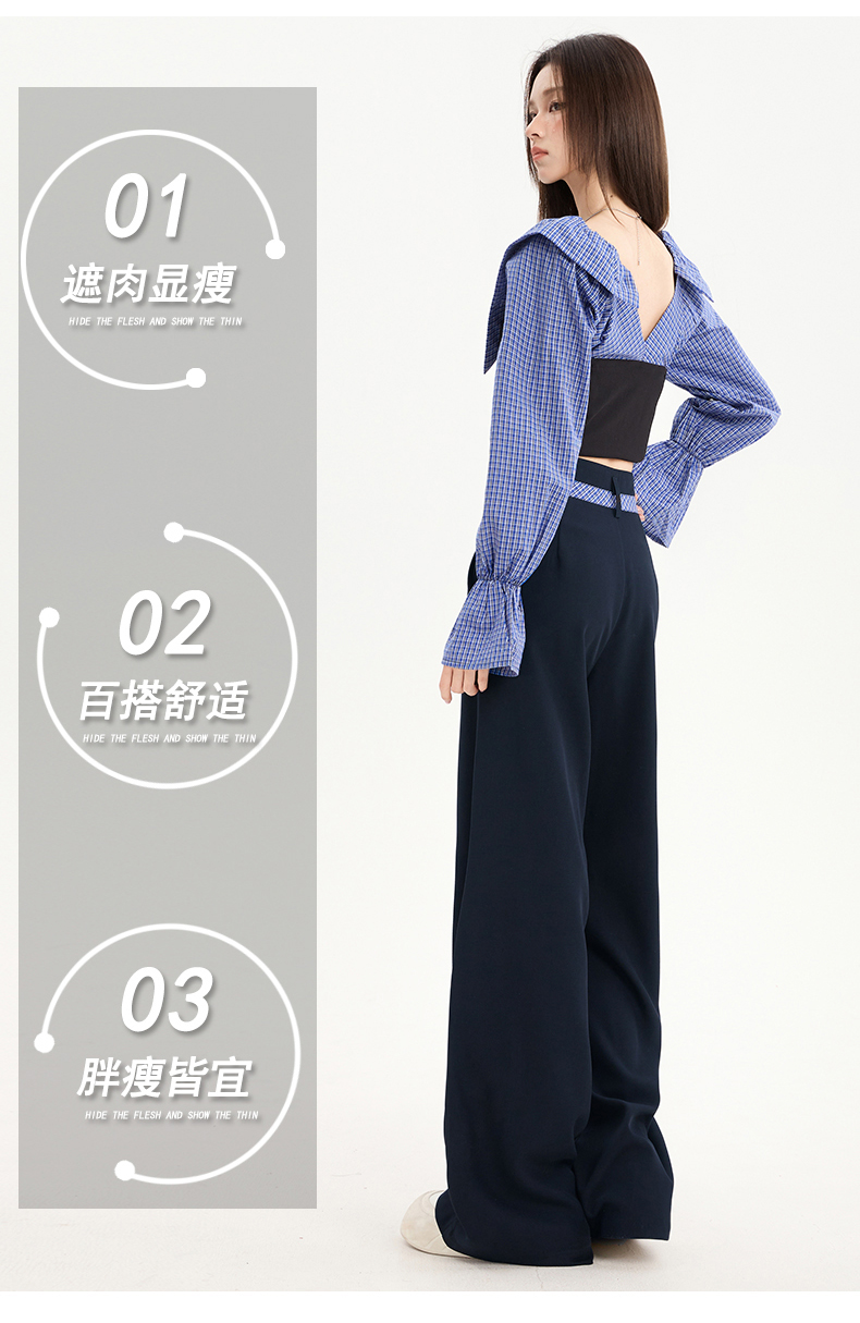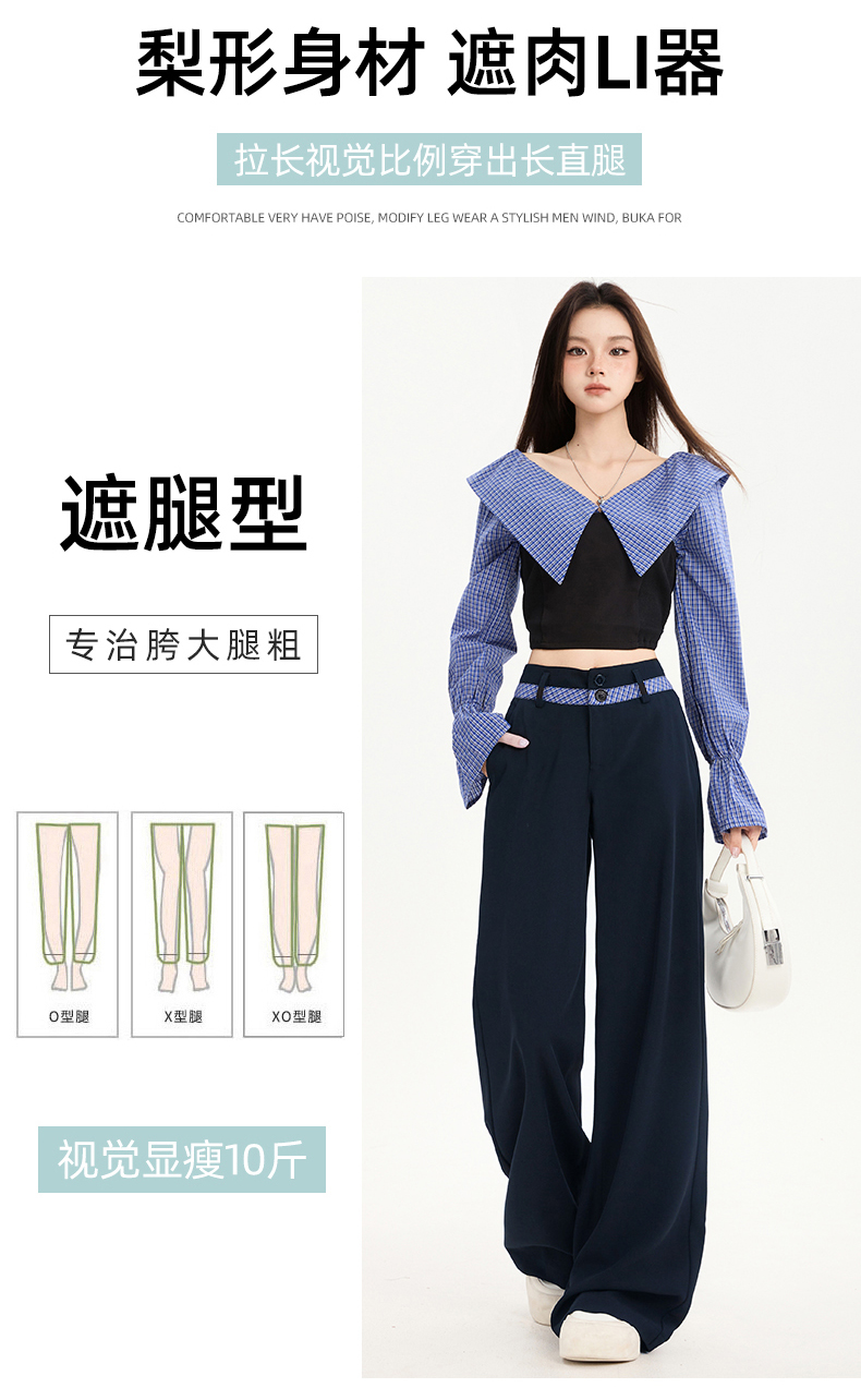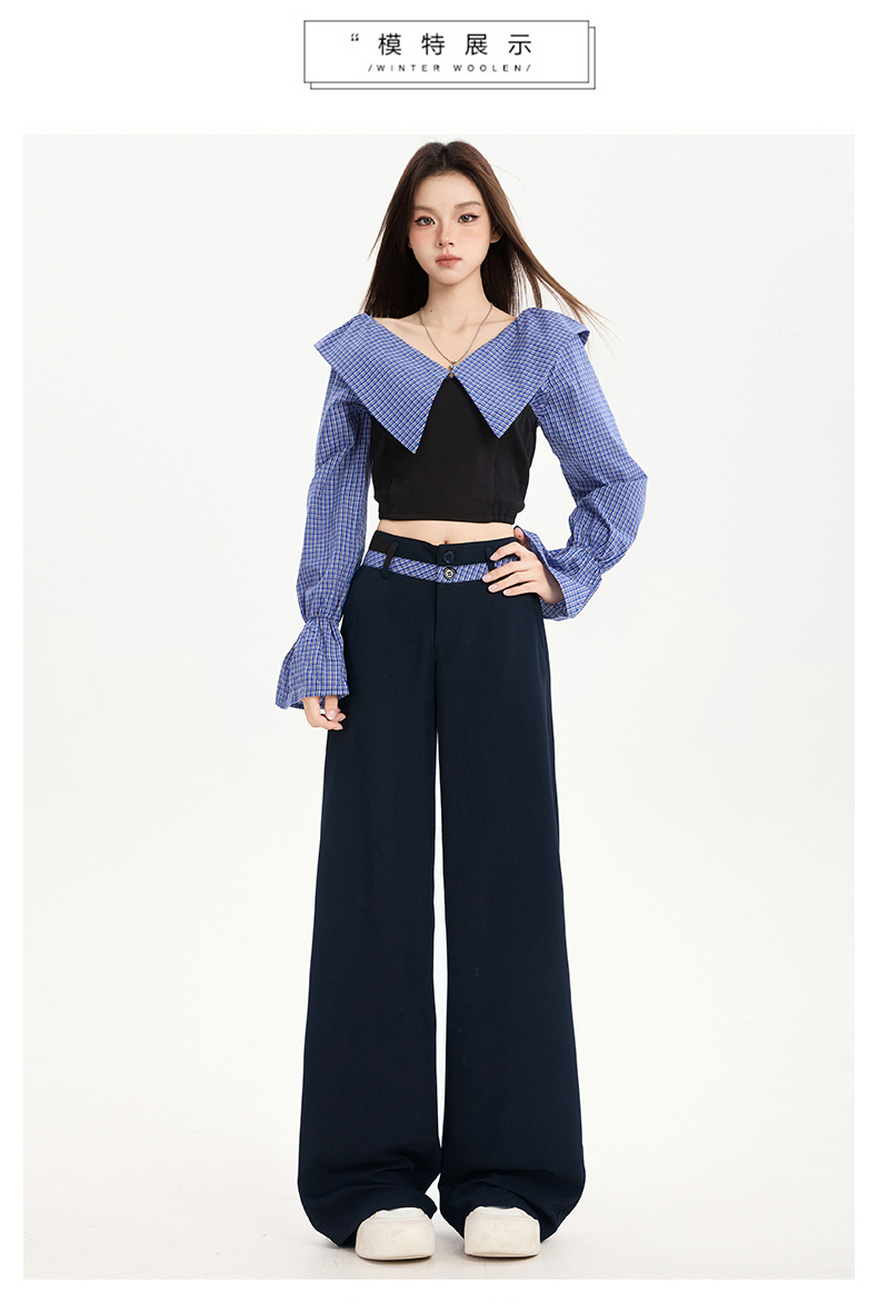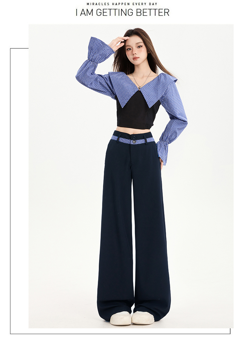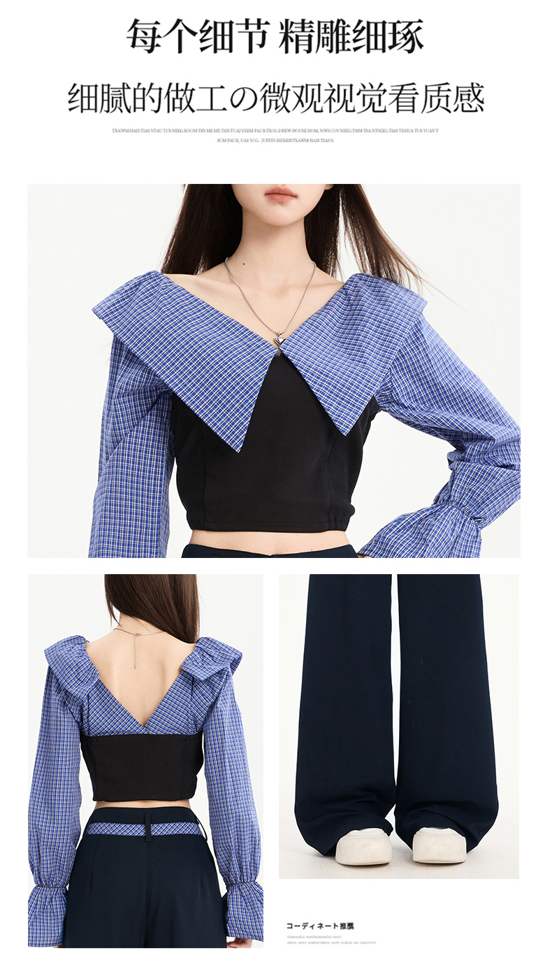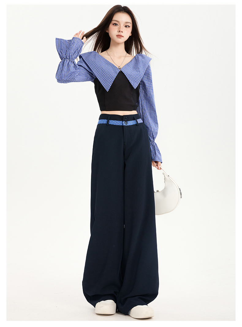 实拍秋季新款一字肩条纹衬衫显瘦修身上衣学院阔腿休闲裤子