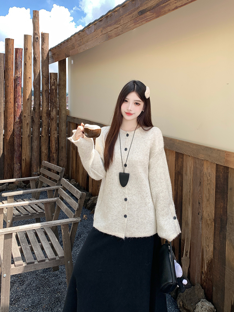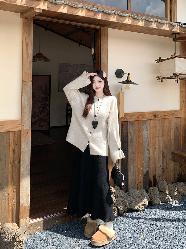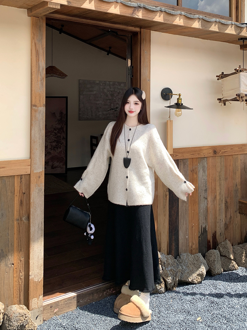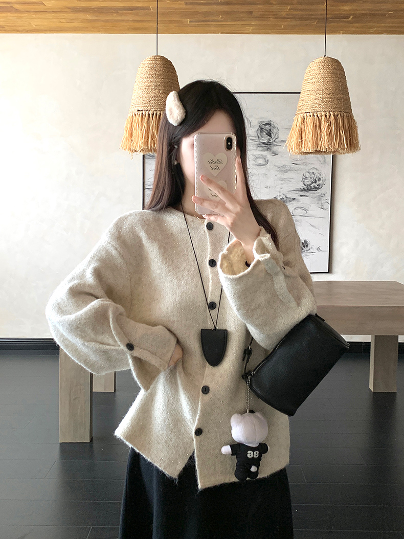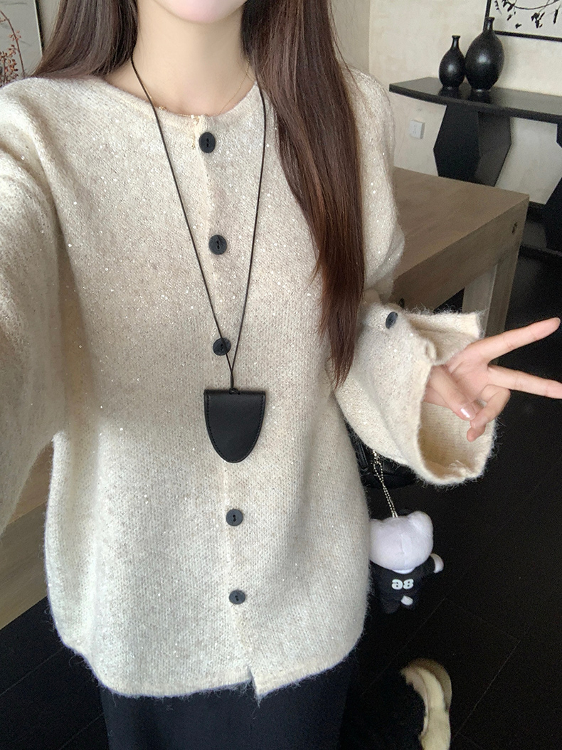 实拍大码秋冬亮闪闪喇叭袖宽松显瘦针织衫毛衣+针织半身裙套装