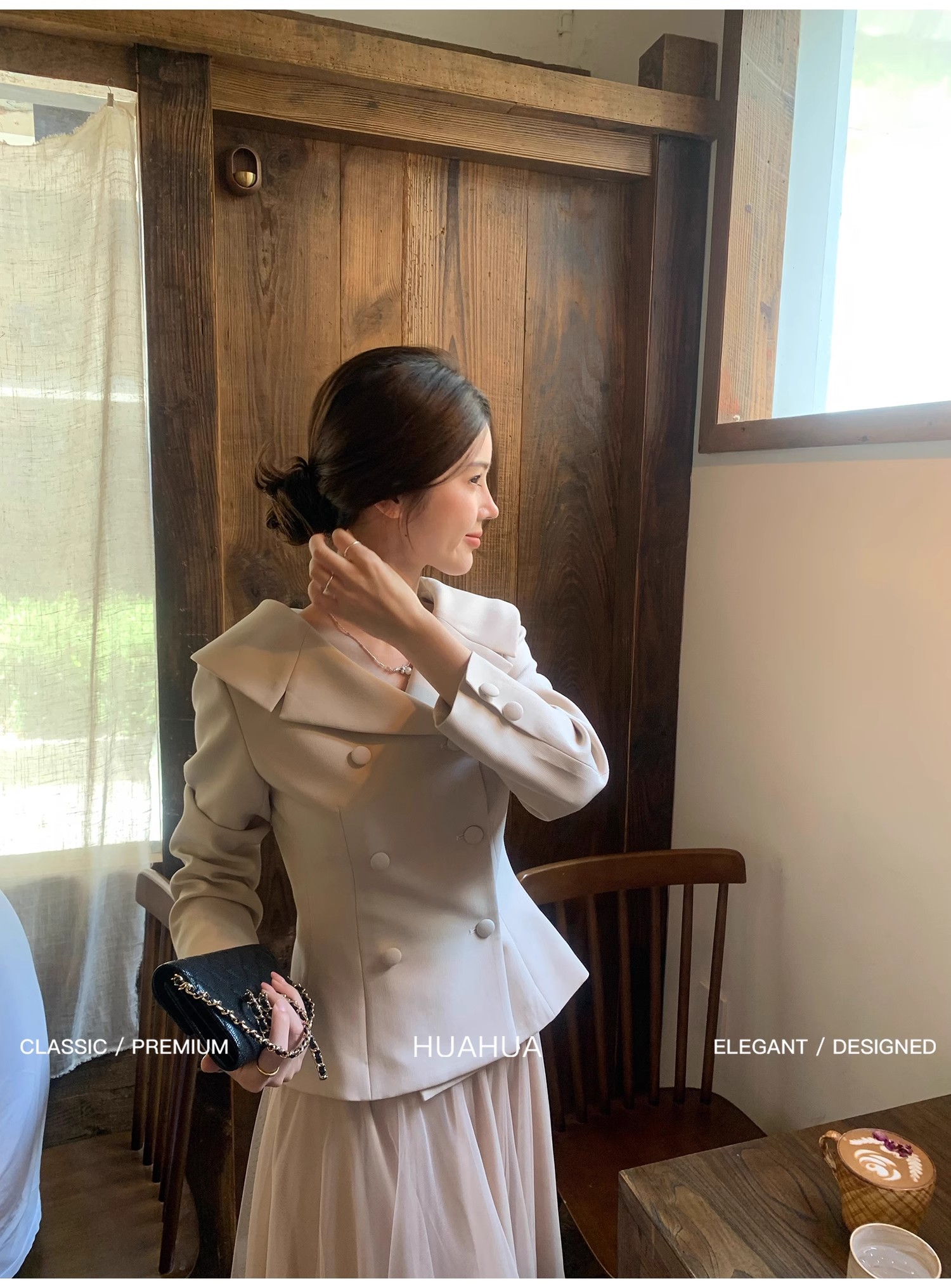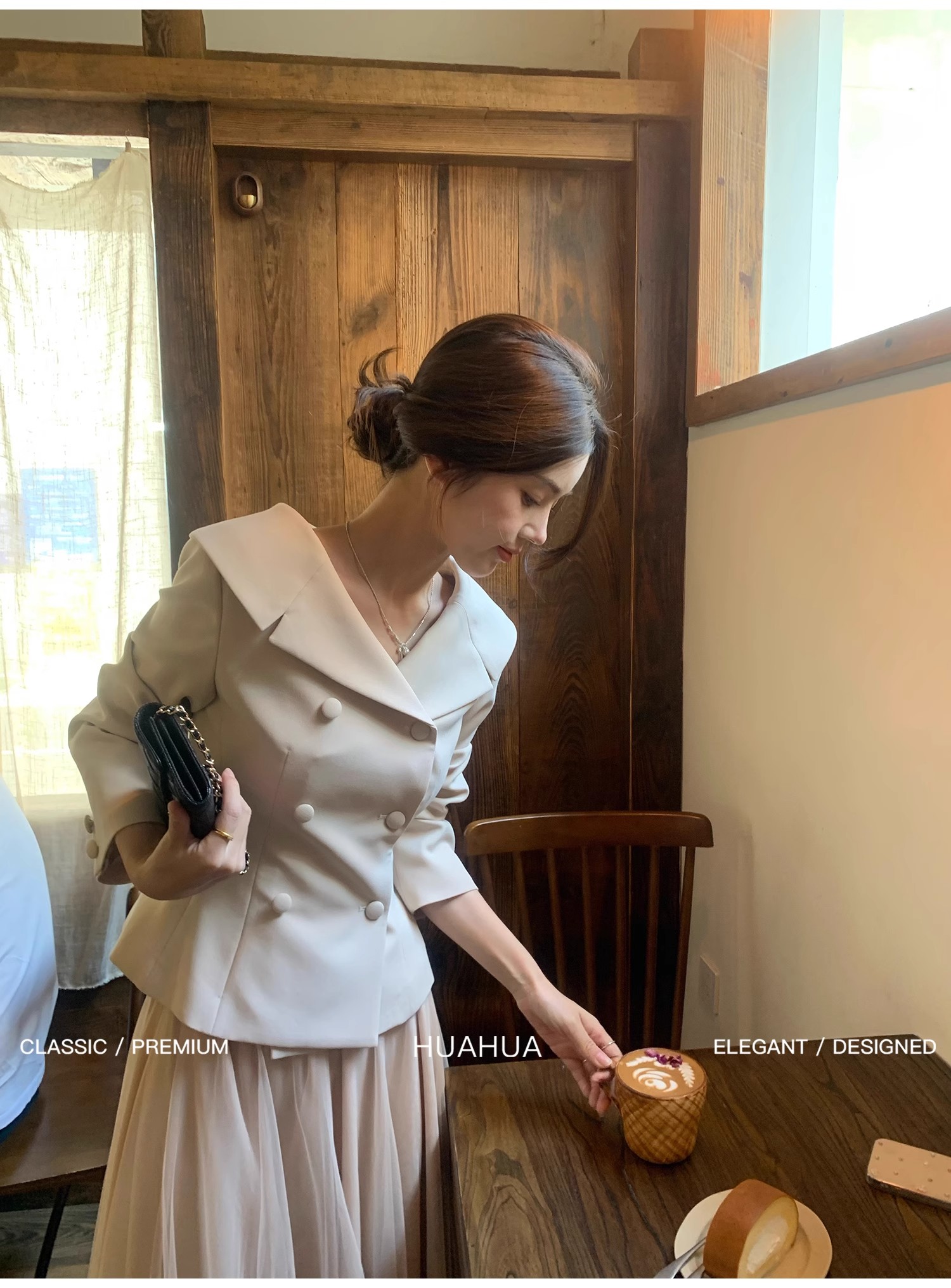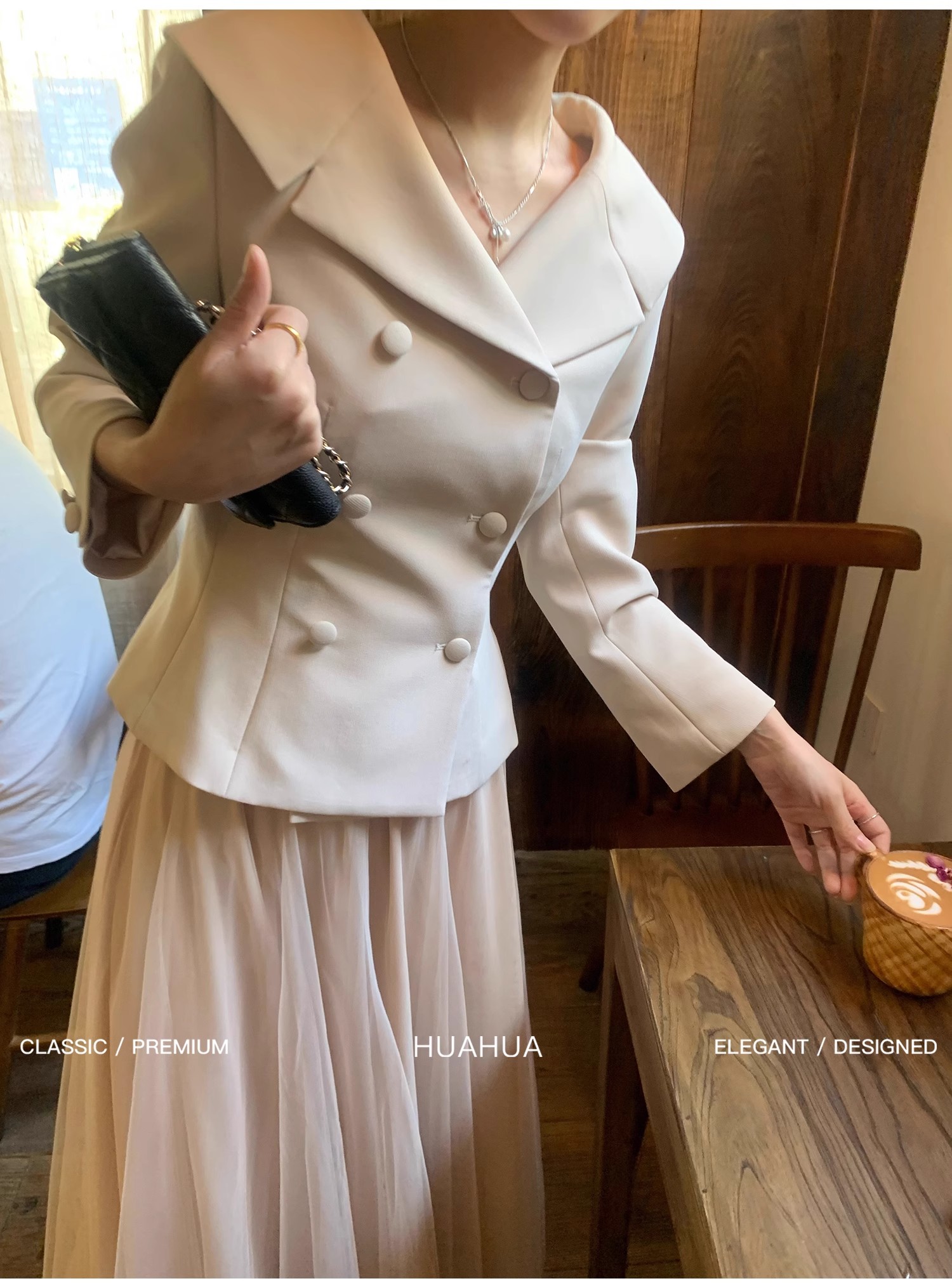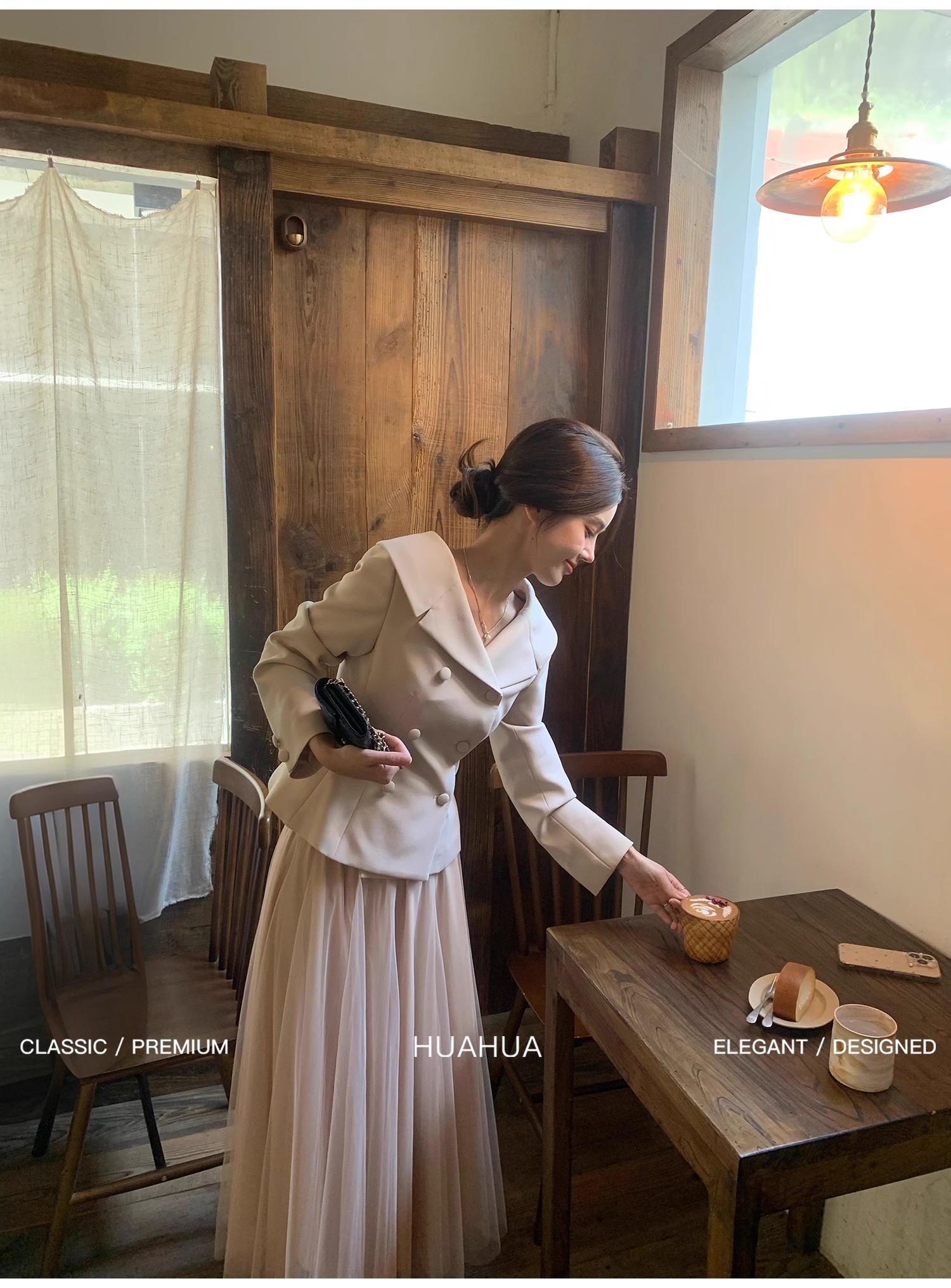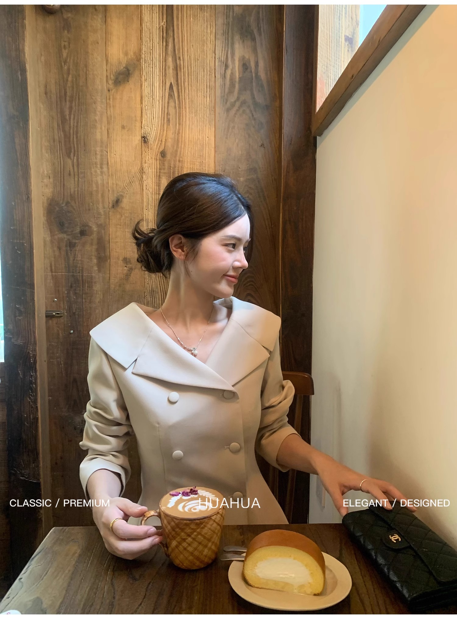 花花 高干女主~韩版气质收腰显瘦双排扣西装外套