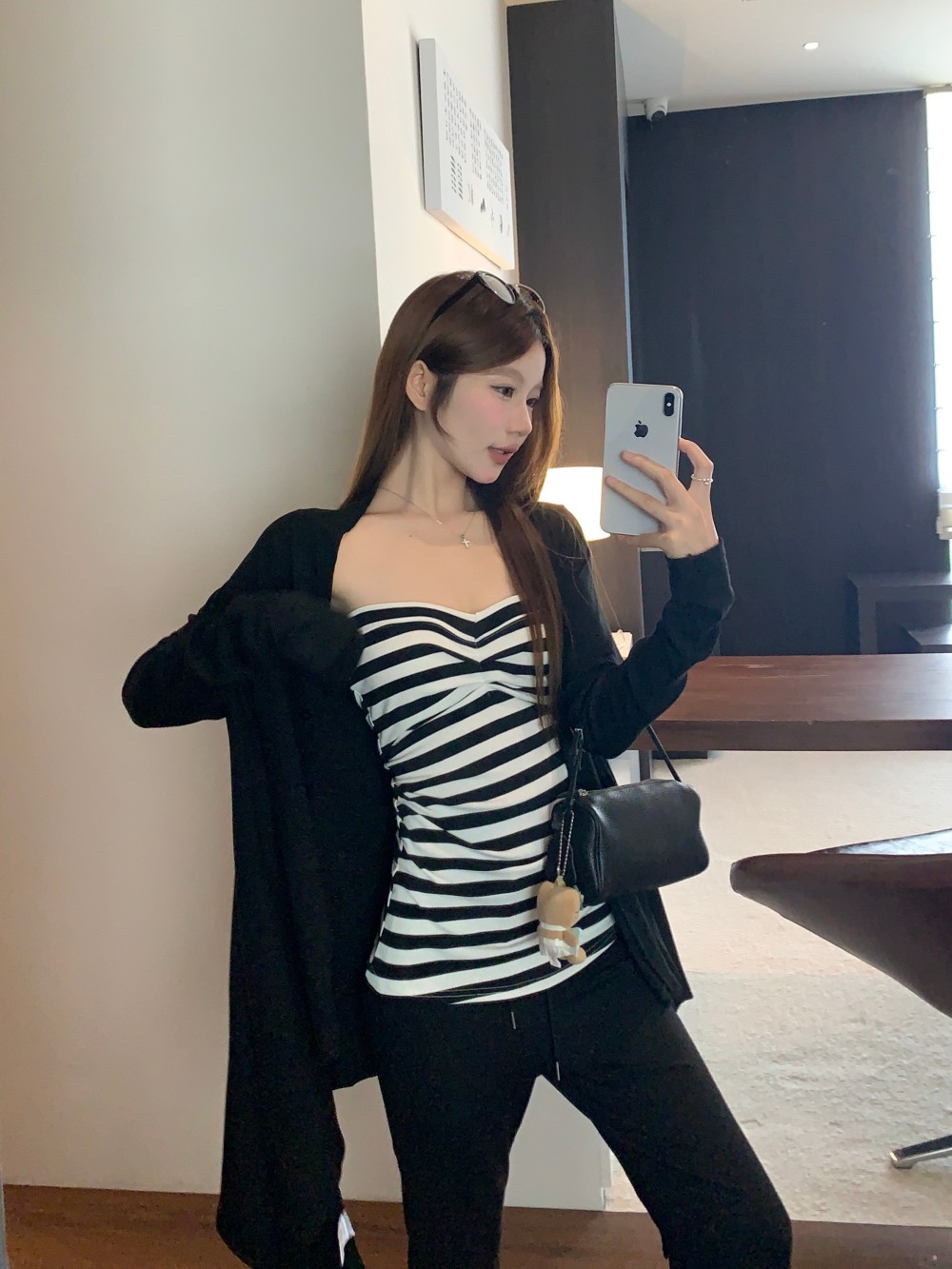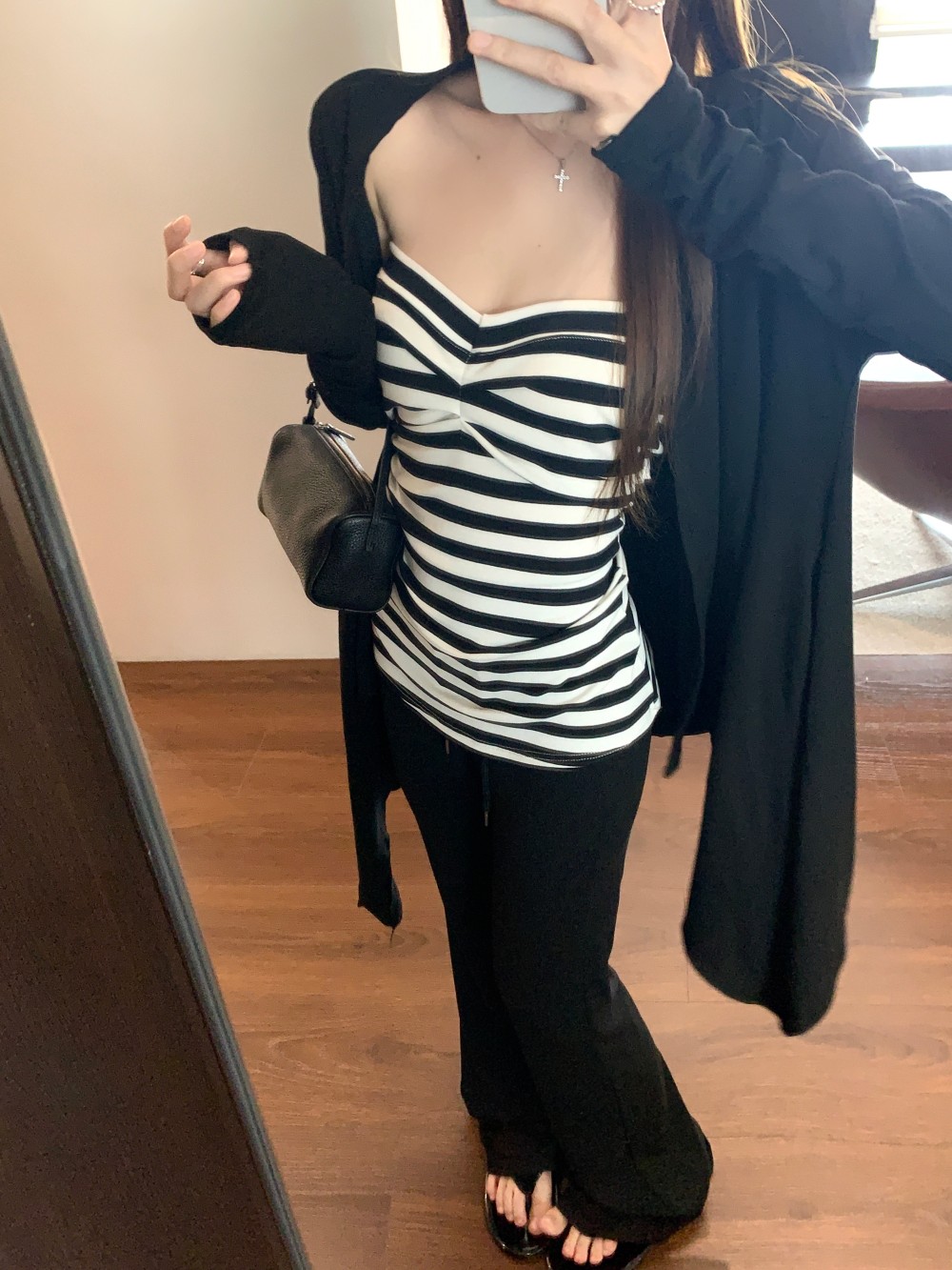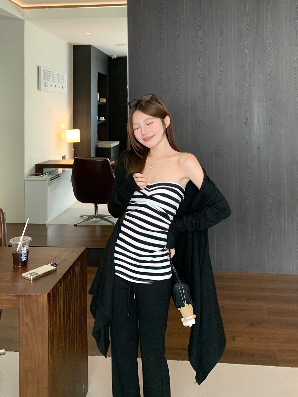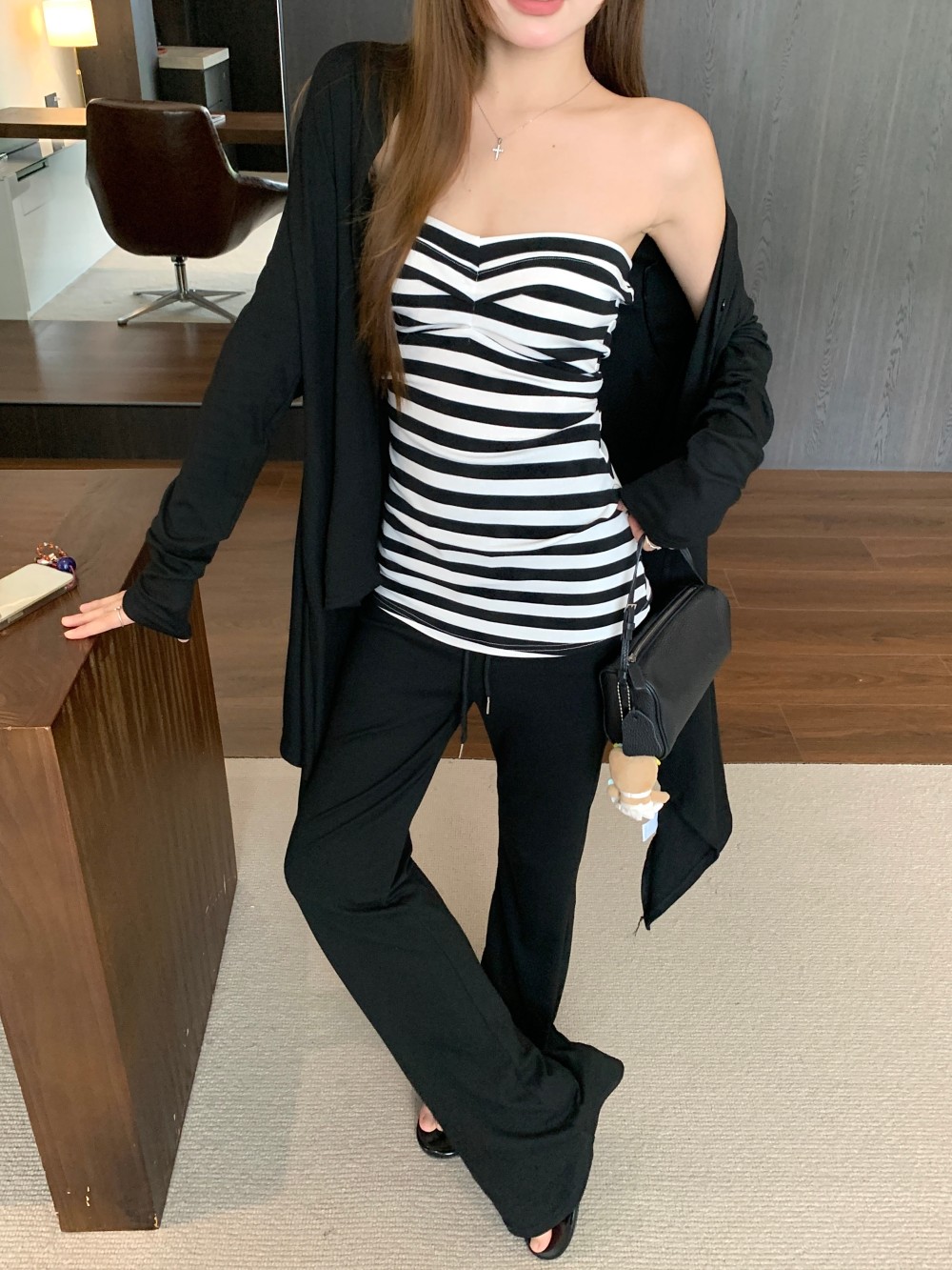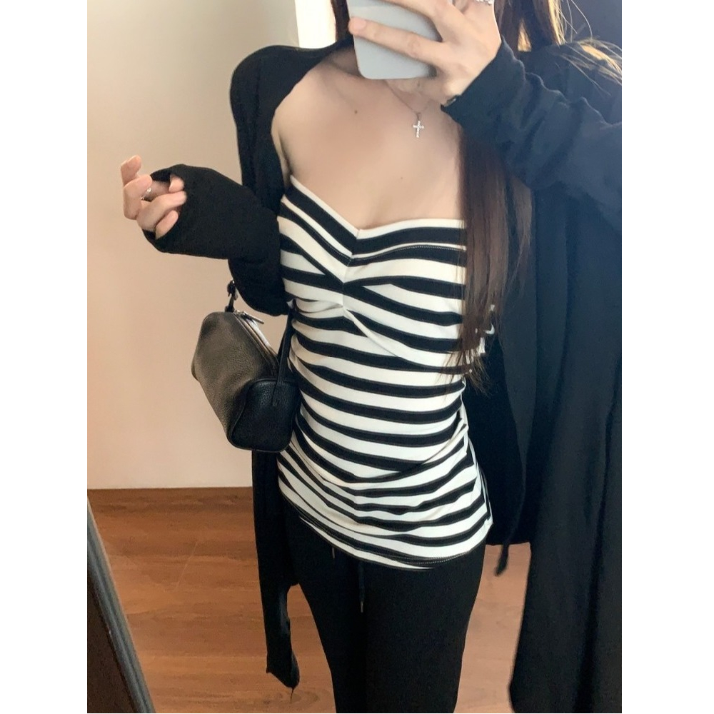 条纹抹胸 黑色开衫 条纹抹胸+黑色开衫