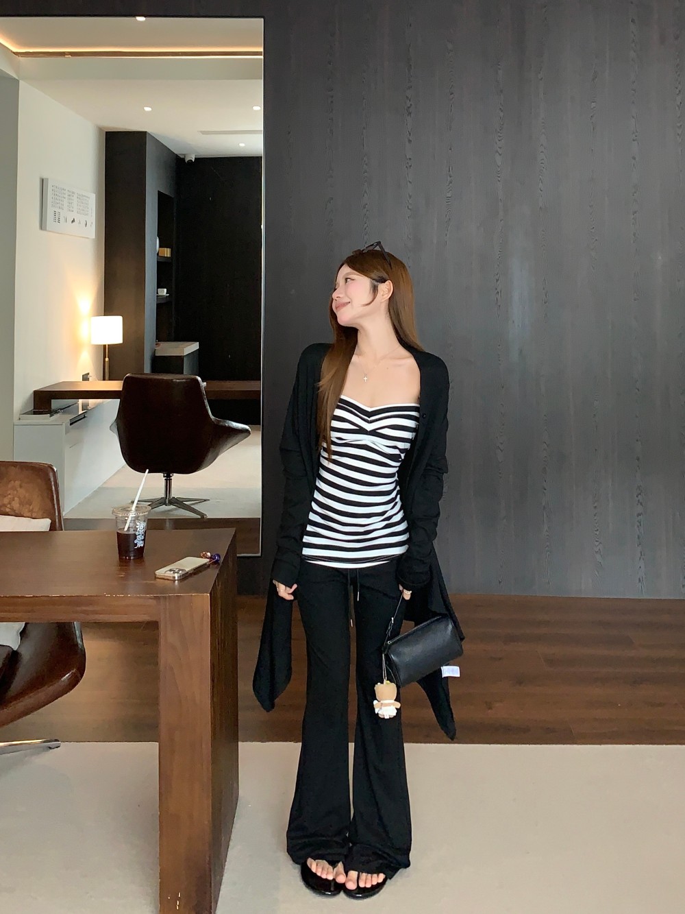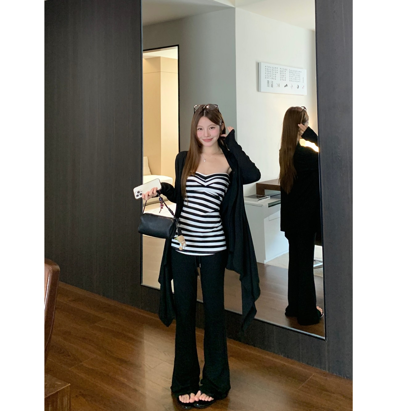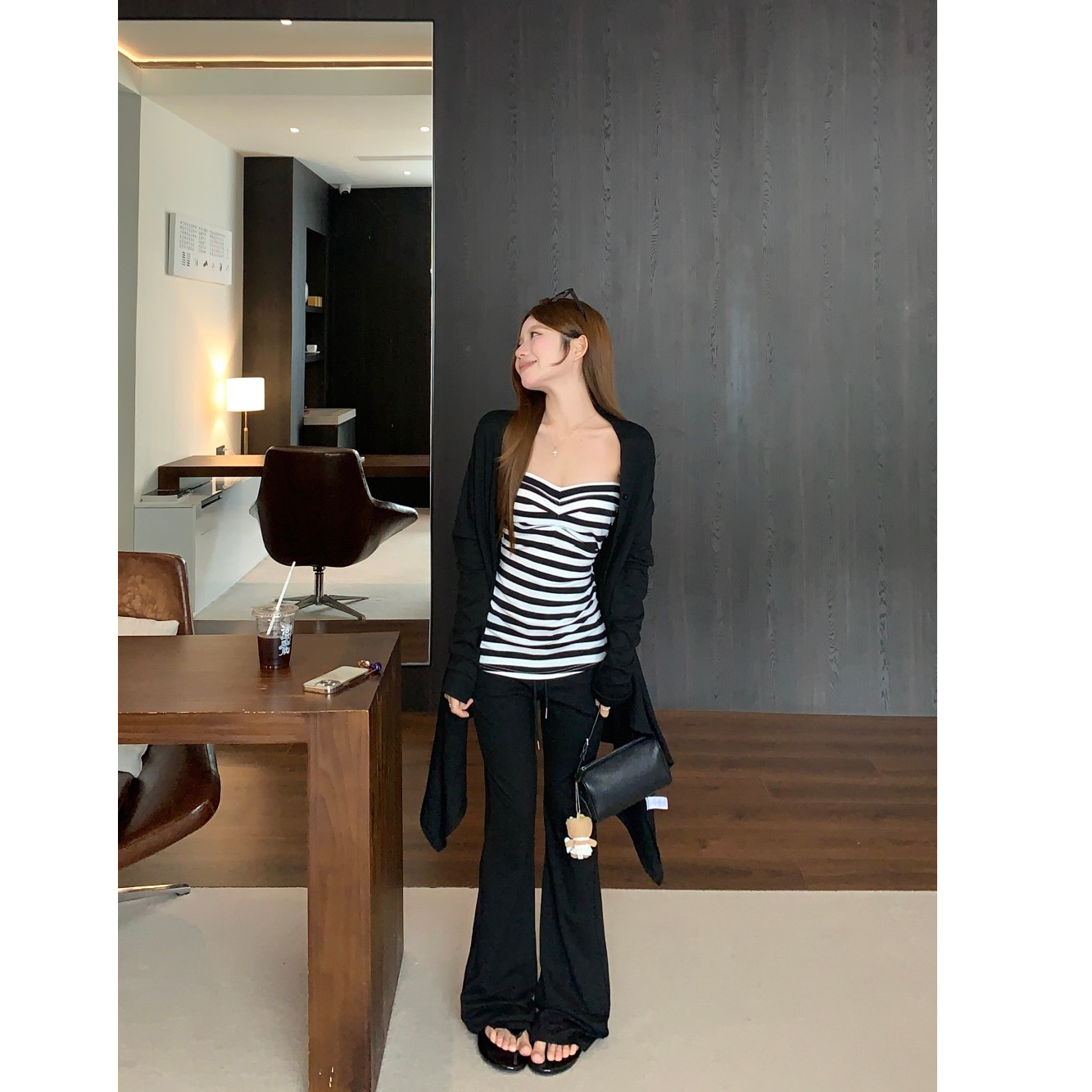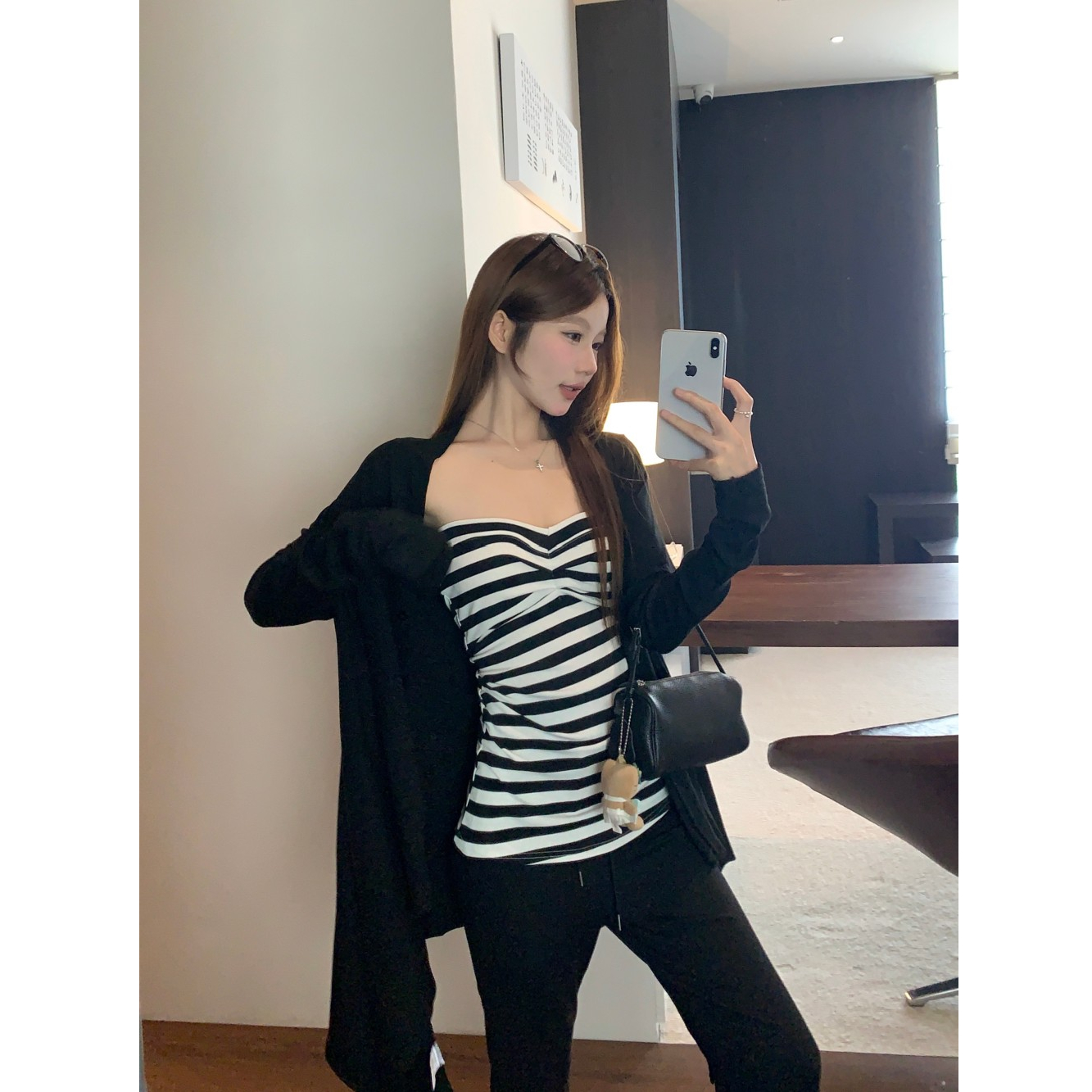 条纹抹胸 黑色开衫 条纹抹胸+黑色开衫